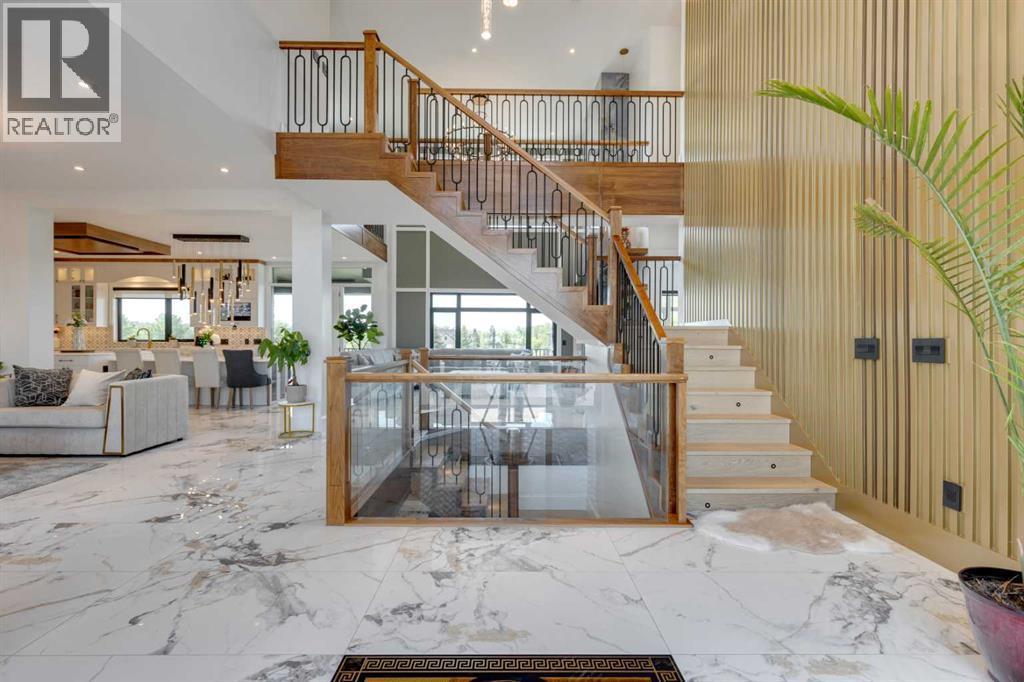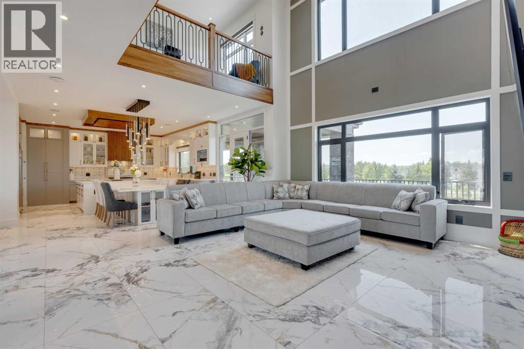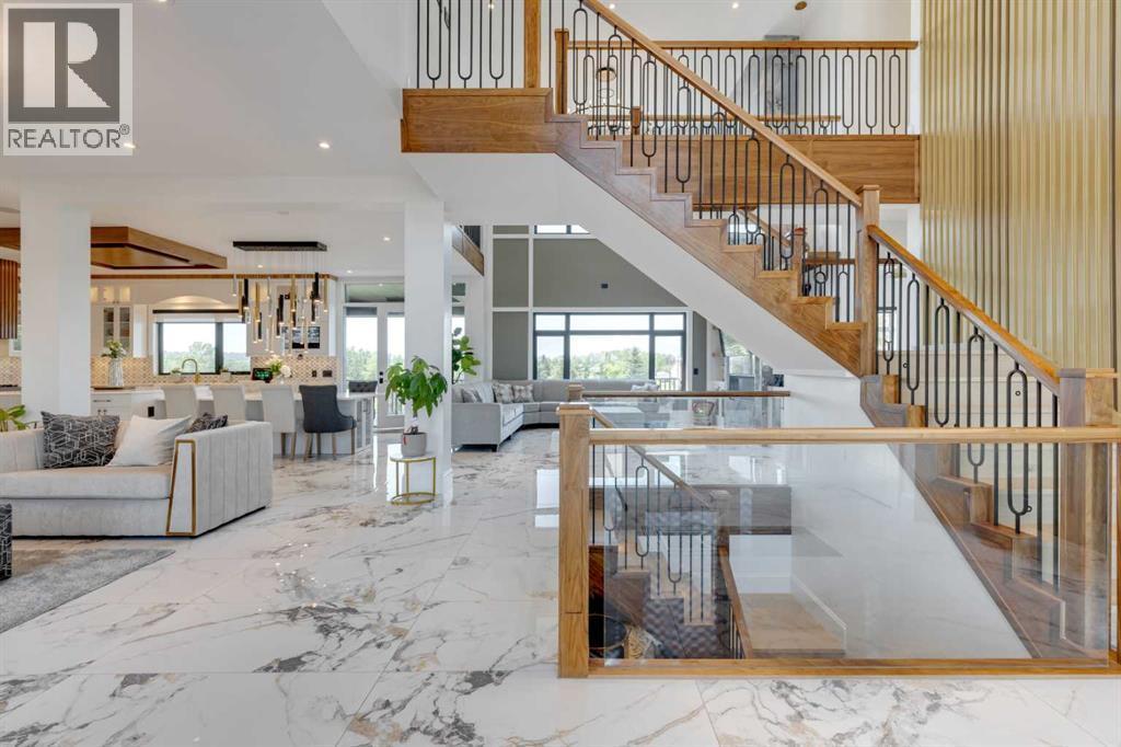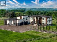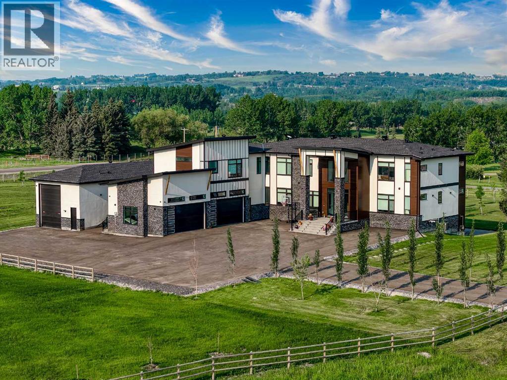 Located only seven minutes from Calgary and across the street from the Carnmoney Golf & Country Club, this exquisite acreage epitomizes luxury and exceptional design. Spanning just under 9,000 sq/ft of living space across three levels, this property boasts eight spacious bedrooms and nine bathrooms, equipped with smart toilets and top-of-the-line fixtures. It features three kitchens, perfect for entertaining and family gatherings, each with modern appliances and high-quality cabinetry. Additional amenities include a fully equipped home gym, a private home theater, and a massive wine cellar ideal for any connoisseur. The heated shop, with its own bathroom and mezzanine, offers a versatile space for various projects or storage needs. The master suite is a true highlight, covering over 700 sq/ft and featuring a private laundry. It opens onto an expansive west-facing balcony, over 800 sq/ft, offering stunning mountain views and a perfect spot to watch golfers at the Carnmoney Golf & Country Club. Every detail in this extraordinary home has been meticulously designed and executed, ensuring that nothing has been overlooked or underbuilt. (id:6769)