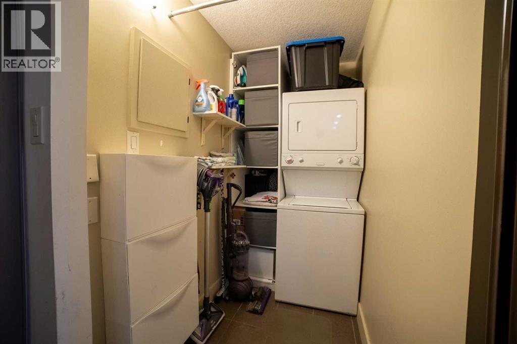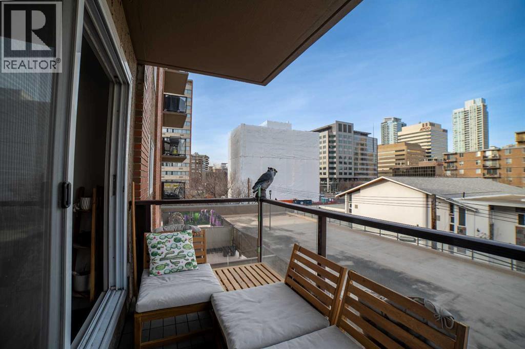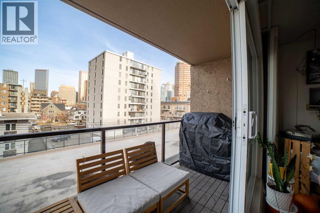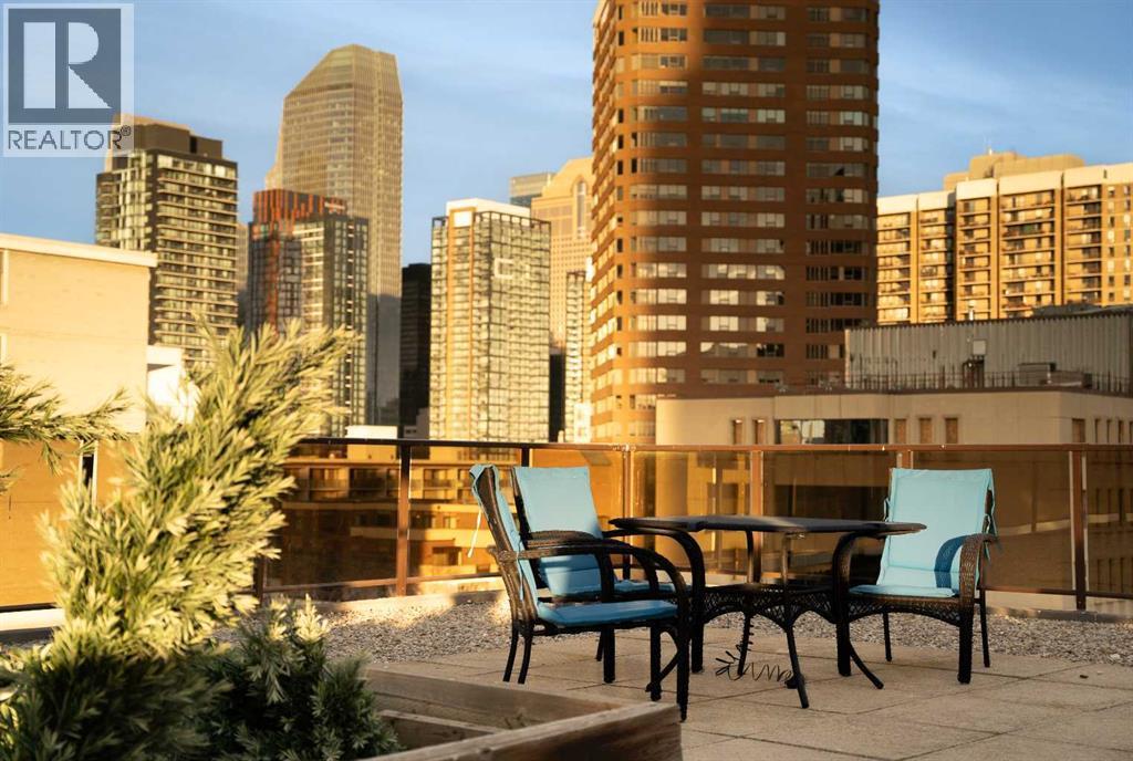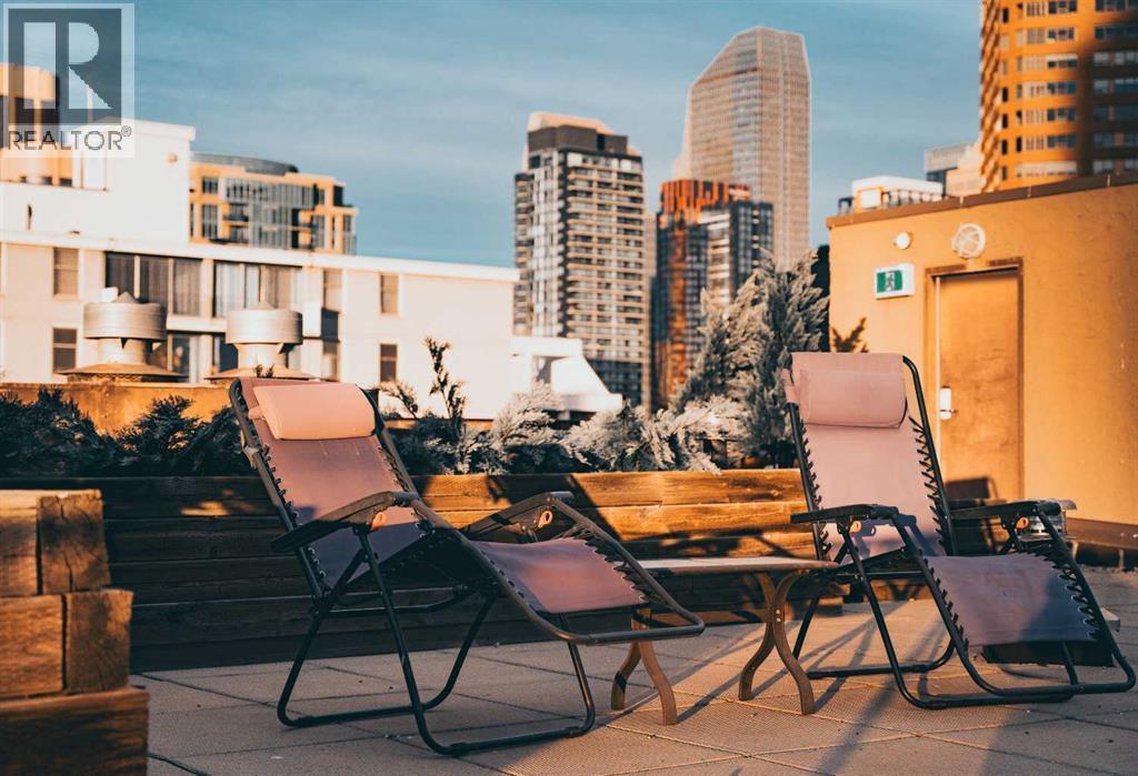 Welcome to your fabulous home in the eightwelve! A rare opportunity to live in the heart of the beltline and just steps away from the vibrant downtown. Exceptional 1 bd. + den unit with a full 4-piece bath and features an open style concept. Enjoy choice views across the city skyline from your north balcony off your spacious living room. The balcony has tile covering for a warmer, more comfortable experience. Fire up the barbecue and relax here for an early morning cup of java or an evening tall cool one, and take in the views. Step inside and feel right at home with the warm and cozy feel of the design. The kitchen features tasteful tile flooring, custom rich dark cabinetry, granite countertops, stylish backsplash, stainless steel appliances, and a raised breakfast bar. Ideal center point in your new home, as the kitchen is perfect to entertain in from as it overlooks the dining area and large living area. The living room is spacious, bright, and easy to work with to accommodate your tastes in furniture. The den located off your living room has a window and comes with a built-in Murphy bed. Yes, you can have guests over whenever you desire; no heavy sofa bed required! No need to clear off your desk either. The sleek design allows the computer to fold in when the bed choice is made! Great addition to this unit! Lots of cupboards and storage here. The primary bedroom is oversized and quite stylish, with plenty of room to relax. There is a large walk-in closet equipped with a large built-in chest of drawers. Did I mention the flooring? Hardwood throughout the primary bedroom, living room, dining room, and den areas. The rest is a more contemporary neutral sleek tile. The 4-piece bath has the same stylish tile on the floor and in the shower. The tub is an oversized soaker style tub - perfect to soak in after a long day! Walk into a dream laundry area by the entry and enjoy the extra space for storage next to the washer/dryer. Some added features the unit has include la rger windows, under-cabinet lighting in the kitchen, push-to-open cupboards, and custom Hunter Douglas blinds. The blinds in the living room are remote-controlled! The home comes with a titled parking stall and a titled storage locker. The parking space is nestled nicely between two parking posts for added vehicle security. The building offers a full gym equipped with a jukebox for a little added entertainment, a washroom located beside the gym, and a 3rd-floor common patio area. Head up to the rooftop patio and experience something so unique you will be completely amazed. At night, you can stargaze or watch the fireworks during the Stampede here. There are lounge chairs to chill in and captivating views from the whole rooftop area! Truly an amazing bonus to living in this building. Units in the eightwelve do not come up very often, so don't let this opportunity to own this fabulous unit slip by. Steps from unique boutiques, grocery stores, parks, you name it. Concrete construction & pet friendly building (id:6769)