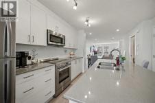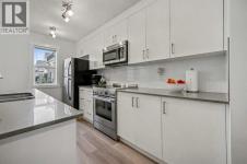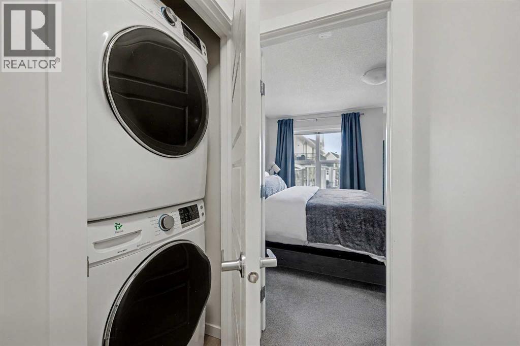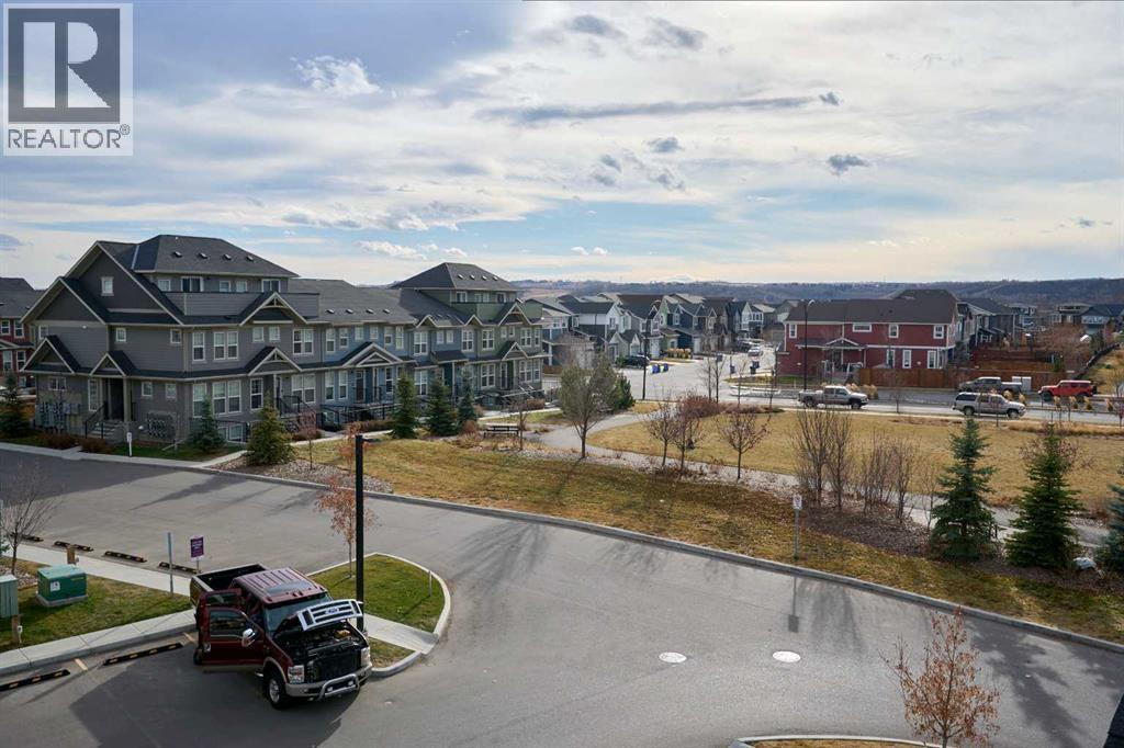 Welcome home! Discover this beautiful three-storey, 1,544 sq ft executive townhome located in the lower part of Cranston, within the sought-after Riverstone community. The site is perfectly positioned backing onto a large green space and very close to Fish Creek Park and the Bow River, this townhome offers a tranquil and scenic setting. The spacious main floor welcomes you with a large living room, an inviting dining area, and a massive kitchen counter island complete with a breakfast bar, while a convenient two-piece powder room is located just off the dining and living rooms. Enjoy the sunny west-exposed backyard, ideal for your puppy, family BBQs, and soaking up some extra sunshine. Upstairs, the second level offers two generous bedrooms—the primary easily accommodates a king-size suite and features a three-piece ensuite bath, and the second bedroom boasts east-facing windows, bathing the room in morning sunlight to help young ones rise early. The third level presents a versatile bonus space: use it as a music room, workout area, home office, guest quarters, or a quiet family room retreat, and step out onto the east-facing balcony for peaceful early-morning views. Throughout, neutral decor is complemented by quartz countertops, a breakfast bar, stainless steel appliances, central air conditioning for warmer days, and vinyl and carpet flooring; the entire home shows like new, with great windows offering abundant daylight. Your designated parking stall is just steps away from the front door. The Century Hall recreation facility nearby offers fantastic amenities including winter hockey and skating, a summer splash park, tennis courts, a summer skate park, meeting rooms, rental options, and a gymnasium. Additional neighborhood conveniences include access to schools, shopping, major traffic routes, and bike pathways, all with very affordable townhome fees—making this property a fantastic opportunity to join one of the best communities that southeast Calgary has to off er. (id:6769)