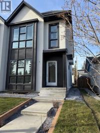 Timeless design, modern comfort, and everyday function come together on a quiet tree-lined street in this brand-new SEMI-DETACHED home in GLENBROOK. With expansive windows, warm natural materials, and elevated finishes throughout, it’s crafted for family living in one of Calgary’s most established neighbourhoods.Step in from the covered entry to a bright foyer with sightlines across the open main floor, where light oak hardwood carries seamlessly through the principal rooms. The front dining room is anchored by a custom feature wall, setting the tone for the thoughtful millwork found throughout. At the heart of the home, the chef-inspired kitchen blends beauty with purpose—two full pantries, crisp white uppers over matching oak lowers, a striking waterfall quartz island, and professional KitchenAid appliances including a flat gas cooktop, built-in wall oven, and French-door fridge. Clean lines, elegant lighting, and generous prep space make this a true culinary hub.The floorplan flows naturally into the inviting living room, where custom built-ins frame a cozy gas fireplace, creating the perfect space to unwind or gather with friends. Large windows and an 8’ sliding patio door pull in west light and open directly to the backyard for easy indoor/outdoor living. A well-designed mudroom with built-ins keeps everyday essentials organized, while an elevated powder room provides privacy and convenience through a hidden door.Upstairs, retreat to the serene primary suite, where vaulted ceilings lift the space and morning sun pours through oversized windows. The ensuite reads like a private spa, offering a massive walk-in shower with body jets, double sinks, a deep free-standing soaker tub, and beautifully curated tile throughout. A custom walk-in closet completes the sanctuary. Two additional bedrooms sit down the hall, each with their own custom cabinetry, and a thoughtfully placed built-in desk creates the perfect homework zone or dedicated home office. A spacious laun dry room with quartz countertop, sink, and extra storage ensures the second floor is as practical as it is comfortable.The lower level flexes effortlessly with family life—an expansive family room with custom built-in TV wall, a generous flex/rec area with a full wet bar, plus an additional bedroom and full bath, ideal for guests, teens, or extended family.Step outside to a sun-soaked west-facing backyard, complete with a large rear deck and BBQ gas line, ready for late summer evenings and weekend gatherings. A double garage and a striking exterior finished in stucco and Hardie-board siding complete this exceptional property.Set in the heart of Glenbrook, this home places you close to schools, parks, playgrounds, shopping, transit, and major routes—offering the perfect blend of community charm and everyday convenience.A refined, functional, and beautifully built home—crafted for real life, designed to be lived in, and ready to enjoy. More photos to follow, as work progresses in the next few weeks. (id:6769)