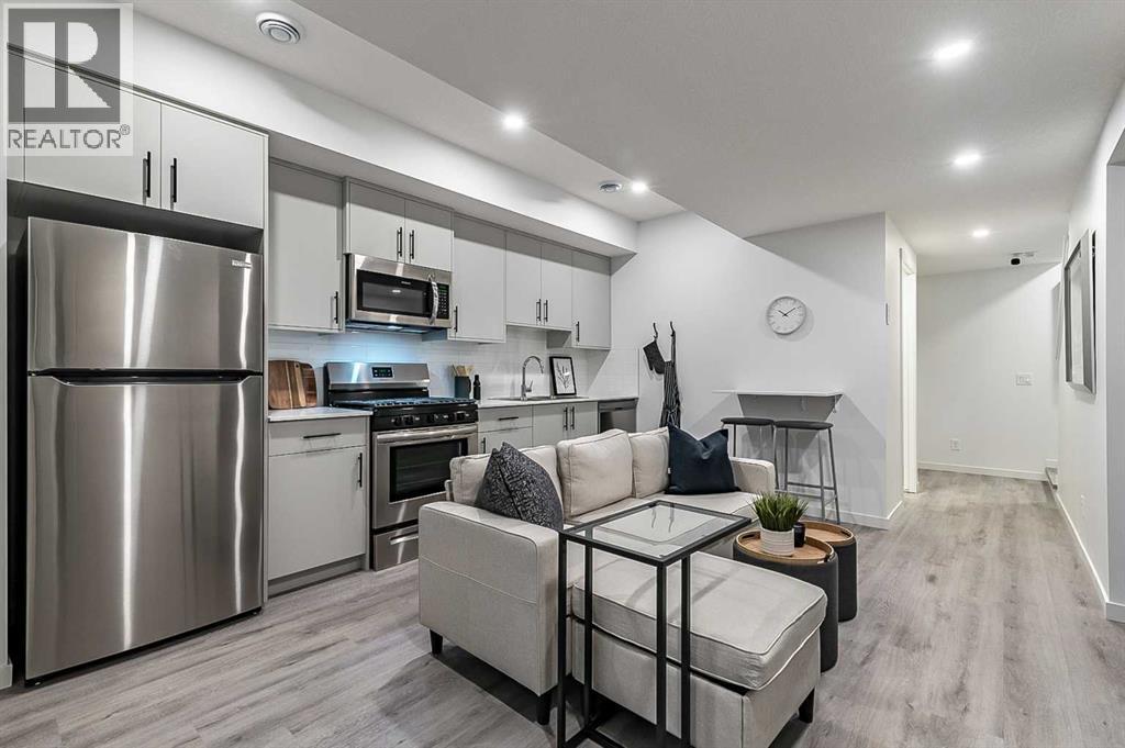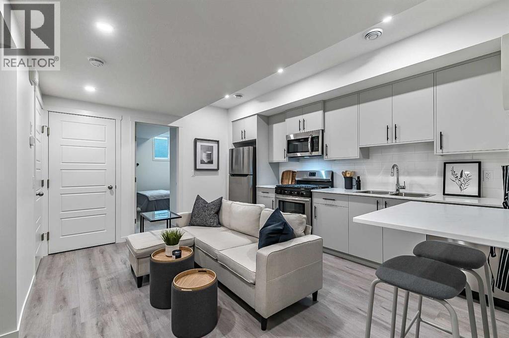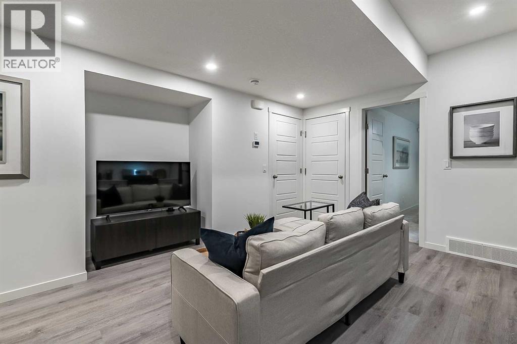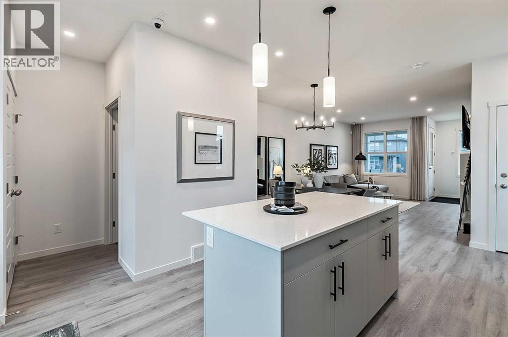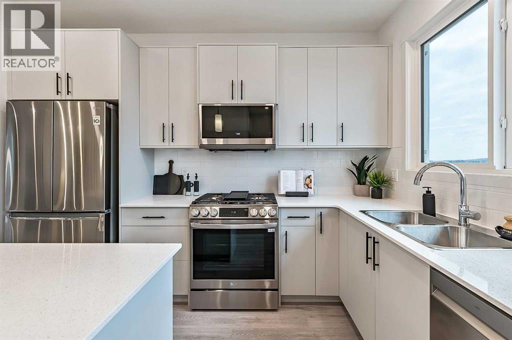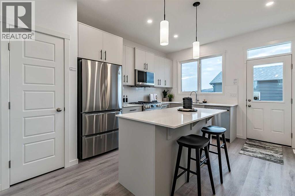 Welcome to the Laned 150 by Anthem, a thoughtfully designed quick possession home offering 1,370 sq. ft. of living space across the main and upper levels — plus a fully finished basement legal suite for added value and flexibility.This home features a stylish Prairie elevation and modern interior finishes throughout. The main floor offers 9’ ceilings, luxury vinyl plank flooring, and Decora-style switches, creating a bright and cohesive look. The open-concept layout includes a spacious great room with an electric fireplace, a dedicated dining area, and a rear kitchen complete with quartz countertops, a stainless steel sink, and a premium stainless steel appliance package with a gas range both in the main kitchen and the basement suite.Upstairs, you’ll find three comfortable bedrooms including a well-appointed primary suite with ensuite, a 4-piece main bath, and convenient upper-level laundry. Plush carpeting with 8lb underlay and iron spindle railing add comfort and contemporary detail.The legal basement suite offers an additional 445 sq. ft. of self-contained living space with a private side entrance, one bedroom, one bathroom, a kitchen with stainless steel appliances including a gas range, in-suite laundry, and separate mechanicals with dual furnaces and hot water tanks.Built with efficiency in mind, this home includes triple-pane low-E argon windows and an integrated HRV system for improved comfort and air quality.Perfect for multi-generational living or generating rental income, this Anthem home in Pine Creek combines functionality, style, and opportunity — all in one smart package. (id:6769)