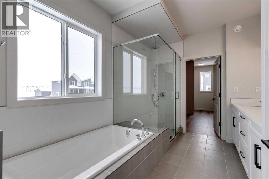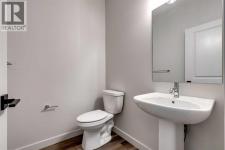 CUSTOM Bungalow living in a family friendly and exciting Rivercrest of Cochrane Community! This New build has the possibility to welcome you home near the end of April 2026. Bungalow living gives you the freedom that comes with main-floor living along with the extra space of a fully developed lower level. This near end of construction NEW Janssen Home 3 Bedroom with 2.5 bath offers just over 2,100 sq.ft. of total developed living space on two levels; designed with numerous upgrades for the discerning buyer. Open concept main-floor features 9’ ceilings and a beautiful vaulted ceiling in living room, Luxury Vinyl plank, tile flooring and carpet covered stairs going down. From front entrance walk up three steps right into the spacious dining area that leads into a Chef’s kitchen with full-height custom cabinets finished with crown mouldings, soft close doors/drawers & full extension glides, quartz counters with undermount sink, tiled backsplash, oversized flush island with overhang, stainless steel appliances - easy access microwave in island, gas range, chimney hoodfan w/full tile to ceiling backsplash, refrigerator and dishwasher. After dinner walk over to your spacious vaulted ceiling living room with gas fireplace then walk through a beautiful 8' patio door to huge 12’ x 14’ back deck overlooking yard. Photos do not show vaulted ceiling but is a must see! Generous main-floor primary bedroom complete with LARGE walk-in closet, 5-pce ensuite, quartz counter with dual undermount sinks, taller vanity with soft close doors and full extension drawers, 5’x3’ tiled walk-in curbless shower with bench, soaker tub and private toilet room. Laundry room is conveniently located in primary walk in closet. Lower level offers wide-open rec-room, two generous sized bedroom's, 4-pce bath, linen closet and plenty of space for storage. Family-owned and operated Janssen Homes has been building award-winning homes for over 60-years and is excited to complete another build with you!!! Upg raded features include: 9' main floor ceilings and vaulted ceiling in living room with knock down Spantex, railings & metal spindles, LoE Argon slider windows, R-50 attic insulation, high-efficient furnace w/programmable thermostat & drip humidifier, HRV, 168 sq.ft. deck at back w/aluminum railing & minimal steps to grade. Warranty includes: 1 yr comprehensive, 2 yrs heating, electric, plumbing, 5 yrs building envelope water protection, 10 yrs structural. ****Photos of interior and exterior are of previous Janssen Homes Builds**** (id:6769)