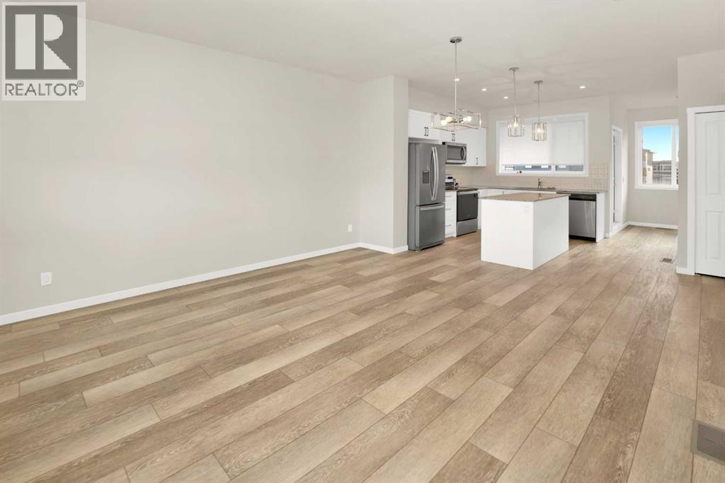 Modern three-storey townhome in the highly convenient community of Cornerstone! This like-new residence features a stunning open-concept main floor with LVP flooring, a bright chef’s kitchen showcasing modern white cabinets, stainless steel appliances, and quartz/granite countertops. The upper level offers three spacious bedrooms, including a primary suite with a private ensuite, plus desirable upper-floor laundry. Complete with a double attached garage and a versatile den/flex room, this home is just steps from shopping (Chalo! FreshCo, Tim Hortons) and provides excellent access to Stoney Trail, Deerfoot Trail, and the Calgary International Airport. (id:6769)