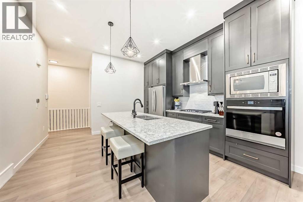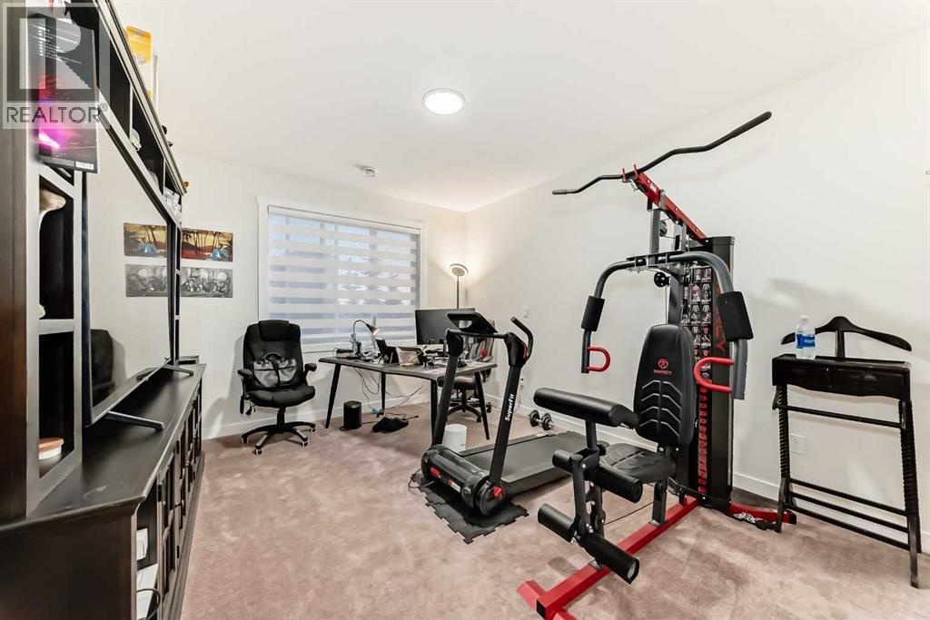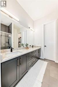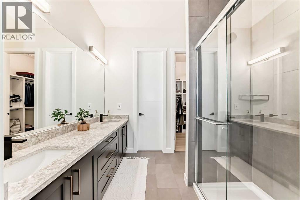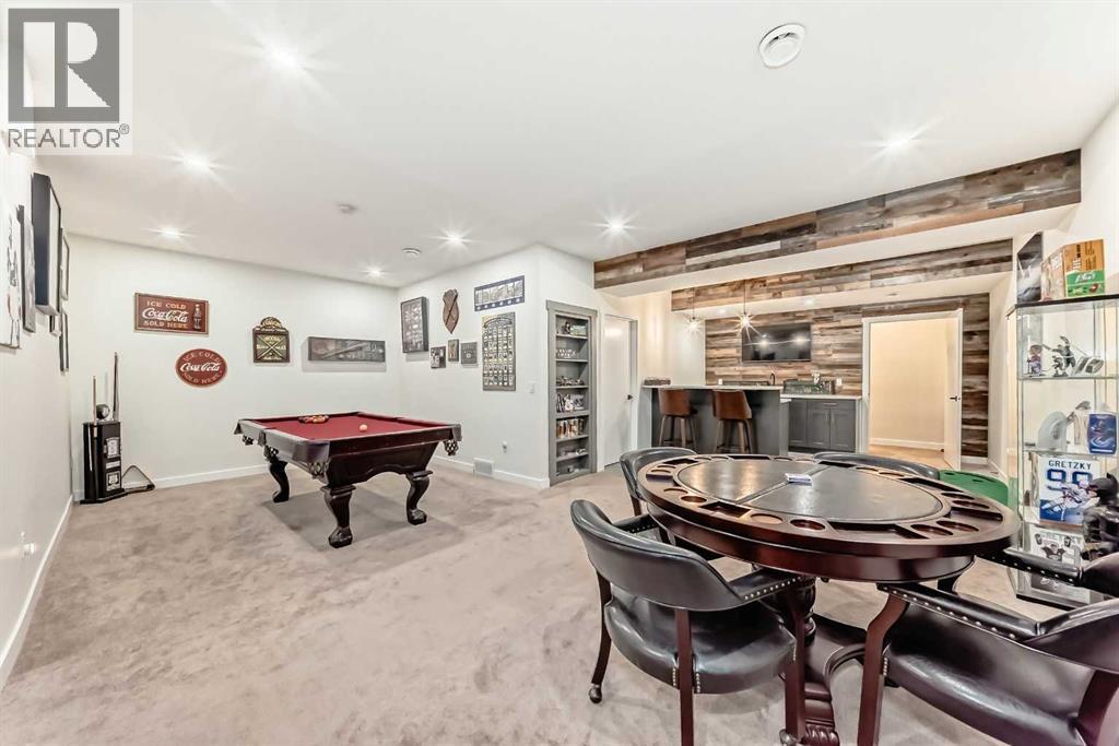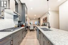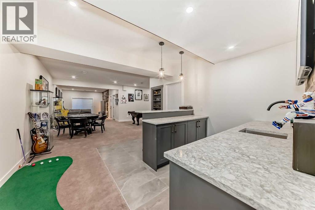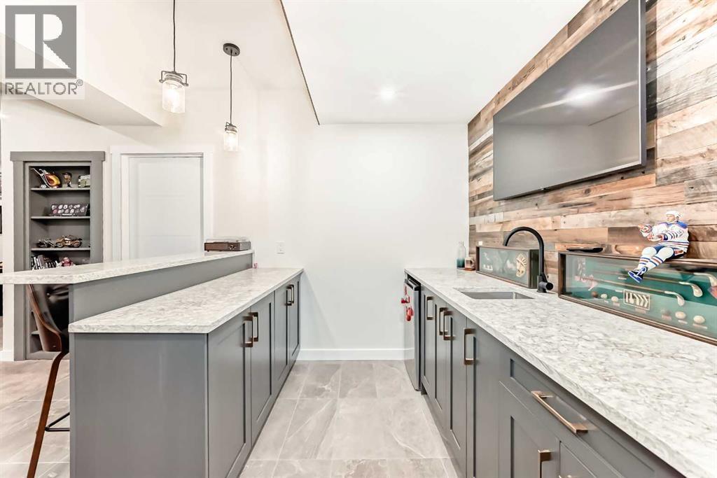 Fully Finished Walk-Out Bungalow with Spectacular Mountain Views.Welcome to this beautifully designed end-unit located in the new subdivision of Wedderburn, North Okotoks. With a private driveway, double attached epoxy-finished garage, and premium custom finishings throughout, this home offers modern comfort with exceptional functionality.The main floor features a modern chef’s kitchen with a large island, stainless steel appliances, gas range, and custom built-ins that don’t disappoint. From the adjacent balcony, enjoy west-facing mountain views and the convenience of a natural gas line for your BBQ or heater. The spacious primary bedroom is complete with a generous walk-in closet and a luxurious 4-piece ensuite. A second bedroom and additional 4-piece bathroom complete the upper level. High ceilings and contemporary finishes keep the space feeling open and inviting.At the back of the home, you’ll see unobstructed mountain views that can be enjoyed from both the main floor and the walkout lower level—creating a picture-perfect backdrop year-round.The custom-built, fully developed walkout basement is an entertainment haven, featuring a wet bar, expansive rec area (perfect for a pool table, poker setup, and multiple TVs), a full 4-piece bathroom, and a flexible bedroom currently used as an office/workout room. The walkout leads to a covered patio, a fully fenced backyard with a charming archway, and that same stunning mountain scenery.Additional highlights include a high-efficiency furnace, storage in the utility room, and numerous upgrades that add to the home’s upscale feel, including custom cabinetry in the laundry room for added convenience and organization. (id:6769)