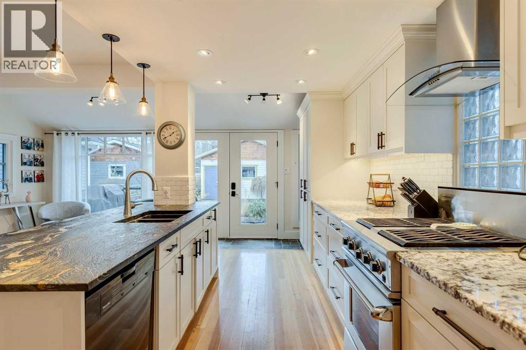 Welcome to this stunning, extensively upgraded character home in the heart of prestigious Rideau Park, offering timeless charm paired with refined modern updates. Sitting on a beautifully landscaped lot with exceptional curb appeal, this residence has been thoughtfully renovated throughout the years to blend classic architecture with luxurious, functional living. The main level features refinished original fir flooring, upgraded LED lighting, and a beautifully executed Casa Flores kitchen with custom cabinetry, natural stone countertops, a Miele dishwasher, and Euro-style refrigerator. The living room is anchored by a new custom built-in TV and shelving unit —a striking and practical addition that maximizes style and storage. Upstairs, the primary bedroom impresses with vaulted ceilings and a generous walk-in closet, while the upper loft area—now accessed by a custom-built staircase replacing the former ladder—creates an ideal office, study, or creative retreat. The lower level has been professionally renewed, including updated plumbing, electrical (with above-grade shut-off for the panel), a newer furnace and hot water tank, and a refreshed bathroom complete with heated floors. Additional upgrades include laminate flooring replacing carpet, and a custom railing added to the basement staircase for safety and aesthetic continuity. Exterior improvements further elevate the home: newer 30-year shingles, double detached garage, insulated and bright with a skylight and newer deck railing, plus newer washer/dryer set. Extensive landscaping includes an irrigation system, updated front steps, and an updated rear deck. Located in one of Calgary’s most sought-after inner-city enclaves, this home offers unmatched walkability and lifestyle. Rideau Park is known for its tree-lined streets, serene riverside setting, top-rated schools, and quick access to downtown. Enjoy being just minutes from the Elbow River pathway system, Rideau Park School, Lindsay Park, and the MNP Sport Cen tre. A short stroll takes you to the vibrant shops, cafés, wine bars, and award-winning restaurants of Mission and 4th Street, as well as the boutiques and nightlife of 17th Avenue SW. This prime location truly combines the tranquility of a heritage neighbourhood with the energy of Calgary’s most desirable urban amenities. A rare opportunity to own a beautifully preserved and upgraded home in a prestigious community where homes of this price point are seldom available. (id:6769)