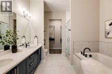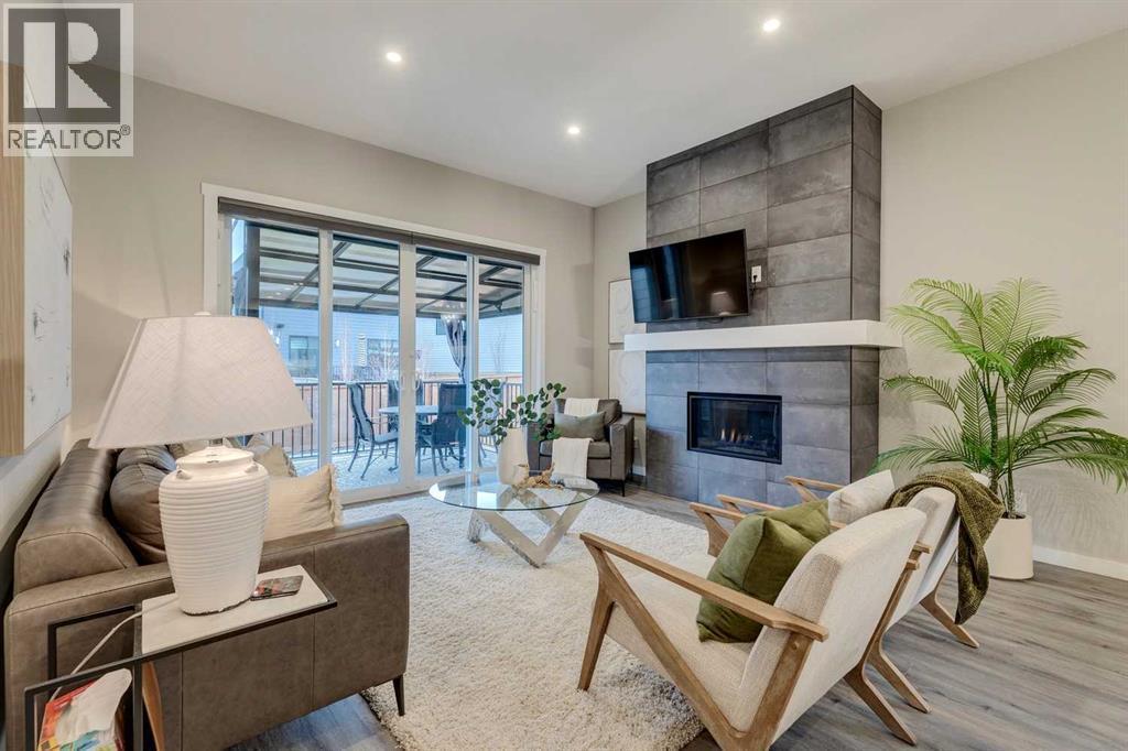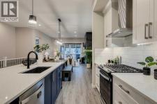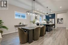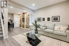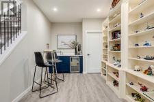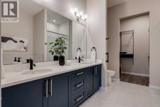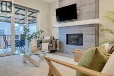 Adaptable Living! Offering the perfect blend of style, comfort, and functionality in this 1,450+ SQFT custom-built villa in Cranston’s Riverstone. Impeccably maintained and showcasing nearly-new condition, this spacious open-concept home has 10' ceilings and is designed for effortless everyday living and easy entertaining.At the heart of the home, a chef-inspired kitchen features abundant custom cabinetry, stainless steel appliances including gas range, expansive quartz countertops plus a large central island with seating that is ideal for gathering with friends or family. The dining area easily accommodates six or more guests, creating a warm and inviting space for holidays and dinner parties.The living room centres around a beautiful gas fireplace and flows seamlessly through sliding doors to the outdoor deck, complete with a covered pergola and fully-landscaped yard. The light-filled primary suite offers a serene retreat with a generous 5pc ensuite featuring a large tiled walk-in shower, deep soaking tub, and dual vanities with generous storage. A well-appointed walk-in closet provides ample space for future built-ins or customization.Additional highlights include a stylish powder room with a custom vanity designed for accessibility, low-maintenance luxury plank flooring throughout, an upper-level laundry room (including wash sink), and custom Hunter Douglas window coverings.The fully-finished lower level expands your living space with a generous family and games area, built-in bar with beverage fridge, and two large bedrooms anchored by a full bathroom; each with walk-in closets. A bright flex room provides versatility for a third guest room, home office, or gym/yoga space, along with a large storage area.This home thoughtfully incorporates accessibility features, including comfortable maneuverability throughout the main floor, a lift in the garage, and an accessible bathroom. This provides an ideal set-up for those with mobility needs or multi-generational families. These features blend sleeplessly and stylishly into the home or can be easily removed prior to possession if desired, offering flexibility for any buyer.No condo fees and low-maintenance landscaping are added bonuses! (id:6769)