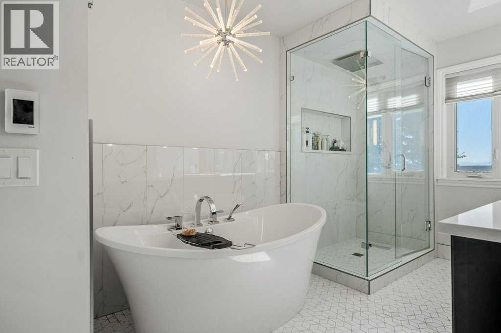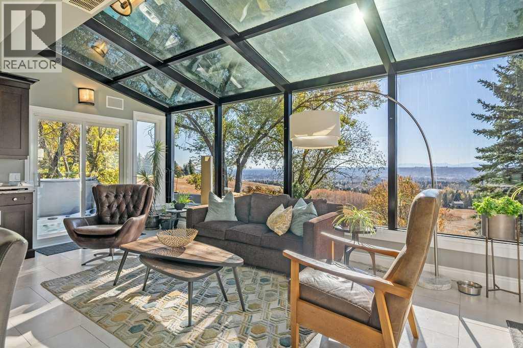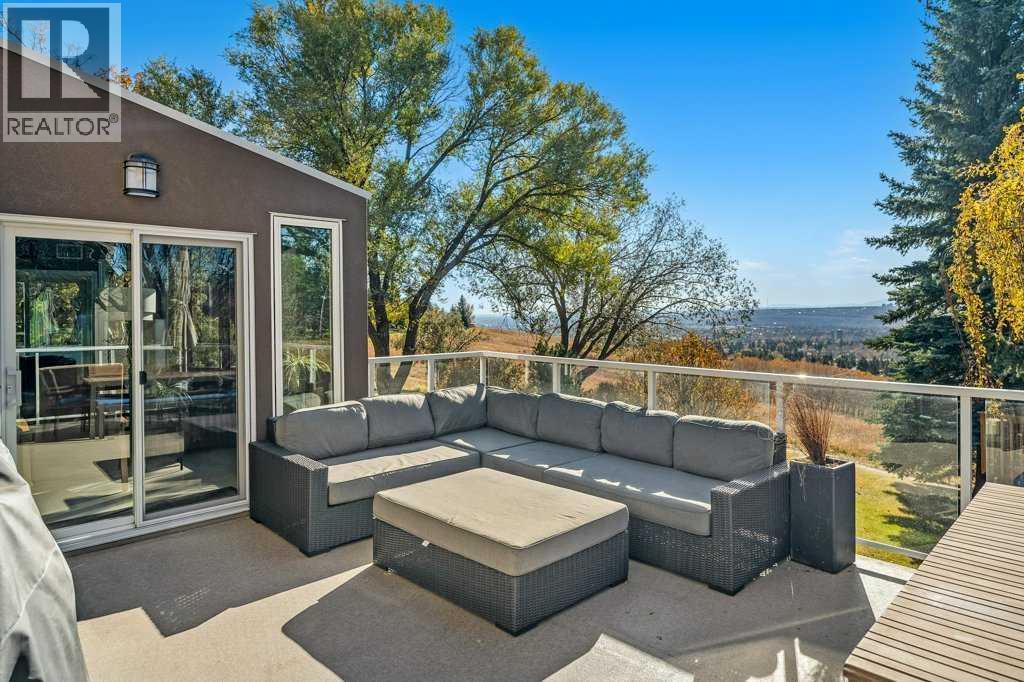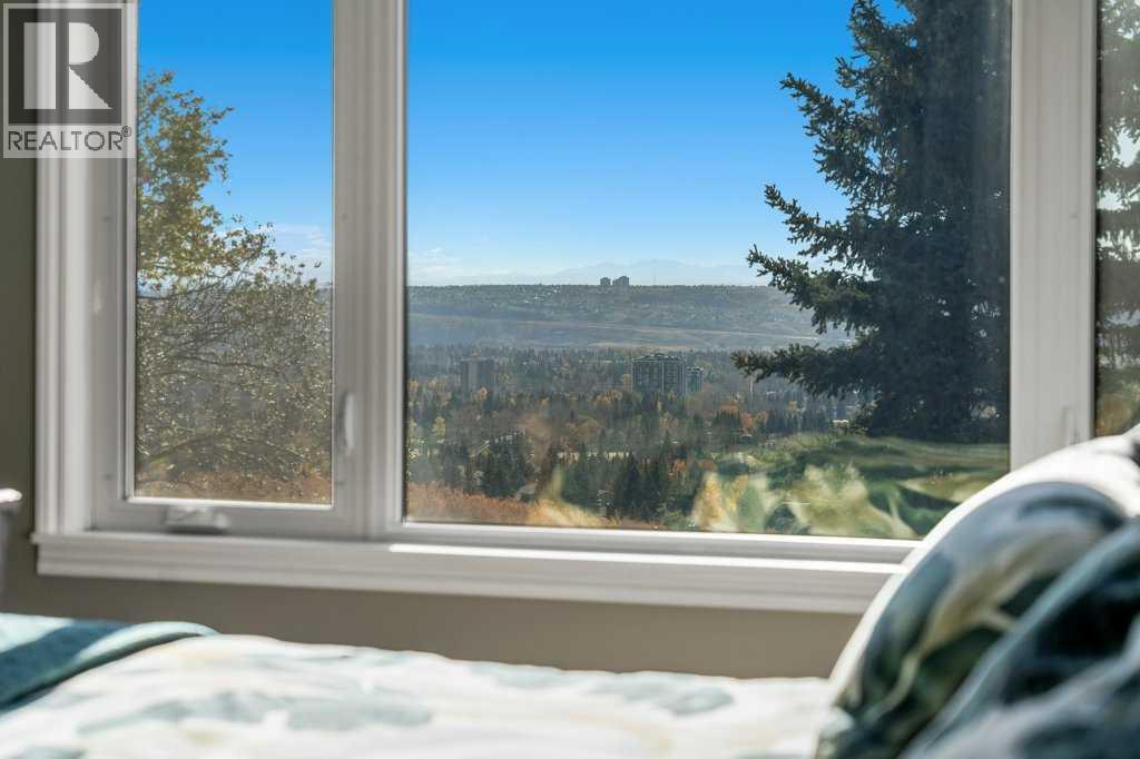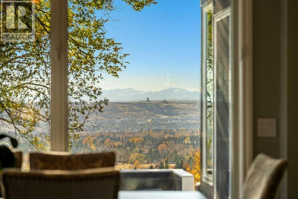 Perched on the sought-after Edgemont Ridge and backing directly onto an off-leash park, this impeccably renovated executive residence offers nearly 5,000 sq ft of luxurious living space, perfectly blending comfort, elegance, and cutting-edge technology. Meticulously upgraded with over $500,000 in premium enhancements, this luxury home combines modern innovation with timeless craftsmanship. A $140K Elan Smart Home Automation system with CAT 5 wiring, integrated temperature, media and security from any device sets the stage for effortless living. The impressive open-to-above foyer introduces elegant flow through the vaulted living room, where a sleek gas fireplace sets a sophisticated tone. Oversized windows in the adjoining dining area frame endless south and west-facing vistas, while designer lighting creates a refined backdrop for entertaining. The chef’s kitchen is a true centerpiece, blending luxury & function with granite countertops, high-end cabinetry, Sub-Zero & Wolf appliances, Miele built-in coffee maker, Asko dishwasher & an expansive island ideal for entertaining. A sunroom encased in glass brings the outdoors in, capturing panoramic ridge views year-round. This newly renovated space features heated floors & modern windows for year-round comfort, while patio doors extend living to the upper BBQ deck with glass railings & natural gas hookup for entertaining. A stylish den with its own gas fireplace creates a serene home office. Completing the main level are a custom mudroom with storage lockers, laundry with ample storage & a sink & a handy powder room. Upstairs, a skylit hallway leads to the serene primary retreat where corner windows showcase sweeping views. A custom California Closet & spa-inspired 5-piece ensuite with in-floor heat, deep soaker tub, dual vanities & oversized rain shower enhance daily indulgence. A second bedroom enjoys its own private 3-piece ensuite, while two additional bedrooms share access to another full bathroom. Gather in the r ec room in the walkout basement & enjoy family movies & games nights. A luxurious guest suite features in-floor heating, a gas fireplace, 3-piece ensuite, walk-in closet & direct patio access creating a spa-like retreat. A dedicated gym & an additional full bathroom add flexibility, while a second laundry area & abundant storage enhance everyday convenience. Outdoor living shines with multiple spaces for relaxation & entertaining, including a hot tub deck for rejuvenating evenings, a covered patio from the walkout level & an expansive yard with a custom-built treehouse surrounded by unforgettable views. Additional highlights include a heated triple car garage with epoxy floors, built-in speakers on all three levels, upgraded Hunter Douglas blinds & a durable clay tile roof. Ideally positioned on the Edgemont ridge with quick access to Nose Hill Park, top-rated schools, shopping & transit, this home balances timeless design with modern luxury in one of northwest Calgary’s most coveted locations! (id:6769)