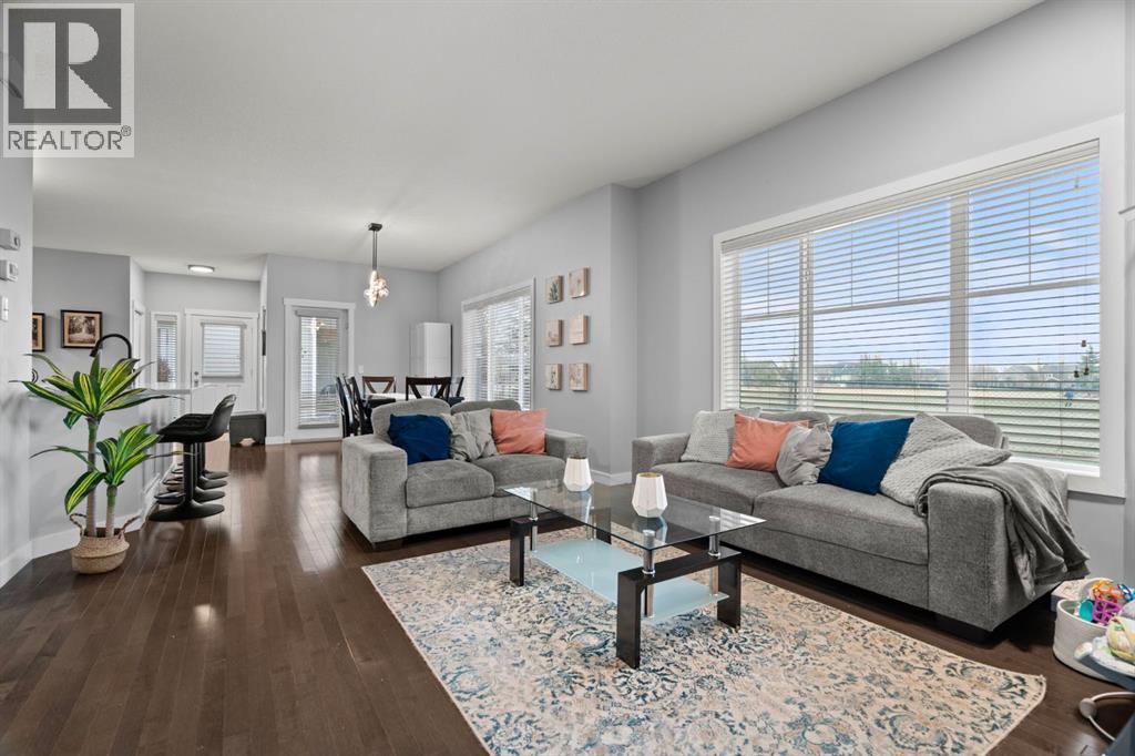 OPEN HOUSE SUNDAY 2PM-4PM! A RARE OPPORTUNITY to live in an UPDATED main-level BUNGALOW BACKING ONTO GREENSPACE! This sprawling 3 BEDROOM, 3 BATH home provides over 2,000 developed square feet! Offering an abundance of natural light and overlooking a serene park. You will immediately notice the soaring 9’ ceiling, gorgeous hardwood floors, stylish lights, fresh paint and open floor plan. The modern kitchen is a focal point with solid maple cabinets, a timeless subway tile backsplash, sleek stone counters and upgraded stainless steel appliances. This has a flush eating bar that seamlessly connects to the spacious dining room. Which provides direct access to your patio with a convenient BBQ gas line and mature trees that add additional privacy. Adjacent to the dining room is a spacious living room featuring a charming gas fireplace. On one side of the home is the well sized primary with a walk in closet and its own updated ensuite including new stone counters, tile backsplash, and upgraded plumbing fixtures. On the other side is the additional bedroom or office, with a 4pc updated main bathroom. Completing this level is a mudroom space with access to your attached garage. The basement has several large windows and an expansive rec room, making it ideal for entertaining. Completing the space is a third bedroom, 3 pc bath and laundry room. This home is in the highly sought-after Cougar Ridge community close to transit, great schools, Canada Olympic Park, Westside Rec Centre, plenty of restaurants and shops in West 85th shopping district and pathways. Enjoy quick access to downtown, or the mountains via Stoney Trail. Offering the lock and leave lifestyle you want in a pet friendly property with affordable condo fees. Schedule your private showing or view the virtual tour. (id:6769)
