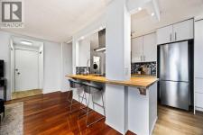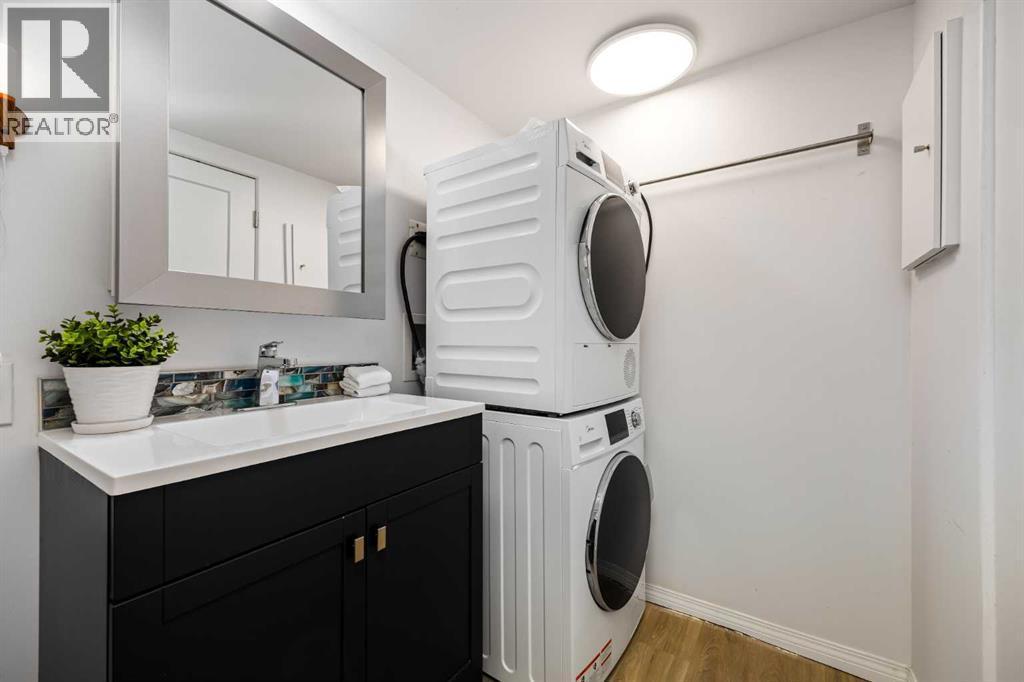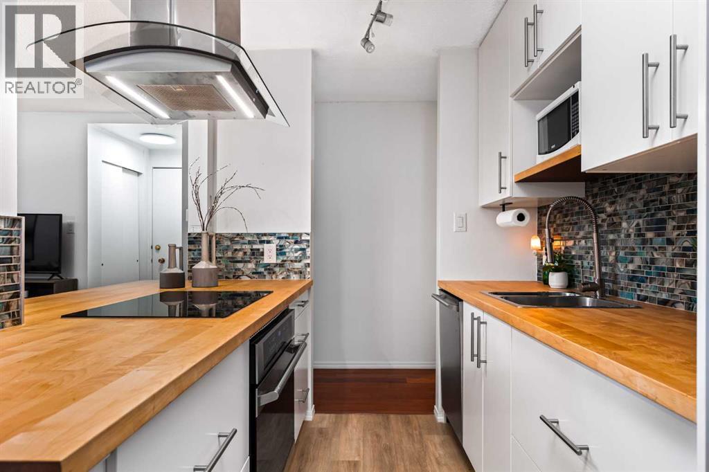 Beautifully updated 2-bedroom end unit in a quiet, well-managed 18+ building backing directly onto the river valley. This bright first-floor home offers windows on three exterior walls for excellent natural light, highlighted by rich hardwood flooring and an open-concept living and dining area that leads to a private covered balcony—perfectly tucked among mature trees for year-round privacy. The modern kitchen features butcher-block counters, white cabinetry, stainless steel appliances, and a stylish breakfast bar. Both bedrooms are generously sized, complemented by an updated 4-piece bathroom and convenient in-suite laundry. Additional perks include a dedicated parking stall, in-suite storage, extra common storage, and secure bike storage. Ideally located on a peaceful crescent within walking distance to Westbrook Mall, the LRT, parks, pathways, and all the amenities of Spruce Cliff—offering a rare combination of privacy, convenience, and inner-city value. (id:6769)