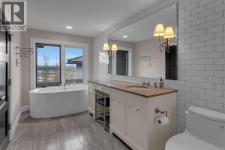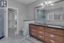 Welcome to this truly incredible custom-built home perfectly positioned on a quiet street in the prestigious community of Scenic Acres. Backing onto a ravine with breathtaking views of the mountains and COP, this home combines timeless elegance with modern luxury. Originally crafted in 1996 with a neo-classical design, the property underwent a major renovation by Empire Kitchen and Bath approximately 11 years ago, which included updates to the roof, windows, and exterior. The main floor showcases a fully loaded chef's kitchen with gorgeous countertops, top-of-the-line Miele built-in coffee machine, Sub-Zero fridge and drawers, Wolf oven and wolf steam oven, induction cooktop, and convection microwave. From the kitchen, step out onto the expansive full-width deck with BBQ gas line and enjoy the sweeping ravine views. The main living area is a showpiece, featuring a majestic fireplace, soaring ceilings, and Pella windows fitted with Hunter Douglas blinds. An elegant formal dining room and a primary bedroom with a luxurious ensuite including a steam shower complete this level. Upstairs, you'll find two spacious bedrooms, each with their own ensuites, heated floors, and walk-in closets. A cozy family or games room with a gas pellet stove adds warmth and charm while a bonus loft/home office or library with built-in shelving overlooking the living room. A separate wing features another primary bedroom with a heated ensuite and walk-in closet, providing privacy and comfort. The walk-out basement is an entertainer's dream. It features a rec room with a wet bar, complete with a sub-zero wine fridge, dishwasher, and walk-up access to garage, plus a gym area (with fridge included), pool table area (also included), and a Murphy bed for guests. The lower level also offers beautiful ravine views, a sport court with light switch, firepit with gas line, and underground sprinklers. Recent upgrades include two new furnaces in basement one in garage and one for the addition, and hot w ater tanks (September 2023) by Arpis, plus a ceiling furnace dedicated to the heated triple attached garage with aggregate driveway. The garage includes a Garage Works wall system and automated opener with controls. Smart home electronics are included from Home Concepts, along with two Kinetico water systems - one on the main floor and another in the basement with a chlorine filter and water softener. Throughout the home, gorgeous cherry hardwood floors, high open ceiling, and air conditioning provide an atmosphere of sophistication and comfort. Set on a quiet street right next to walking paths, this exceptional property offers easy access to Crowfoot Centre, LRT, and top-rated schools, as well as nearby parks and amenities. This is a rare opportunity to own a luxurious, fully upgraded home designed for both entertaining and family living in one of Northwest Calgary's most sought-after communities. (id:6769)