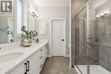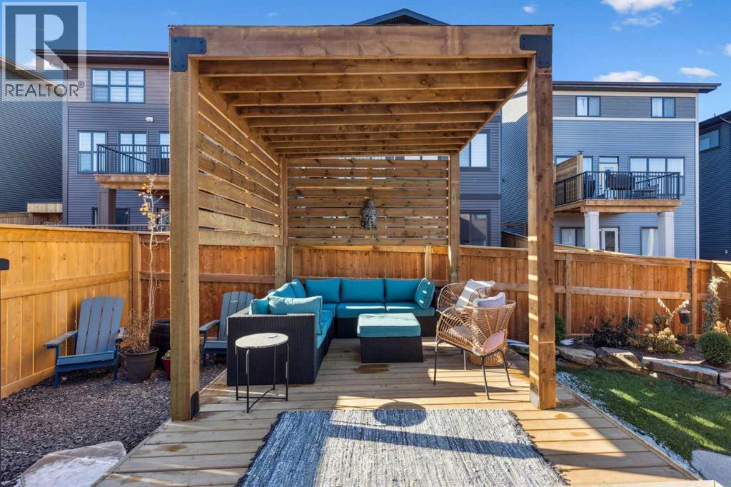 Welcome to this beautifully crafted bungalow that perfectly balances style, comfort, and functionality! Designed with an inviting OPEN-CONCEPT layout, the main floor showcases soaring VAULTED CEILINGS that create a bright and spacious atmosphere. The impressive kitchen features QUARTZ COUNTERTOPS, a statement FEATURE HOOD FAN, updated TILE BACKSPLASH, and plenty of cabinetry—ideal for both entertaining and everyday living. The adjoining living room centers around an ELECTRIC FIREPLACE with a striking FEATURE WALL, adding warmth and modern flair.A stylish MAIN FLOOR OFFICE with a BARN DOOR and custom attachment provides the perfect work-from-home setup. The upgraded LAUNDRY ROOM offers added convenience with COUNTERSPACE, SHELVING, and CABINETRY, complemented by UPGRADED TILE. The elegant HALF BATH is thoughtfully finished with a SLATTED ACCENT WALL, QUARTZ COUNTERS, and UPGRADED FIXTURES.The PRIMARY BEDROOM is a true retreat, featuring a generous WALK-IN CLOSET and a spa-inspired ENSUITE complete with DUAL SINKS and a fully TILED SHOWER.Downstairs, the FULLY FINISHED BASEMENT expands your living space with a cozy FAMILY ROOM featuring a FEATURE WALL and DRY BAR, plus TWO ADDITIONAL BEDROOMS and a MODERN 4-PIECE BATHROOM—perfect for guests or family.Step outside to your WEST-FACING BACKYARD OASIS, highlighted by a TWO-TIERED DECK with PRIVACY WALL, a PERGOLA WITH ROOF, BUILT-IN BENCH, and beautiful LANDSCAPING with florals and a PAVING STONE PATHWAY—all while enjoying scenic views of Cochrane.Located in one of Cochrane’s most desirable communities, this home offers high-end finishes, thoughtful design, and incredible outdoor living—truly a must-see! (id:6769)