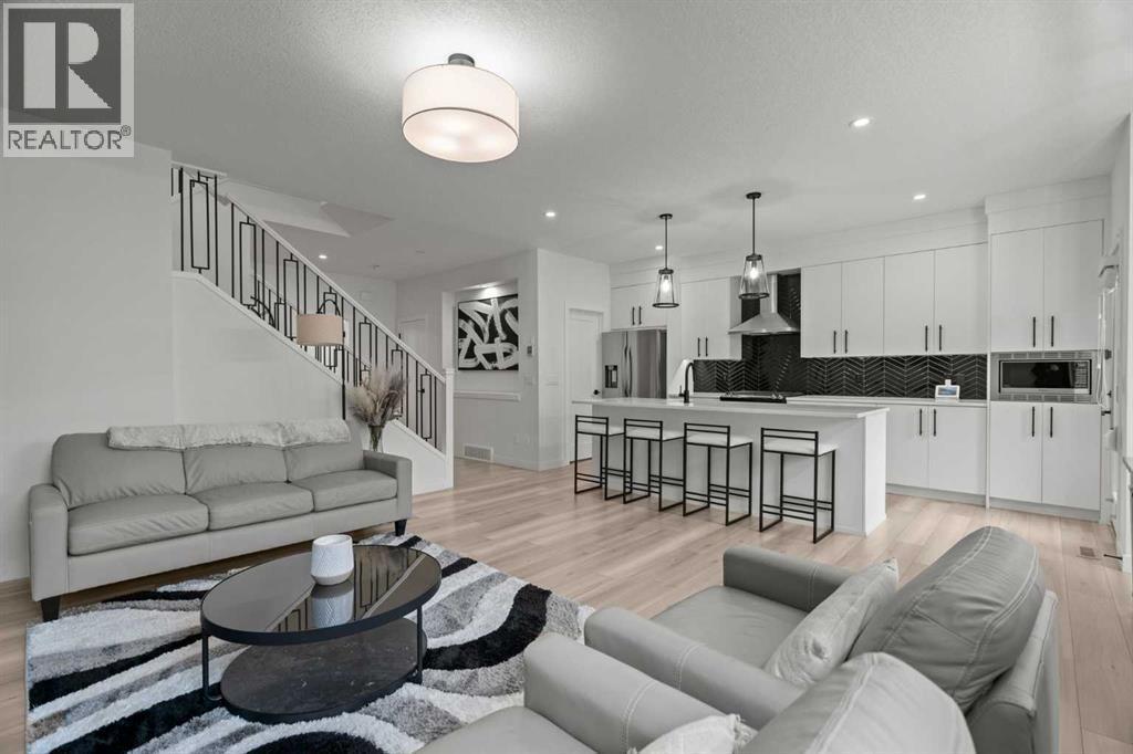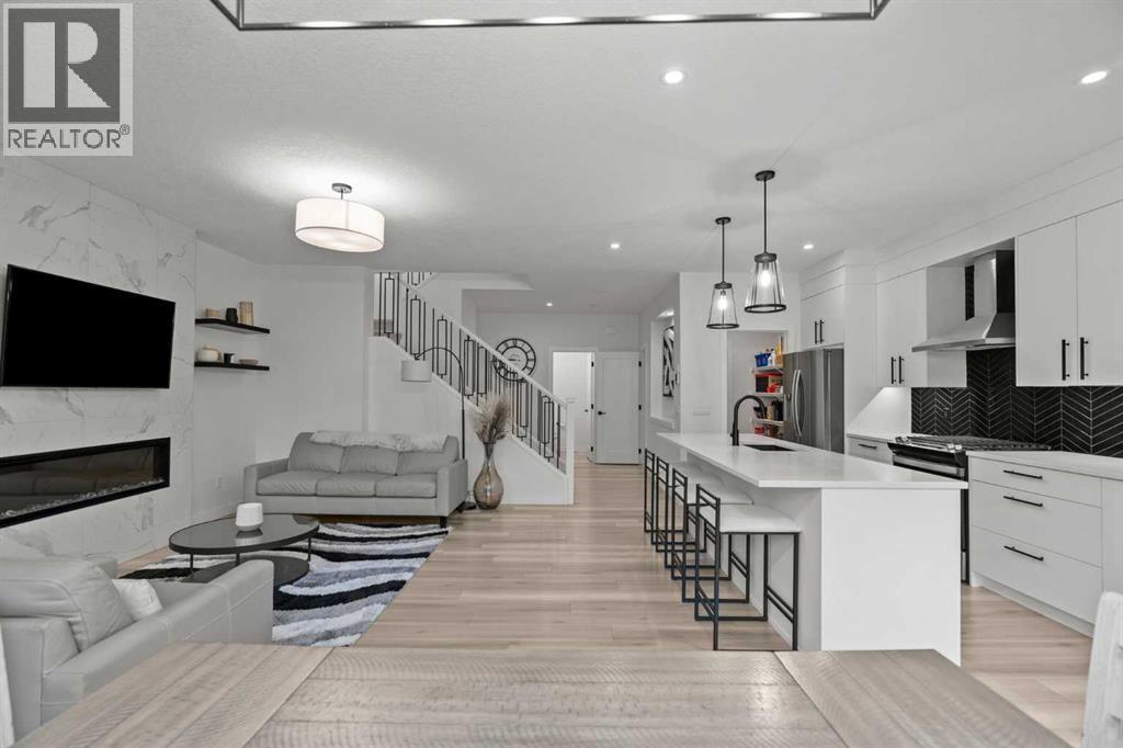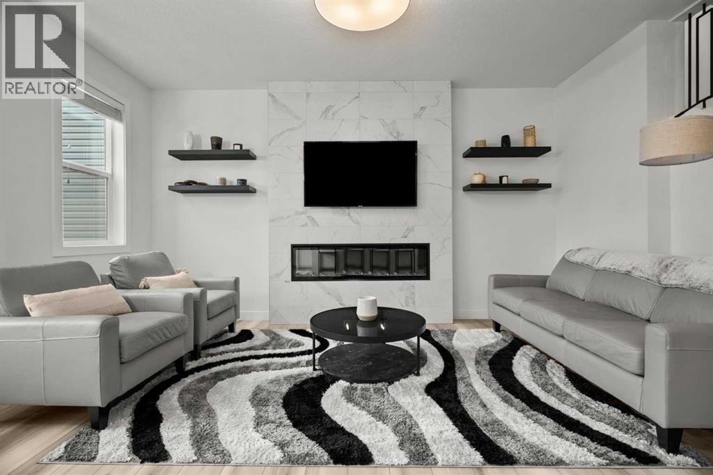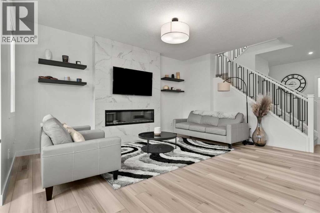 Welcome to this beautifully upgraded and fully developed detached home in the highly desirable community of Carrington NW—offering over 2,000 sq. ft. of thoughtfully designed living space, modern finishes, and exceptional convenience. Step inside to a bright and inviting main floor featuring large windows, luxury vinyl plank flooring, sleek metal railings, black hardware, and upgraded interior doors. The spacious living room is highlighted by a stylish modern fireplace and plenty of natural light, creating a warm and elegant atmosphere. The gourmet kitchen is a true centerpiece, complete with quartz countertops, a gas range, hood fan, wine fridge, stainless steel appliances, modern pendant lighting, and a cozy dining area with open views. Enjoy year-round comfort A/C , along with included window coverings. Upstairs, you’ll find three generously sized bedrooms, including a relaxing primary suite with a contemporary ensuite. The convenience of upper-level laundry adds to the home’s practical design. The fully developed basement offers an additional two big rooms and full bathroom. Outside, the large and private backyard features a large deck, ideal for summer BBQs, entertaining, or simply unwinding at the end of the day. A double attached garage and fully fenced, lot add even more value for families. Carrington is one of Calgary’s fastest-growing and most sought-after northwest communities, offering quick access to Stoney Trail, Centre Street, Deerfoot, Carrington Plaza, Evanston, and Creekside shops. Enjoy walking paths, storm ponds, playgrounds, a skate park, basketball courts, public art installations, green spaces, and the upcoming Greenway Plaza, future school sites, business district, and Green Line LRT extension—making this a smart long-term investment. Move-in ready and designed for both luxury and comfort, this home delivers modern living in a vibrant, family-friendly neighborhood. Book your private showing today and make this exceptional property your new r etreat! (id:6769)