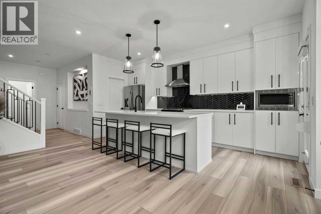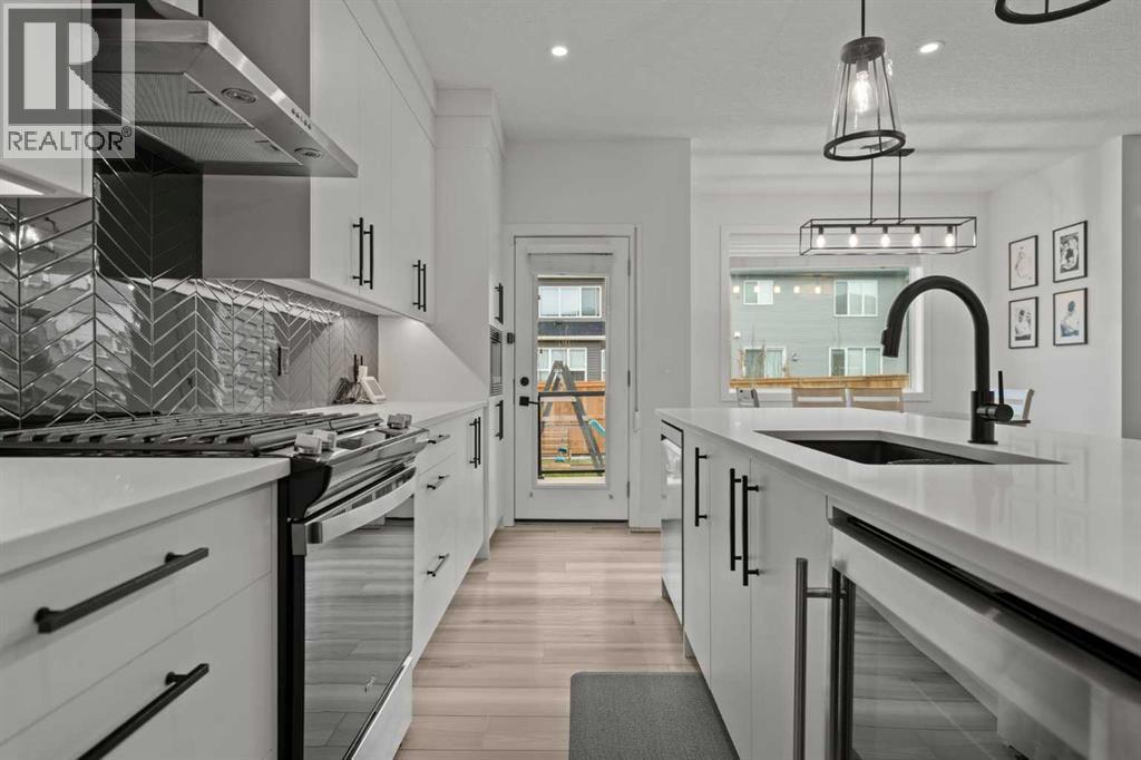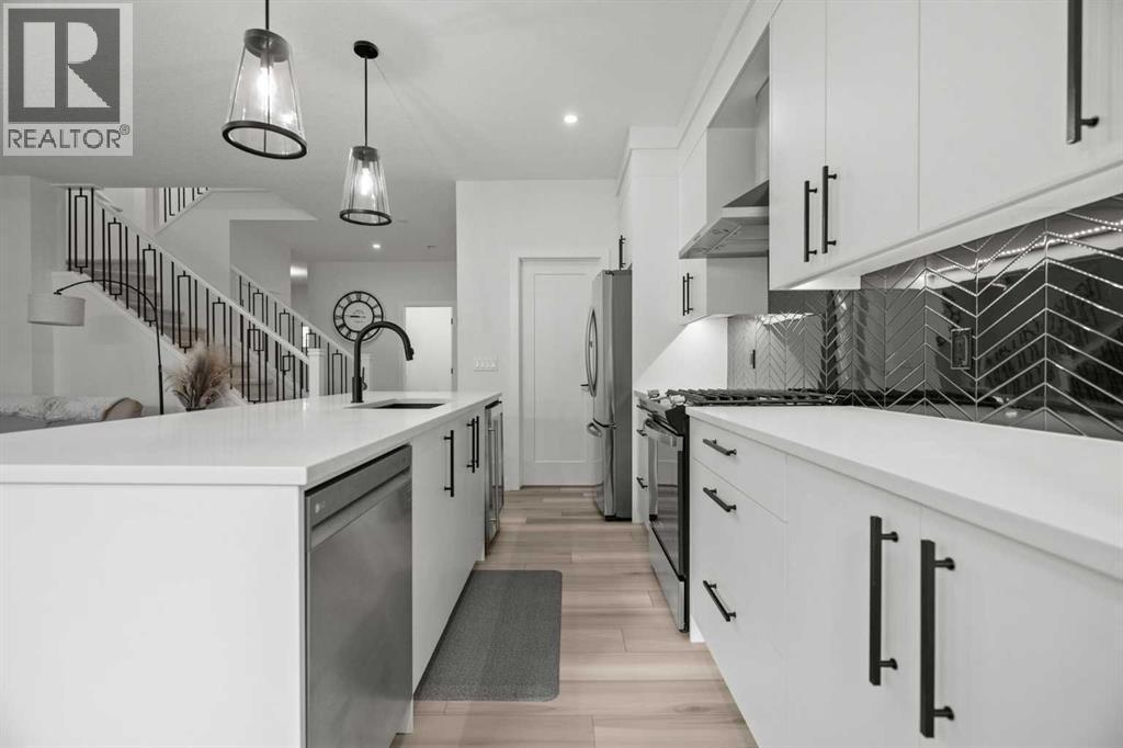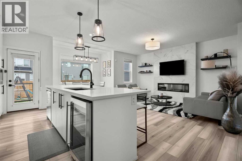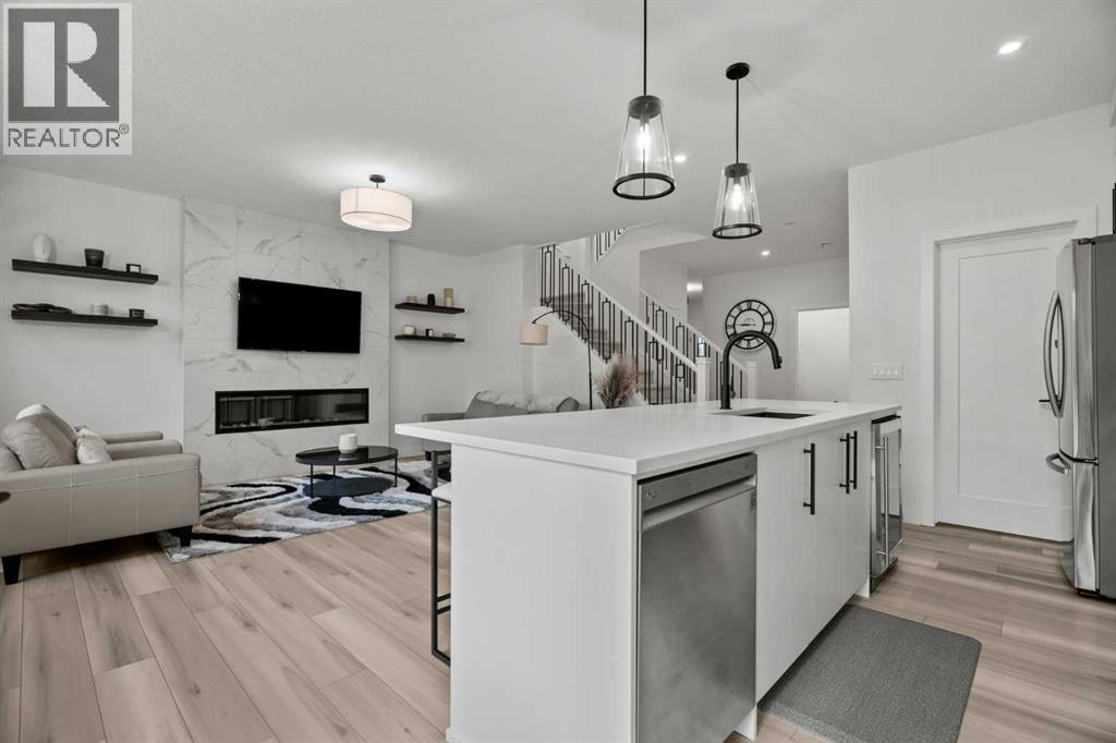Welcome to this beautifully upgraded and fully developed detached home in the highly desirable community of Carrington NW—offering over 2,000 sq. ft. of thoughtfully designed living space, modern finishes, and exceptional convenience. Step inside to a bright and inviting main floor featuring large windows, luxury vinyl plank flooring, sleek metal railings, black hardware, and upgraded interior doors. The spacious living room is highlighted by a stylish modern fireplace and plenty of natural light, creating a warm and elegant atmosphere. The gourmet kitchen is a true centerpiece, complete with quartz countertops, a gas range, hood fan, wine fridge, stainless steel appliances, modern pendant lighting, and a cozy dining area with open views. Enjoy year-round comfort A/C , along with included window coverings. Upstairs, you’ll find three generously sized bedrooms, including a relaxing primary suite with a contemporary ensuite. The convenience of upper-level laundry adds to the home’s practical design. The fully developed basement offers an additional two big rooms and full bathroom. Outside, the large and private backyard features a large deck, ideal for summer BBQs, entertaining, or simply unwinding at the end of the day. A double attached garage and fully fenced, lot add even more value for families. Carrington is one of Calgary’s fastest-growing and most sought-after northwest communities, offering quick access to Stoney Trail, Centre Street, Deerfoot, Carrington Plaza, Evanston, and Creekside shops. Enjoy walking paths, storm ponds, playgrounds, a skate park, basketball courts, public art installations, green spaces, and the upcoming Greenway Plaza, future school sites, business district, and Green Line LRT extension—making this a smart long-term investment. Move-in ready and designed for both luxury and comfort, this home delivers modern living in a vibrant, family-friendly neighborhood. Book your private showing today and make this exceptional property your new r etreat! (id:6769)
