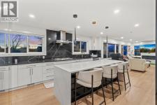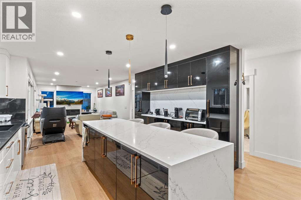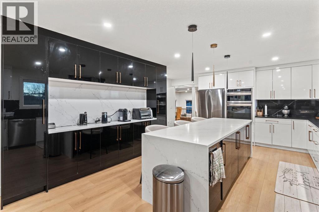 Welcome to an extensively renovated bungalow set on a large, private piece of land in the peaceful, rural-feeling pocket of Shepard, yet only minutes from Calgary’s major routes and city conveniences. This home offers 3,380 sqft of total living space, open layout that combines generous principal rooms with modern design. The main level features a huge fully updated kitchen with oversized quartz island, sleek cabinetry, high-end appliances, and panoramic windows that bring in beautiful evening light. Multiple living and family spaces provide ideal separation for large families, highlighted by a raised dining area overlooking the main living room and offering a warm, inviting flow for gatherings. The main floor also includes three bedrooms plus an office, along with two renovated ensuites and a full bathroom. The lower level is equally impressive, offering a spacious secondary living area complete with an illegal basement suite, a massive rec room, three additional bedrooms, two full bathrooms including another ensuite, laundry space, and ample storage. Outside, the property features a wide driveway, a detached heated garage, plenty of yard space for parking or future use, and a back deck off the kitchen area perfect for enjoying the open surroundings. This is a rare opportunity to own a move-in-ready, fully modernized home on substantial land within Calgary city limits, offering space, comfort, and versatility for multi-generational living or future potential. (id:6769)