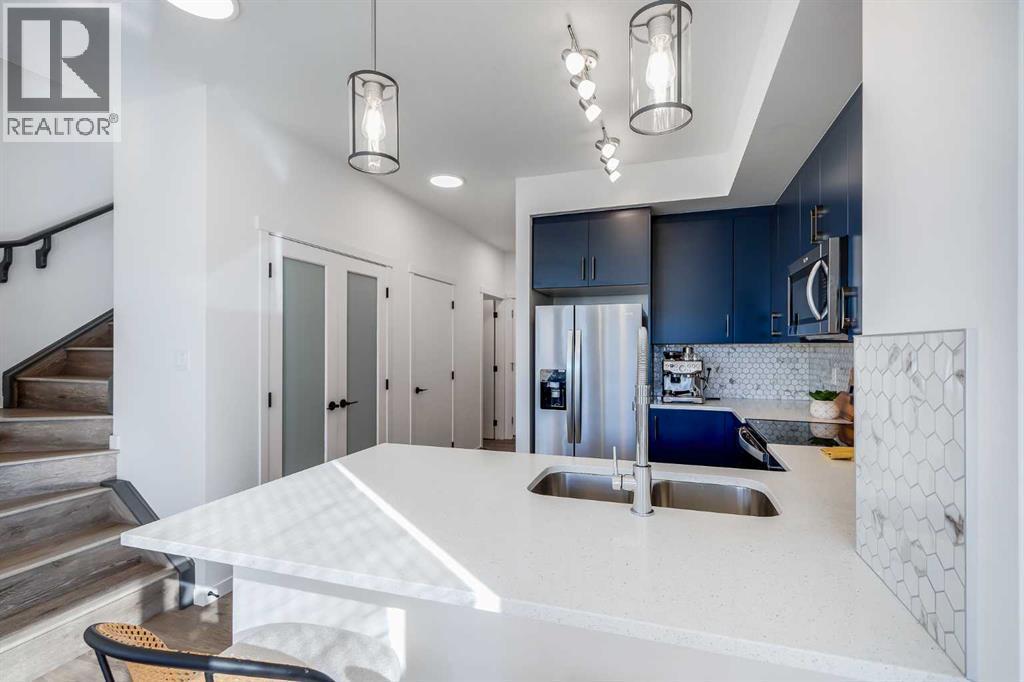 Located in the desirable, family-friendly lake community of Mahogany, this semi-detached two-storey home sits on a generously sized lot (nearly double the size of similar properties) and features a single attached garage with an oversized driveway, complete with an electric car charger fitting. Offering approximately 1,500 square feet of thoughtfully designed living space, the home includes three bedrooms and 2.5 bathrooms. The main floor welcomes you with luxury vinyl plank flooring throughout and 9-foot ceilings, creating a bright and inviting atmosphere. A spacious entryway leads to an open-concept kitchen, dining, and living area, where abundant windows allow natural light to fill the space. The kitchen features modern blue cabinetry, a striking backsplash, quartz countertops, a French door fridge, an undermount sink with upgraded faucet, garburator, a double-door pantry with frosted glass, and breakfast bar seating. Stainless steel appliances and upgraded lighting complete the modern feel. Sliding glass doors from the dining area provide seamless access to the backyard, while a convenient two-piece powder room serves the main level. Upstairs, luxury vinyl plank flooring continues into a bonus room, three bedrooms, and the laundry area. The bonus room features an upgraded window, adding both style and natural light. The primary retreat includes dual closets and a four-piece ensuite, while the two additional bedrooms share a three-piece bathroom with an oversized shower and built-in seat. Upgrades such as metal spindle railings, pot lights, and enhanced lighting fixtures throughout the home contribute to a total of roughly $50,000 in modern enhancements. The basement, with 9-foot ceilings, awaits your personal touch and includes a bathroom rough-in, offering flexibility for future development. Outside, the expansive backyard spans 324 feet deep, perfect for creating distinct zones for gardening, a kids’ play area, lush lawn, and a BBQ space to entertain friends a nd family. This home is a short 15-minute walk to the Mahogany Beach Club and its amenities. The lake offers sandy beaches, a non-motorized marina, swimming, paddleboarding, kayaking, fishing, and year-round recreational opportunities, including ice skating and hockey in winter. West Beach and Central Beach feature sports courts, playgrounds, picnic sites, and fire pits. A future school is planned right behind the backyard, and the community’s 74 acres of wetlands are just a 15-minute walk away. Nearby amenities include Mahogany Village Market, Westman Village, restaurants such as Chairman’s Steakhouse and Alvin’s Jazz Club, and convenient access to Seton YMCA, the Calgary Public Library, and schools including Mahogany School, Lakeshore School, and Joanne-Cardinal Schubert High School. Easy connections to 52nd Avenue and Stoney Trail make commuting a breeze! Check out the floor plans and 3D tour for a closer look! (id:6769)