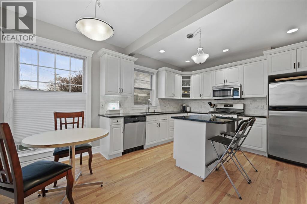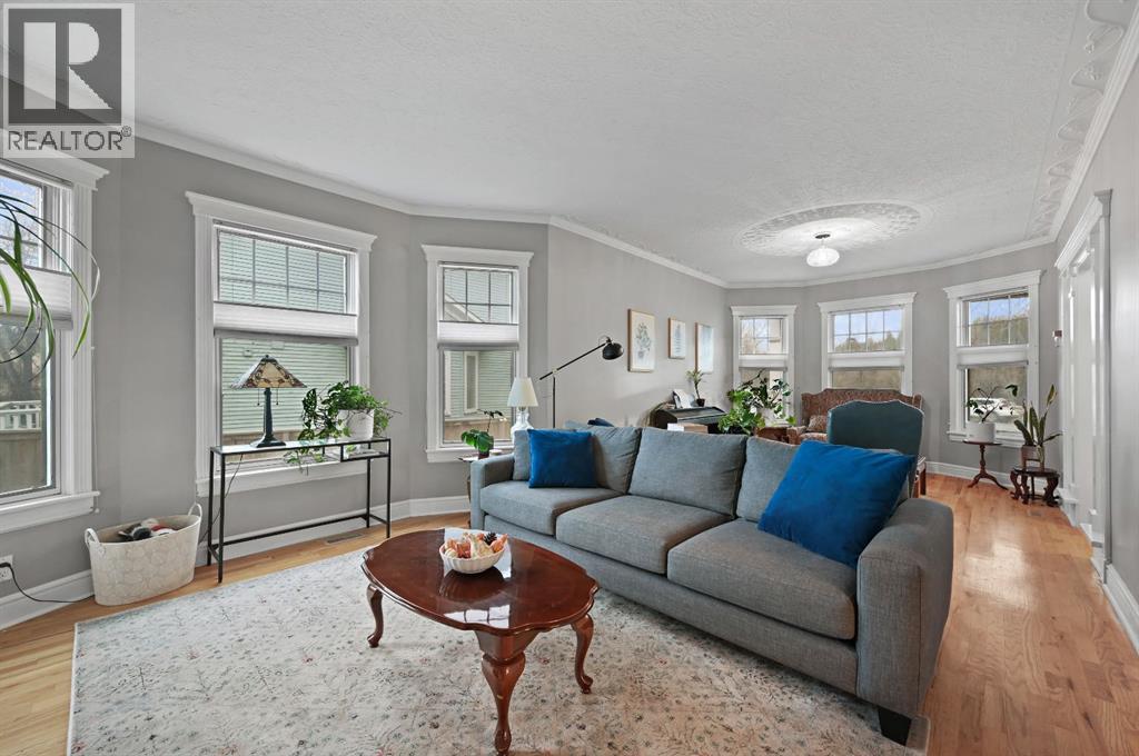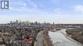 Timeless charm meets unrivaled location in this beautiful turn-of-the-century Parkdale home, perfectly positioned on a coveted 6,781 sq. ft. riverfront lot facing the Bow River. Set on a picturesque, tree-lined street, this character residence blends classic architecture with thoughtful upgrades, creating a warm and welcoming space ideal for families. A charming front porch sets the tone before stepping into the stunning foyer, where original detailing and rich hardwood flooring carry you through the main level. Through elegant French doors, the living room offers a cozy gathering space complete with a gas fireplace. The dedicated dining room is perfect for hosting, while the beautifully updated kitchen features stainless steel appliances and connects seamlessly to a practical mudroom. Upstairs, the home truly shines with four generous bedrooms. The spacious primary retreat has a 4-piece ensuite bathroom and one of the secondary bedrooms captures incredible Bow River views along with access to a private upper-level porch. The upper level also has a secondary 4-piece bathroom, ideal for large families. The lower level provides a comfortable, flexible space—perfect for movie nights, recreation, or a cozy hideaway on winter evenings. Outdoors, the property boasts a spacious front and side yard, offering ample room for kids to play or for gardening enthusiasts. An oversized double detached garage adds convenience and storage options. This exceptional location means you can enjoy the Bow River Pathway network directly across the street, with endless options for biking, running, and scenic river walks. Downtown Calgary is just 10 minutes away, and Kensington Village is a quick 5-minute drive, placing some of the city’s best dining and cafés at your fingertips. Families will appreciate being a short walk to Westmount Charter Elementary School, making everyday life easier. (id:6769)