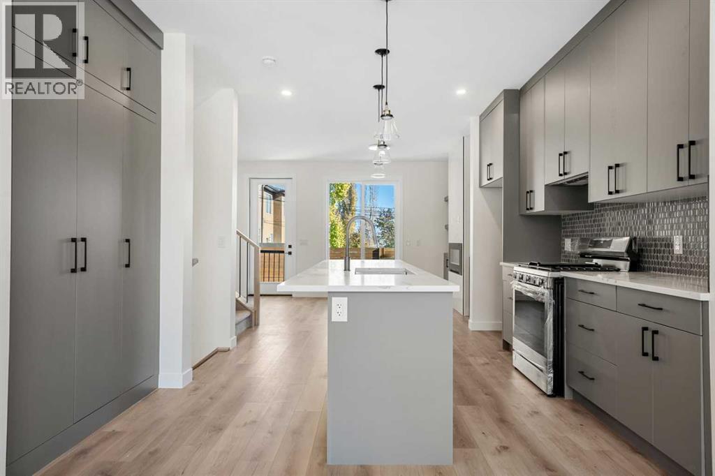 Introducing a rare opportunity to own a BRAND NEW, architecturally refined 4-bedroom, 3.5-bathroom townhome in the distinguished and highly sought-after community of Mount Pleasant.Spanning over 1400 square feet, this thoughtfully crafted home combines modern design with everyday comfort, making it an excellent choice for urban living. From the moment you enter, you’ll experience a sense of quiet elegance. The main level features soaring 9-foot ceilings, expansive windows that fill the space with natural light, and an open-concept layout ideal for both entertaining and relaxed daily living.The gourmet kitchen stands out with its quartz countertops, premium stainless steel appliances, custom soft-close cabinetry, and a large center island that functions as both a workspace and a welcoming hub for social gatherings.Upstairs, the tranquil primary bedroom includes a spacious walk-in closet and a spa-inspired ensuite designed with timeless finishes to create a calming retreat. Three additional bedrooms offer flexible space for family, guests, or a home office, while three and a half well-appointed bathrooms add comfort and convenience throughout.Other highlights include a private patio, perfect for enjoying summer evenings or quiet mornings, an upper-level laundry area, and detached garage with driveway parking. Built with energy-efficient systems, this home is designed for long-term ease and sustainability. A comprehensive new-home warranty is also included for added peace of mind.Located in vibrant yet peaceful Mount Pleasant, the property is within close proximity to top-rated schools, scenic parks, boutique shops, local cafés, and public transit. With quick access to major routes and downtown Calgary, this home offers both lifestyle and location. Schedule your private showing today and discover the perfect blend of quality, comfort, and contemporary style. One or more photo(s) was virtually staged to help viewers visualize the home’s appearance. (id:6769)