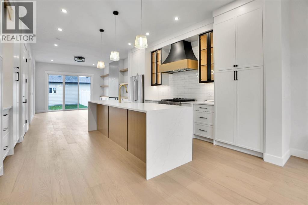 Brand-New Luxury Infill in Bowness | Legal 2-Bedroom Suite | South Backyard Luxury + Income Potential + Lifestyle – All in One Home.Move right in to this stunning, never-lived-in luxury infill featuring a bright open floor plan, designer finishes, and a legal 2-bedroom basement suite for rental income or multigenerational living.Enjoy a chef-inspired kitchen with quartz countertops, warm wood accents, premium stainless steel appliances, and a show-stopping waterfall island. The living room boasts a modern fireplace with custom built-ins and opens to a sunny south-facing backyard – perfect for entertaining.Upstairs, a spa-like primary suite with walk-in closet, dual sinks, freestanding tub, and glass custom shower, plus two additional bedrooms and full bath.The bright basement suite offers its own kitchen, laundry, private entrance, and full bath – ideal for guests or tenants.Prime location near Bow River pathways, Bowmont Park, Market Mall, Winsport, schools, and quick highway access to the mountains. (id:6769)