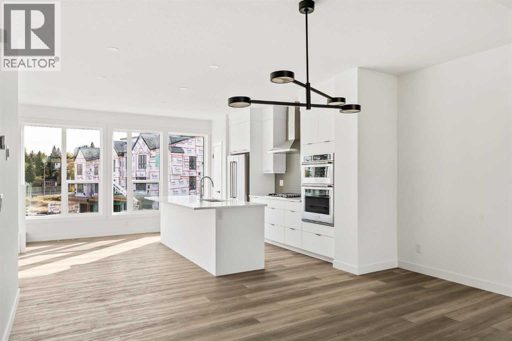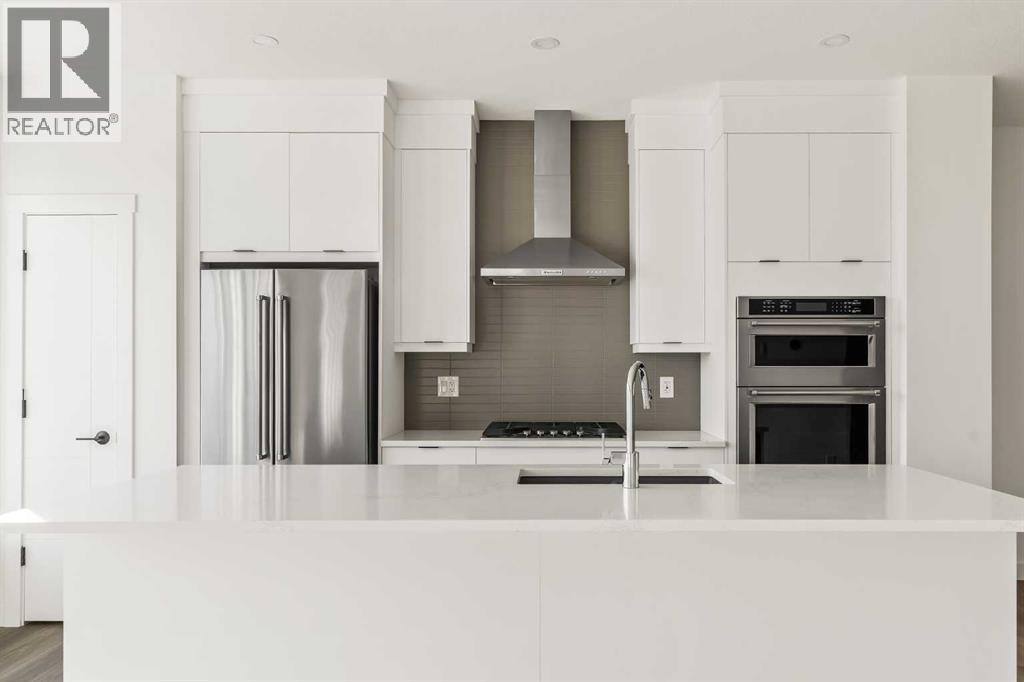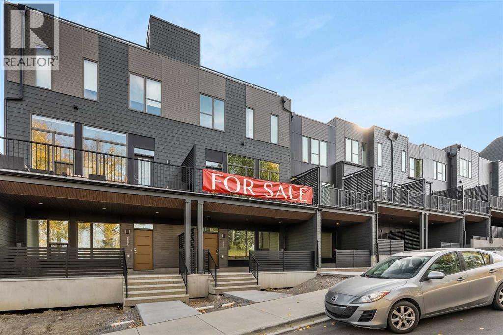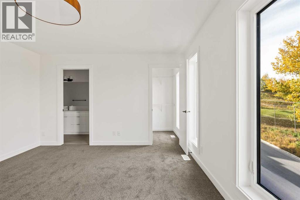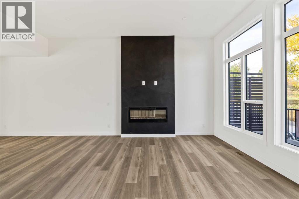 Limited promotion: FREE A/C + 2 YEARS OF FREE CONDO FEES ($18,000 VALUE)! Welcome to this stunning urban townhome at Crown Park – The Stanley Walkout, offering a maintenance-free lifestyle at Calgary's newest inner-city development that has stunning downtown views! This brand-new, spacious home features 3 bedrooms, 2.5 bathrooms, a home office space, and a versatile flex room in the walkout - perfect for a media room, home gym or a larger second office space. Featuring a covered outdoor patio spanning ~21'x10', an elevated ~22'x8' balcony + a 400 ft2 rooftop patio and a private double attached garage, this home has ample space for living both inside and outside, with an attached garage to keep your vehicles and valuables safe all year long. With over 2,200 ft2 of developed living space inside + nearly 800 ft2 of outdoor living space, this home is perfect for young professionals, investors or those looking to downsize without compromise. The open-concept main floor is thoughtfully designed, with 9' ceilings oversized triple-pane windows that fill the home with natural light. The gourmet kitchen serves as the heart of the space, featuring a gas cooktop, built-in microwave and oven, range hood, and a large quartz island with seating - ideal for entertaining. The adjacent dining area and living room create a seamless flow, while the large balcony provides a peaceful retreat, overlooking green space and accessible directly from the living room which has a 10' lofted ceiling. Completing this level is a 2-piece powder room. Upstairs, the expansive primary bedroom offers a walk-in closet and a luxurious ensuite with dual sinks and a walk-in shower. Two additional well-sized bedrooms, a full bathroom, a home office / flex space and conveniently located laundry area round out the second level. The lower-level features a large flex room that spans 17'x14' with 10' ceilings and is the perfect space for a home office, gym, media room or guest space. A private patio provides easy access to the outdoors off of the lower level entryway. With additional upgrades such as an A/C rough-in, natural gas lines for BBQing, and a 3-year extended workmanship warranty, this home offers both comfort and peace of mind. Located just minutes from downtown Calgary, Crown Park offers the perfect balance of urban living without the congestion. This is a rare opportunity to own a brand-new townhome in a prime location. Legal fees are included with the purchase of this brand new home. (id:6769)