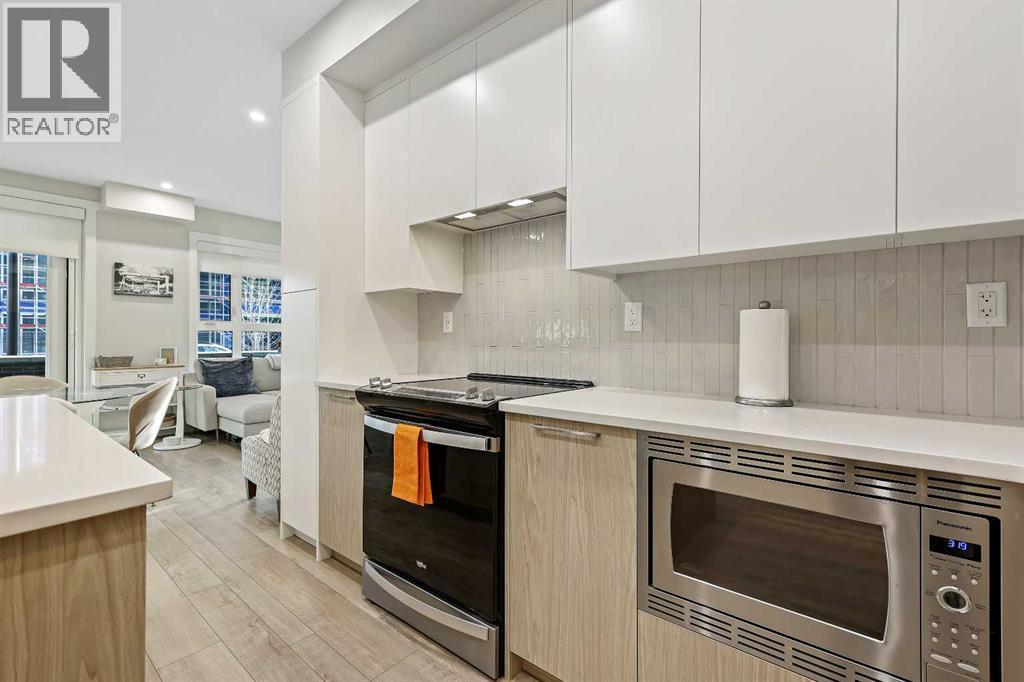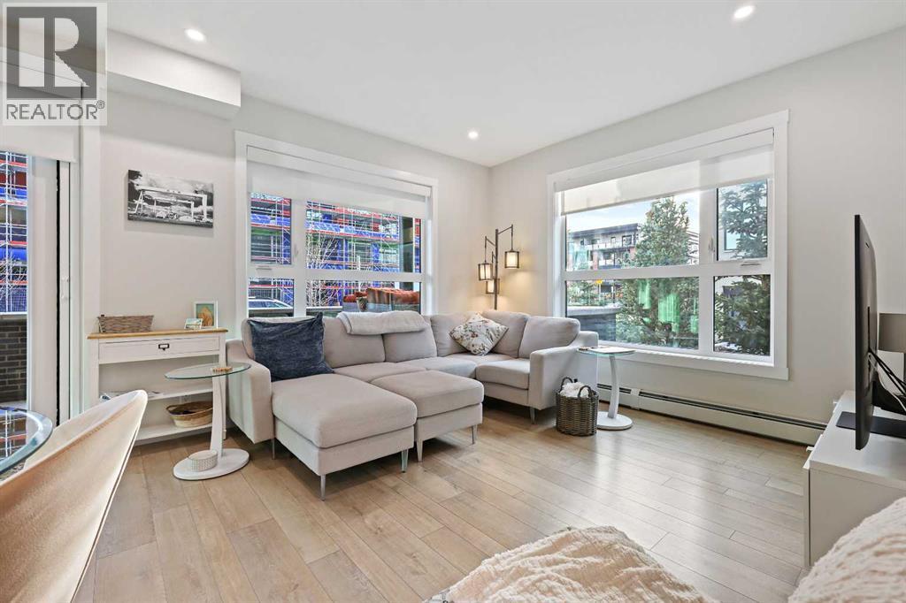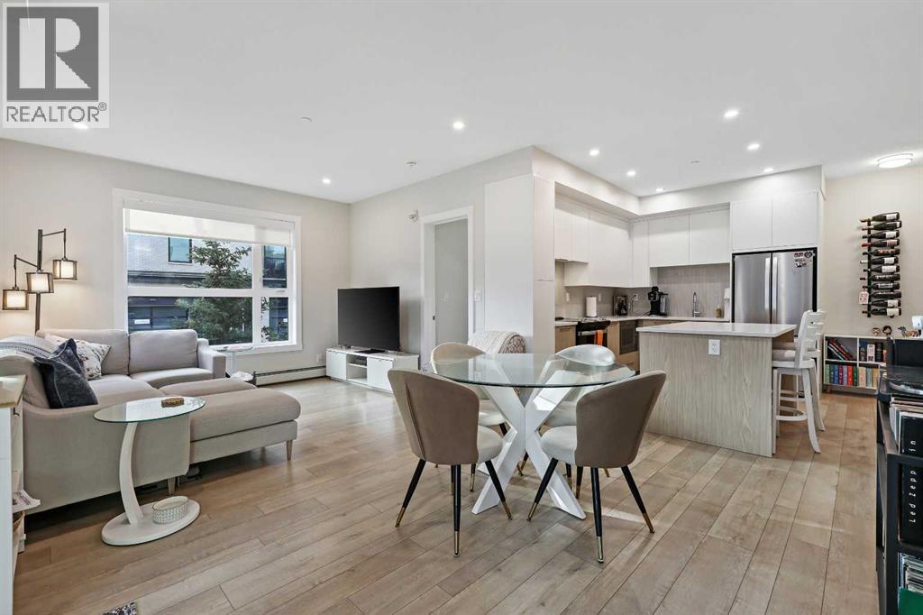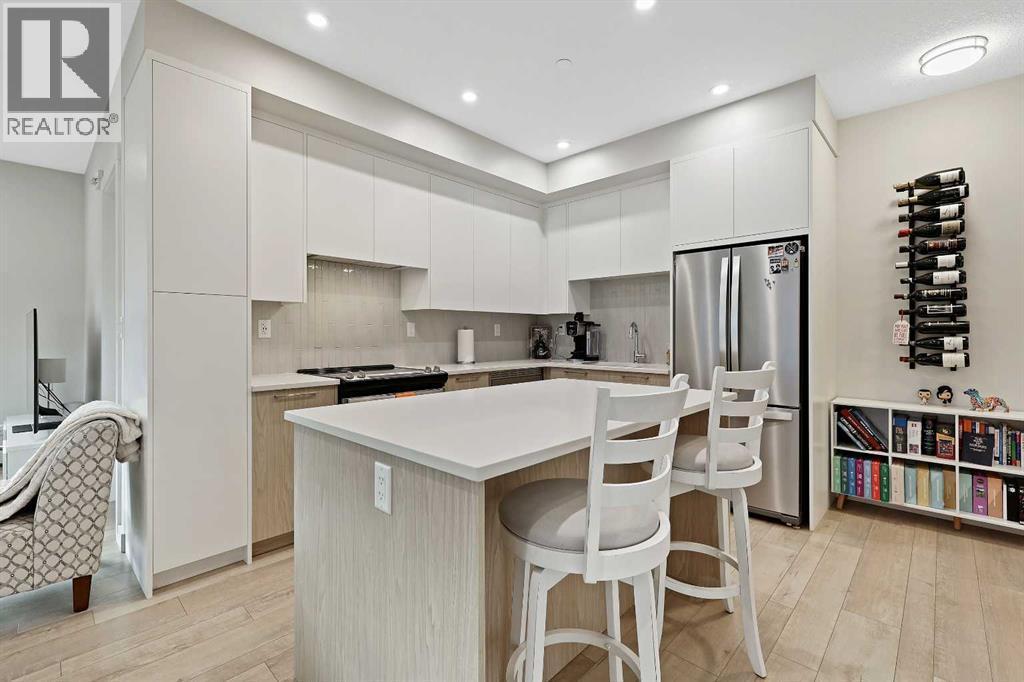 ** OPEN HOUSE SATURDAY, NOVEMBER 15 FROM 1:00PM - 4:00PM **Welcome to Capella in Calgary’s University District! This beautiful main-floor condo perfectly combines modern style, comfort, and convenience in one of the city’s most walkable and desirable communities. Offering nearly 1,000 sq. ft. of bright, open living space, this two-bedroom, two-bathroom home provides an abundance of natural light thanks to its sunny southern exposure. Step out to your spacious south-facing patio, ideal for entertaining family and friends, or just relaxing and enjoying warm, summer nights.Inside, the inviting open-concept layout features a sleek, contemporary kitchen with quartz countertops, a large island with seating, built-in microwave and hood fan, an electric range, and a pantry for extra storage. The kitchen flows effortlessly into the dining and living areas—perfect for entertaining guests or unwinding after a long day.The spacious primary suite features a 5-piece ensuite, including dual vanities, a walk-in shower, soaker tub and private water closet. This home also comes with a good-size second bedroom, a full public/guest bathroom with a tub/shower combo, and a laundry room with space for shelving complete the well-designed layout. Also included with this home: an in-suite wall air conditioning unit, two upgraded ceiling fans, two titled heated underground parking stalls, two titled storage lockers, and access to the on-site fitness center. Enjoy the very best of the University District lifestyle—steps from parks, walking paths, Market Mall, U of C, Alberta Children’s and Foothills Hospitals, and local favourites like OEB Breakfast Co., Village Ice Cream, Monogram Coffee, The Canadian Brewhouse, Save-On-Foods plus so much more! Whether you are downsizing, investing, or seeking a contemporary, low-maintenance home in a thriving community, this home is ready to welcome you! (id:6769)
