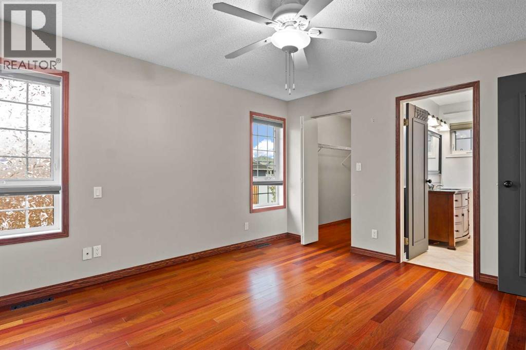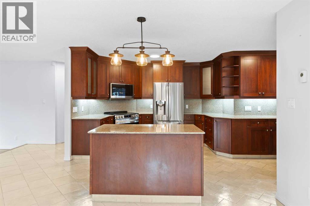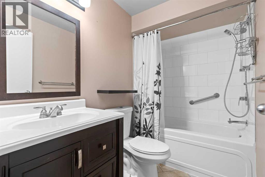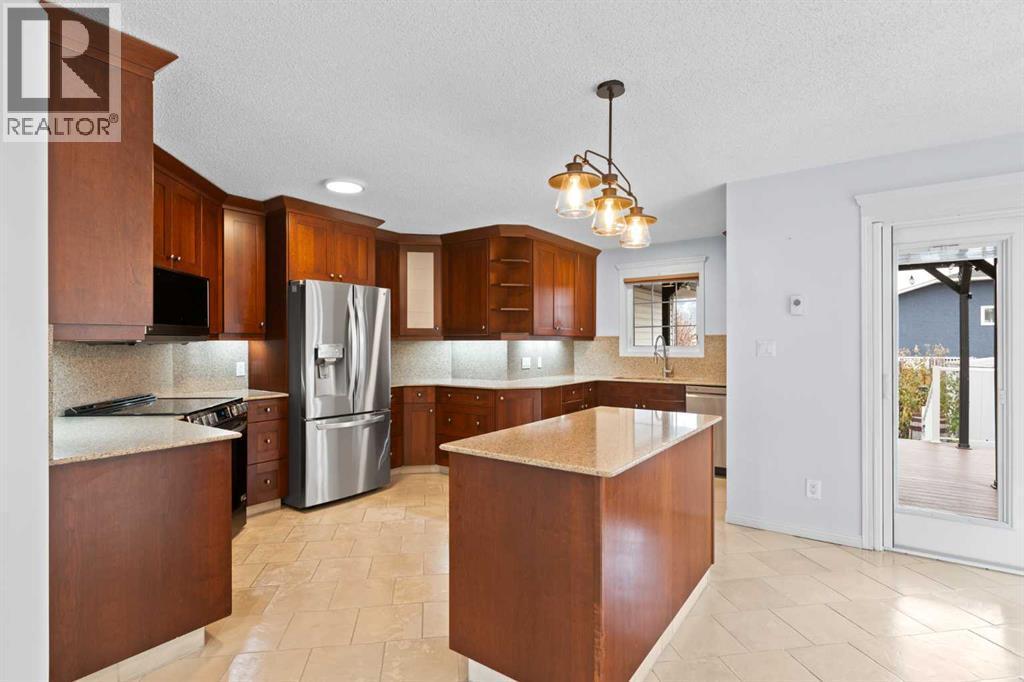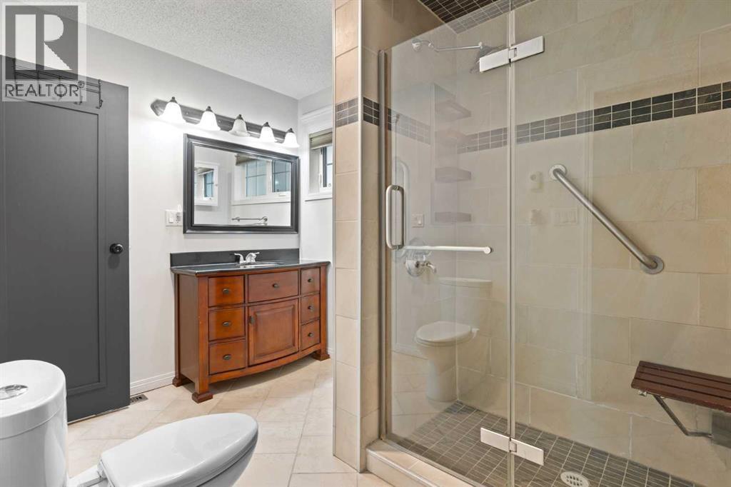 This beautiful and spacious bungalow is within walking distance to Joe Clark School, Highwood High School, Sunshine Lake, Emerson Lake, and the Happy Trails. It has two bedrooms on the main floor and two bedrooms in the fully finished basement, both with walk-in closets. The kitchen, dining room and living room are all open and bright, and the dining room opens onto a covered east facing deck. The kitchen is high quality and has a lot of cabinets, counter space, under cabinet lighting, granite counters and a large island. Flooring in the kitchen, halls, laundry room and bathroom are all heated tile, and the step-down living room has hardwood. On the main floor, the third bedroom has been converted to a laundry room but could easily be converted back into a bedroom. There have been several upgrades to this home over the years including a deluxe walk-in tile shower in the 3-piece cheater ensuite, a beautiful built-in Murphy bed in the downstairs family room that is ideal for company, newer vinyl windows, new roof in 2023, trek decking on the front porch and back porch, beautiful landscaping including a patio with fire pit, newer hot water tank, new furnace in 2024, and new stainless steel appliances in the kitchen. Extras included in this home are a hot tub, shed, and water softener. The fully fenced backyard is private with mature landscaping, a big east facing deck with a gas line for your BBQ, and back alley access. Please click the multimedia tab for an interactive virtual 3D tour and floor plans. (id:6769)