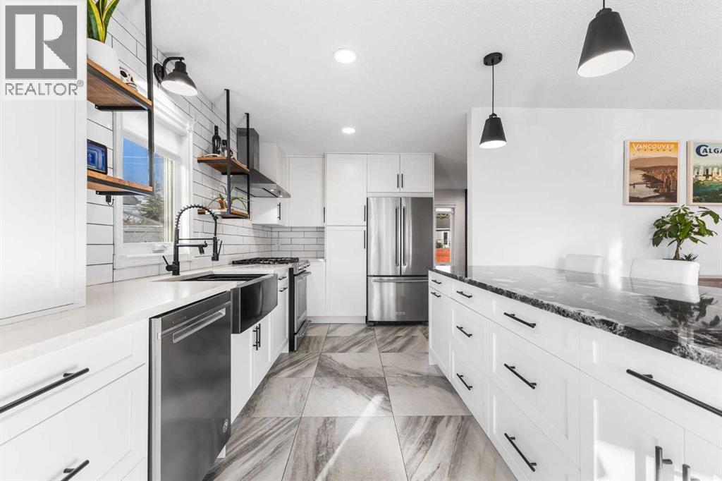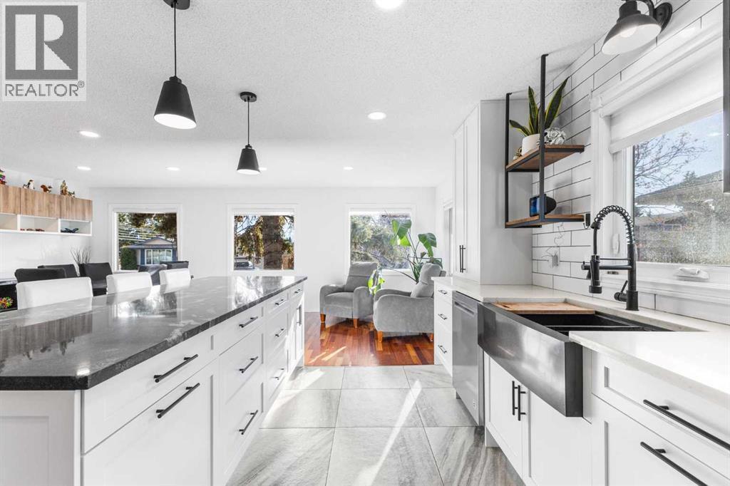 Welcome to Lake Bonavista, Calgary's most coveted four-season lake community, where every day feels like a retreat. Perfectly positioned on a large 6,900 sq ft corner lot with only one direct neighbour, this fully renovated bungalow captures the best of lake living, outdoor recreation, and modern comfort.Inside, over 2,800 sq ft of finished living space blends warmth and sophistication. The renovated kitchen features a reconfigured layout with quartz counters, stainless appliances, and a seamless connection to the spacious dining and living areas anchored by a cozy wood-burning fireplace. Three bedrooms on the main level include a serene primary suite with an updated ensuite and generous closet space.Downstairs, discover a complete lower-level retreat, a wide-open rec room with a custom wet bar, a dedicated office, a large guest bedroom with an egress window, a spa-inspired bathroom with a built-in sauna, and abundant storage. Every inch of this level was thoughtfully redesigned for both relaxation and entertaining.Outside, your front-drive double garage (rare for the street) and side trailer pad offer convenience, while the expansive backyard with mature trees, garden area, and multiple patio zones creates an incredible space for gatherings, from summer pizza nights to winter fires under the stars. Recent upgrades include a new hot water tank (2024), attic insulation, paint inside and out, fence improvements, front and rear patios, and so much more.Beyond the home itself lies the true magic of Lake Bonavista. Exclusive lake access for swimming, skating, fishing, and year-round recreation, all within walking distance. Enjoy the ridge trails for morning runs, off-leash dog walks, and easy access to Fish Creek Park. Schools, Southcentre Mall, and every daily convenience are minutes away, while quick routes via Anderson, Canyon Meadows BV, and Deerfoot keep you connected to the entire city.This property combines the rare charm of a classic Lake Bonavista bungalow with the function, comfort, and style of a modern family home, all in one of Calgary's most prestigious, safest, and friendliest communities. (id:6769)