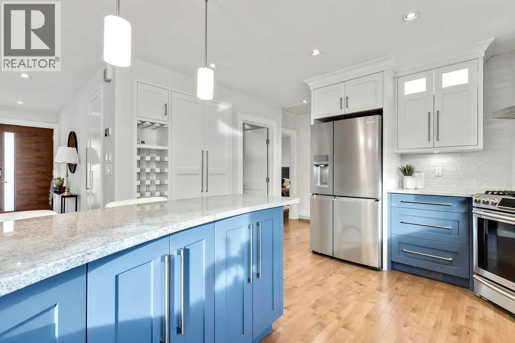 This stunning, fully renovated bungalow offers exceptional quality and style throughout. Taken down to the studs in 2018, the home features updated electrical, plumbing, roofing, windows, furnace, and so much more—every detail has been thoughtfully upgraded.The gorgeous chef-inspired kitchen showcases a massive granite peninsula, tons of custom cabintry, sleek stainless steel appliances, and a built-in tap system ready for kombucha, beer, or cider. The spacious primary bedroom includes a generous walk-through closet that leads to an impressive cheater ensuite/main bath, complete with a deep soaker tub, commercial-grade steam shower, double sinks, and granite countertops. Hot water on demand ensures you’ll never run out.A second bedroom is perfect for children, guests, or a home office. Custom built-in storage can be found throughout the home, adding convenience and function to every space. The open-concept living and dining areas flow seamlessly from the kitchen and feature a beautiful gas fireplace—ideal for cozy evenings. Comfort is guaranteed year-round with a high-efficiency furnace, upgraded insulation, and central A/C.The fully renovated lower level offers a massive open layout, another elegant gas fireplace, a three-piece bathroom, and abundant custom storage, with ample space to add an additional bedroom if desired.The insulated, drywalled double detached garage is equipped with its own gas heater, keeping it warm in every season. Outside, the expansive south facing backyard features exposed aggregate walkways, a large patio, and plenty of room for kids and pets to enjoy.Situated on a quiet street in desirable West Haysboro, this home offers quick access to the Glenmore Reservoir and pathways, excellent schools, parks, Glenmore Landing shops and restaurants, Rockyview Hospital, and a nearby dog park just steps away. This location has great access to roads in every direction and also close to transit.Book your private showing with your favourite REALTOR®—you’re sure to fall in love! (id:6769)
