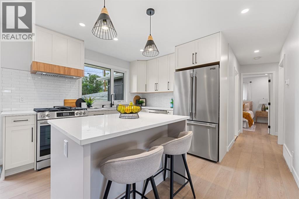 Welcome to your DREAM HOME in Acadia! This stunning bungalow boasts over 2279 square feet of living space has been stripped down to the studs and completely rebuilt with precision, care, and style. Every detail is brand new and never lived in, offering the best of inner city living combined with high-end finishes. Best part - you’ll find a brand-new 2 bedroom legal suite in the basement, complete with its own heating system, soundproofing, and a full custom kitchen. Perfect for hosting guests, extended family living or generating additional income. The curb appeal is undeniable. With all new Hardie siding, fresh parging, new roof, windows, exterior doors, and immaculate landscaping with concrete walkways, new stairs, fresh sod, and sleek fencing. You’ll love relaxing on either of the two new decks, one in front for morning coffee and one in the back for evening gatherings. Step inside and be wowed by the open, airy layout that’s both functional and beautiful. The custom kitchen is the heart of the home, with a built-in bench dining area, high-end finishes, and thoughtful design for everyday living and entertaining. The living room space feature’s a stunning Napoleon fireplace making it warm and inviting year-round. The primary bedroom boasts a 150 sq ft addition featuring a huge walk-in closet and a luxurious Spa-like ensuite complete with freestanding tub, double vanity and a Steam shower. Another 2 larger bedrooms and full bathroom complete the main level. And in the hallway you’ll find separate laundry and a main floor bathroom featuring stylish fixtures and quality craftsmanship. Heading downstairs you have a completely separate entrance to the suite for added privacy. The finishing is just as nice as the main floor, with a custom kitchen space, separate laundry and another Napoleon fireplace. Additional large windows add an abundance of natural light to the space. Completed with another two bedrooms, full bathroom and office nook, you’ll be impressed. This home has been completely transformed and offers excellent efficiency with upgraded R-50 attic insulation, a new high-efficiency hot water tank, new AC, new HRV, 200-amp electrical service with a brand-new panel, and all-new PEX plumbing throughout. The oversized garage is a standout, with two windows, a new concrete floor, insulation, drywall, fresh paint, and a gas line for a heater. Beside the garage is a new concrete parking pad with RV gate for storing your toys. As well, no neighbours directly behind you gives you extra privacy! Nestled in one of Calgary’s most high demand neighbourhoods, where you’re close to parks, schools, shopping, and transit, with easy access to major routes. This rebuild offers the peace of mind and style you’ve been searching for. Everything is new. Everything is ready. All that’s missing is you! (id:6769)