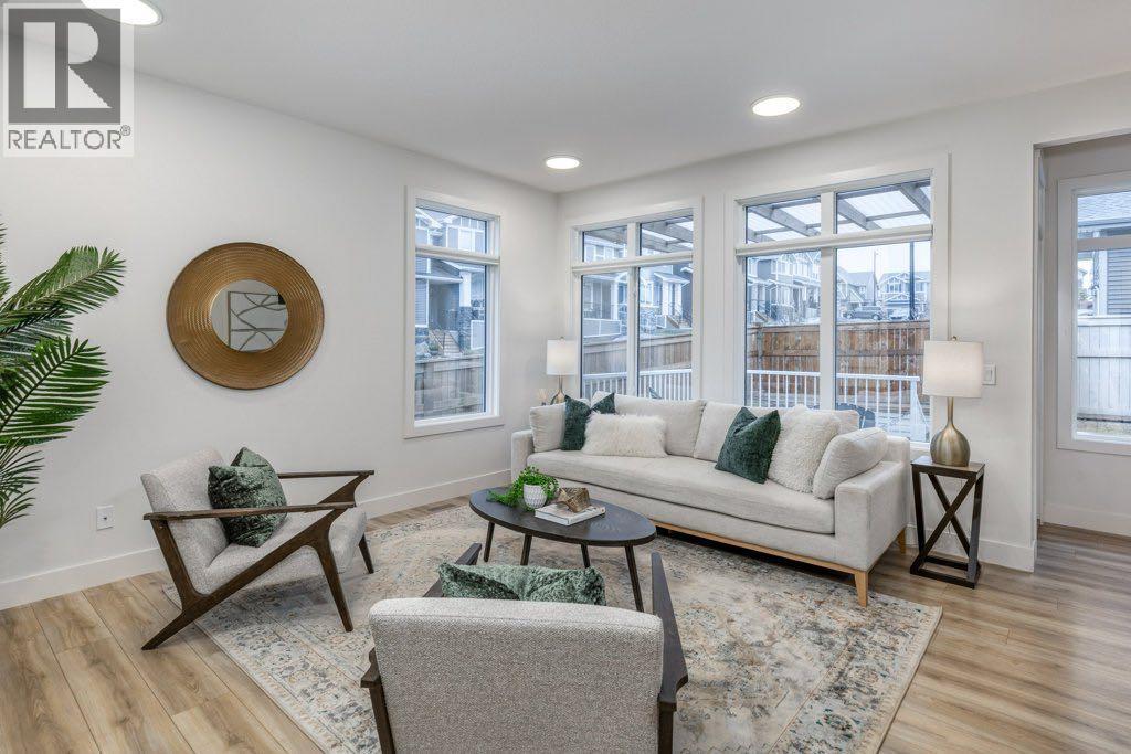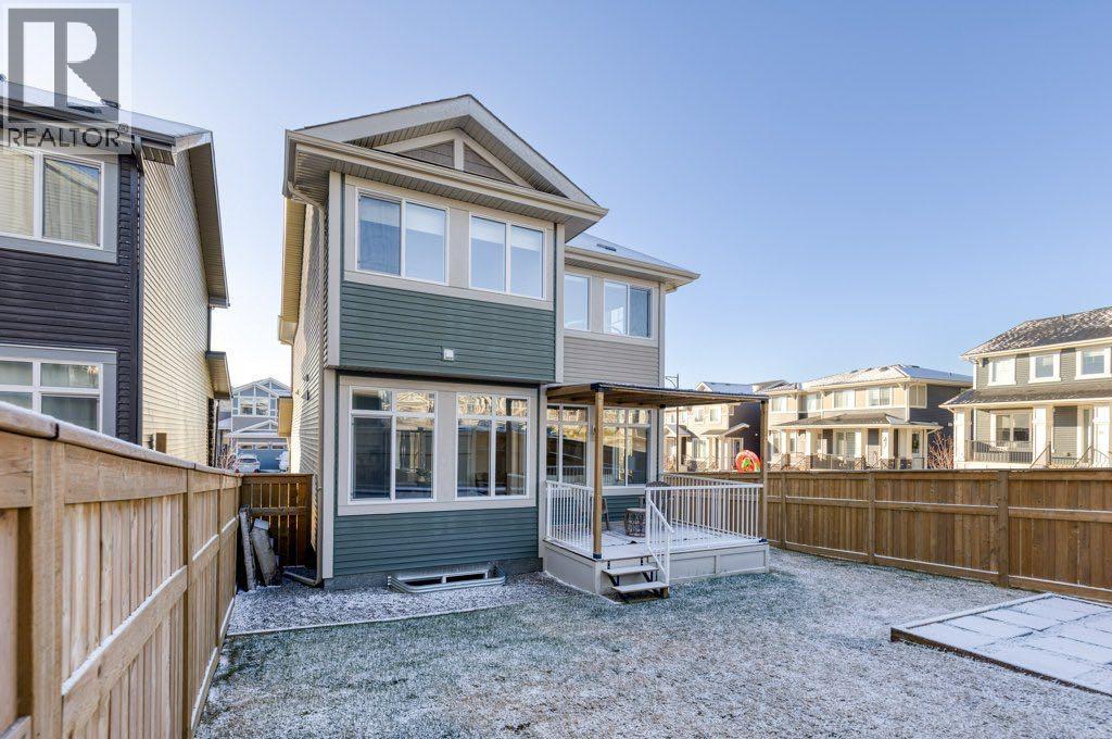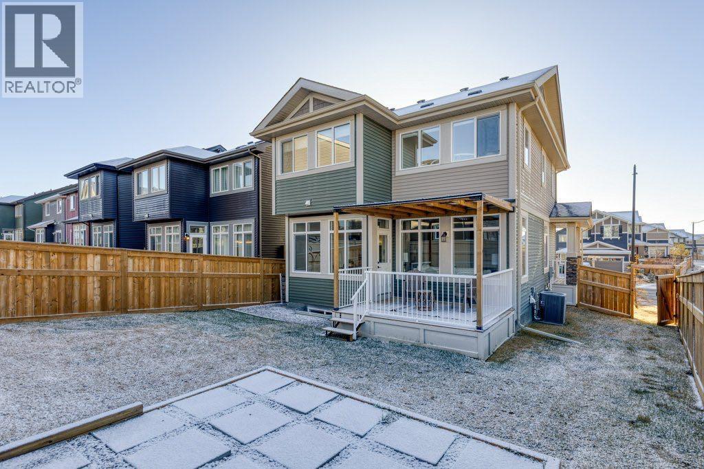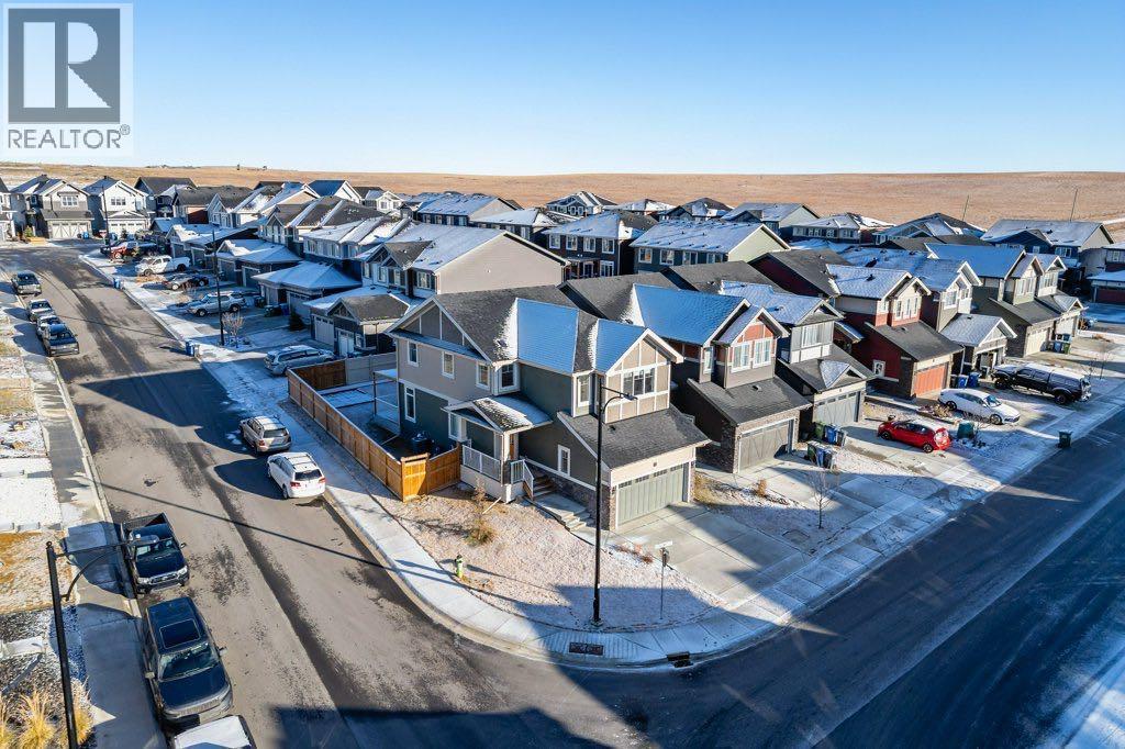 Set on a lovely corner lot in one of Cochrane’s most cherished family communities, this beautifully appointed two-storey home offers over 1,900 sq. ft. of thoughtfully designed living space. Built in 2022, it blends modern comfort with an inviting warmth that makes every day feel special.Step inside and discover a bright, open main floor crafted for connection. A dedicated den or office provides the perfect space for work or quiet focus, while the living room invites you to unwind beside the fireplace. Motorized Lutron blinds add a touch of luxury and effortless comfort. The kitchen is both elegant and functional, featuring stainless steel appliances, quartz countertops throughout, and plenty of room to gather around the island.Upstairs, a spacious bonus room offers even more room for family time. The primary suite feels like a private retreat with dual closets, motorized blinds, and a serene ensuite complete with dual vanities, a separate soaker tub, and shower. Two additional bedrooms, a full bathroom, and the convenience of second-floor laundry complete this well-designed level.Outside, the fully fenced and landscaped backyard is ready for memories —offering comfortable shade on warm summer evenings and a lovely deck for morning coffee or relaxed weekend gatherings. With an attached double garage and an unfinished basement offering room to grow, this home fits seamlessly with both today’s needs and tomorrow’s plans.Families will love the unbeatable location—just a short walk to the playground, scenic walking and biking paths, and RancheView School (K–8). Sunset Ridge is known for its friendly atmosphere, beautiful views, and tight-knit community feel. This is a place where neighbours wave, kids play freely, and life moves at just the right pace. (id:6769)
