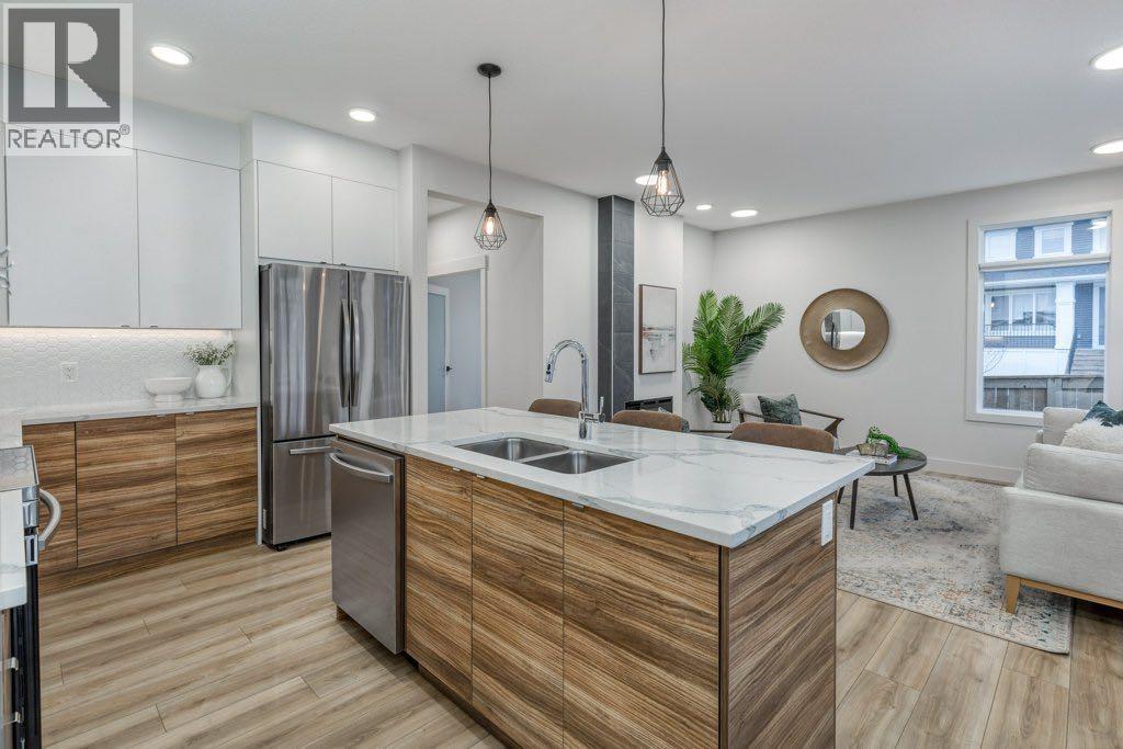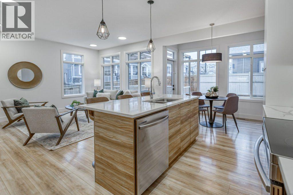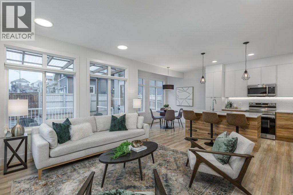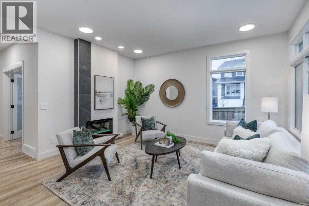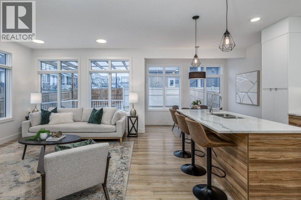 Set on a lovely corner lot in one of Cochrane’s most cherished family communities, this beautifully appointed two-storey home offers over 1,900 sq. ft. of thoughtfully designed living space. Built in 2022, it blends modern comfort with an inviting warmth that makes every day feel special.Step inside and discover a bright, open main floor crafted for connection. A dedicated den or office provides the perfect space for work or quiet focus, while the living room invites you to unwind beside the fireplace. Motorized Lutron blinds add a touch of luxury and effortless comfort. The kitchen is both elegant and functional, featuring stainless steel appliances, quartz countertops throughout, and plenty of room to gather around the island.Upstairs, a spacious bonus room offers even more room for family time. The primary suite feels like a private retreat with dual closets, motorized blinds, and a serene ensuite complete with dual vanities, a separate soaker tub, and shower. Two additional bedrooms, a full bathroom, and the convenience of second-floor laundry complete this well-designed level.Outside, the fully fenced and landscaped backyard is ready for memories —offering comfortable shade on warm summer evenings and a lovely deck for morning coffee or relaxed weekend gatherings. With an attached double garage and an unfinished basement offering room to grow, this home fits seamlessly with both today’s needs and tomorrow’s plans.Families will love the unbeatable location—just a short walk to the playground, scenic walking and biking paths, and RancheView School (K–8). Sunset Ridge is known for its friendly atmosphere, beautiful views, and tight-knit community feel. This is a place where neighbours wave, kids play freely, and life moves at just the right pace. (id:6769)