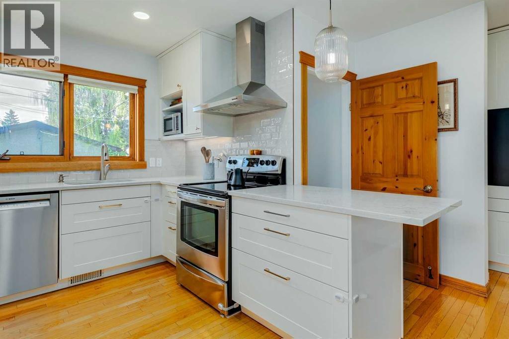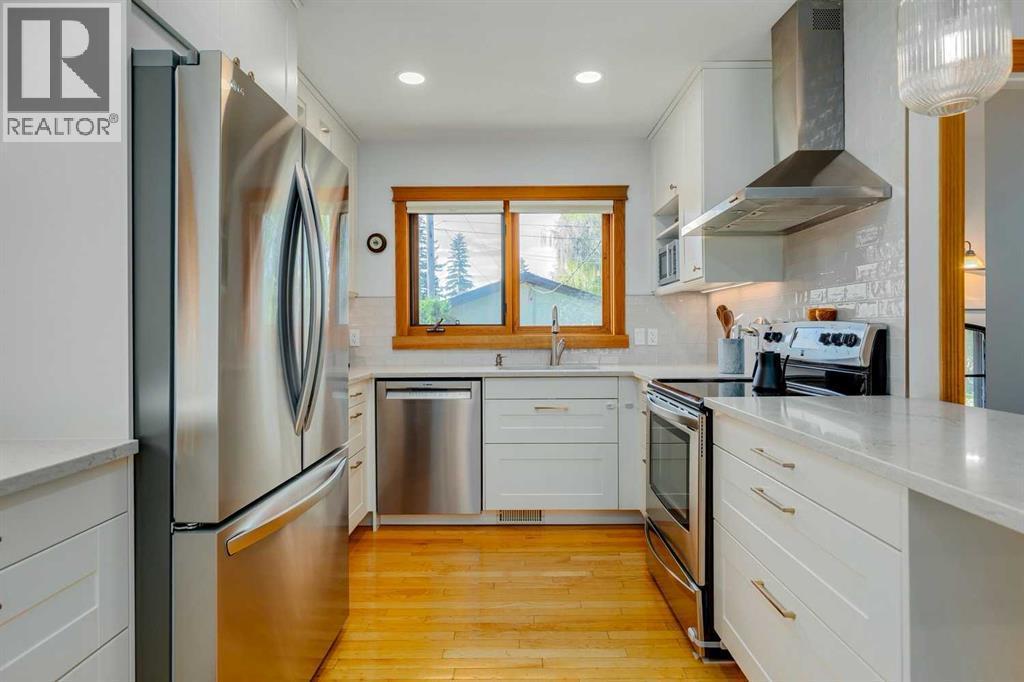 An Urban Oasis in Southwood. Discover a beautifully updated bungalow in the established community of Southwood, offering over 1,800 sq ft of thoughtfully developed living space. The main level features warm hardwood floors and an open-concept living and dining room that flows into the tastefully updated kitchen, complete with sleek quartz countertops, crisp white cabinetry, and a suite of stainless steel appliances. Two main-floor bedrooms and a four-piece bath, along with a private primary bedroom with a three-piece ensuite and soaker tub, provide peaceful retreats.The versatile lower level includes a large recreation room, a third bedroom (ideal for a home office), a three-piece bath, and dedicated laundry and storage. Enjoy a sunny south-facing backyard with a newly installed covered pergola and a single detached garage. This home has been meticulously maintained, with key recent updates including a new sewer line (2021), a newer furnace, hot water tank, and new roof (2024). Located close to parks, schools, and shopping, with easy access to the downtown core, this is a home that offers comfort and convenience. (id:6769)