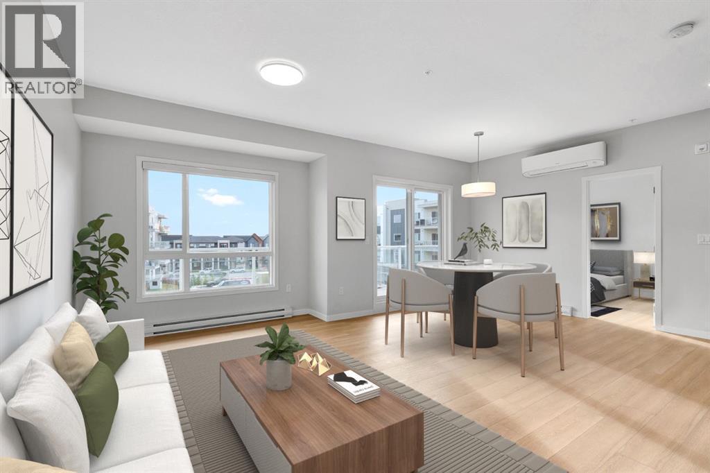 New on the Market in Seton! Offered at $415,000MLS A2270273 2302, 220 Seton Grove SEStep into Seton Summit, one of Calgary’s most sought-after communities, crafted by Cedarglen Living.  This stunning 3-bedroom, 2-bathroom home offers 1,189 square feet of thoughtfully designed living space (1,269 sq.ft. builder size) with a bright, open-concept layout, 9’ knockdown ceilings, and luxury vinyl plank flooring throughout.Bathed in southern light, this 3rd-floor unit features a spacious balcony spanning over 20 feet in length—perfect for entertaining or unwinding with a view. The kitchen is nothing short of spectacular, with floor-to-ceiling cabinetry, quartz countertops, an undermount sink, stainless steel appliances, upgraded lighting, a walk-in pantry and an oversized island that flows seamlessly into the living and dining areas.  The primary retreat is a true sanctuary, offering a walk-in closet, and a 4 piece ensuite with dual vanities and a stand-up shower. Two additional bedrooms provide flexibility for family, guests, or a home office, while the nearby laundry/storage room and second full bath complete this highly functional layout.  Thoughtful details include clear glass balcony railings, triple pane windows and air conditioning to ensure comfort year-round.  Beyond your door, the lifestyle is unbeatable. Enjoy walking access to the world’s largest YMCA, the Seton HOA, shops, restaurants, cafes, and the South Health Campus Hospital. Additional amenities include: low condo fees, plenty of visitor parking, separate storage and dedicated bike storage. Pet-friendly (up to two 35KG pets), with underground titled parking and roller blinds, this home blends convenience and everyday practicality into one irresistible package! (id:6769)