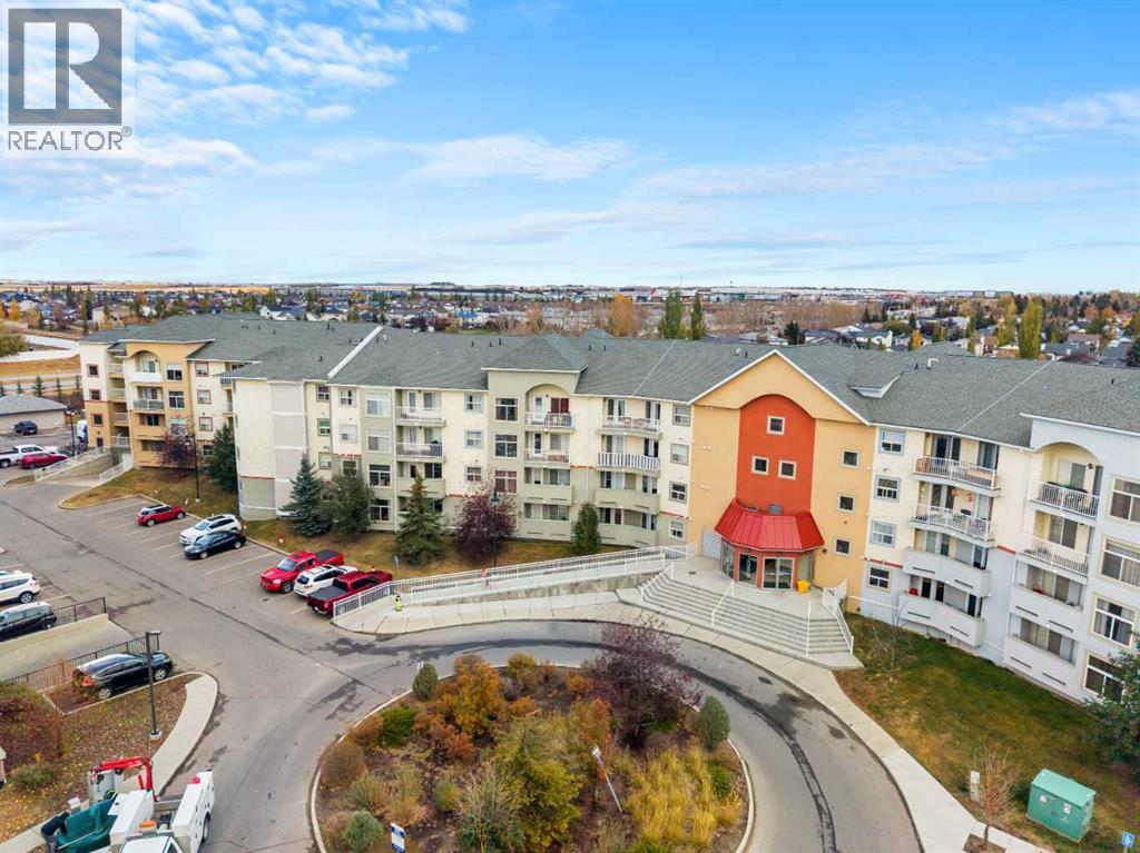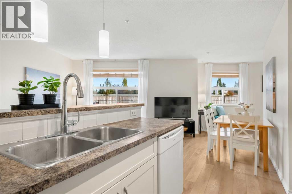 Welcome to #2121–700 Willowbrook Road, located in the vibrant community of Willowbrook, Airdrie! Here you will discover effortless living in this bright and beautifully updated 2-bedroom 2-bath condo which is a perfect blend of comfort, convenience and value. As you enter, you’ll be impressed by the abundance of natural light streaming in from the SOUTH-EAST EXPOSURE. Stylish new vinyl flooring (2024) leads you through a welcoming front entrance, complete with a spacious coat closet featuring built-in shelving. Stepping into the kitchen you will love the open-concept design with generous storage, a pantry, a NEW DISHWASHER (2024) and a large island with room for bar stools, creating the ideal setting for casual meals or entertaining. Just off the kitchen is space for a formal dining table, a RARE feature in apartment living. The living room is bright and inviting, with plenty of room for friends, family and nights in. This versatile living space offers many ways to layout your furniture, with the option to mount your TV on the wall with swivel to be visible from the sofa and the kitchen. A notable feature is that the entire unit has been FRESHLY PAINTED (October 2025) in a beautiful off-white tone that enhances the natural light. The primary bedroom is a true retreat. It features a large WALK-IN CLOSET with built-in shelves, plus an additional closet with bi-fold doors that can serve as extra storage or linen space. The four-piece ensuite bathroom includes a new toilet (2025). The room easily accommodates a king-sized bed with plenty of space to spare and offers a large window overlooking the private balcony. A SECONDARY BEDROOM with a large window provides versatility and can serve as a guest room, office or fitness space. A second three-piece bathroom with a stand-up shower, new toilet (2025) and convenient IN-SUITE LAUNDRY complete this well-designed home. For added peace of mind, the BOILER SYSTEM for the IN-FLOOR HEATING was REPLACED in (2024). Stay warm in th e winter months with your TITLED, UNDERGROUND PARKING STALL. There is also an abundance of outdoor VISITOR PARKING for your friends and family to visit. The condo fees conveniently include everything except electricity (covering heat, water, landscaping, snow removal, professional management & more). Living in Willowbrook means having the best of both worlds - easy access to all of your essential amenities nearby including Main Street, Shoppers, Sobeys, Original Joes, Good Earth and more. From your building, you can also step right into the extensive walking paths of NOSE CREEK PARK to enjoy all year round, ideal for pet owners. A standout feature is the complex’s FLEXIBLE PET FRIENDLY POLICIES, offering peace of mind for pet owners. Whether you're a first-time home buyer, downsizing, or an investor searching for a fantastic move-in ready home, you have found it here. This apartment offers exceptional value with its recent updates, thoughtful layout and inclusive condo fees. Book today! (id:6769)