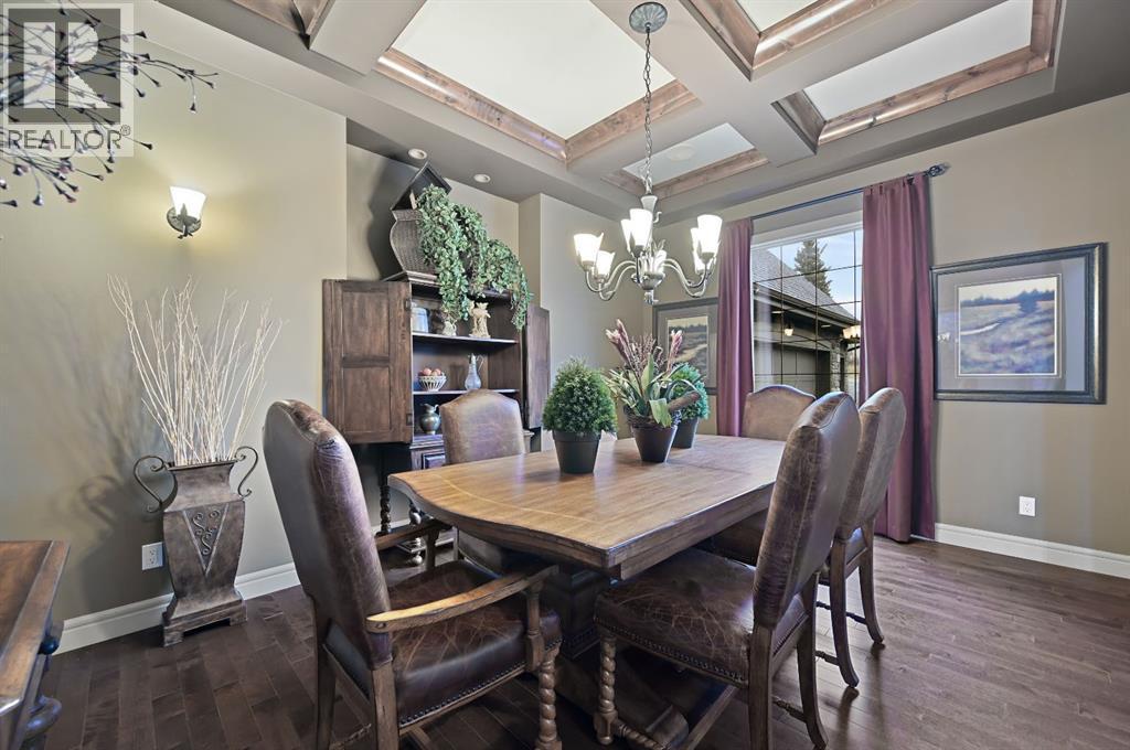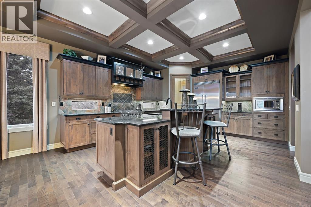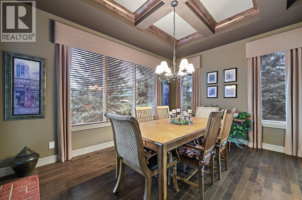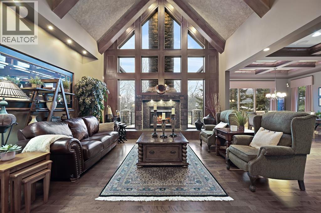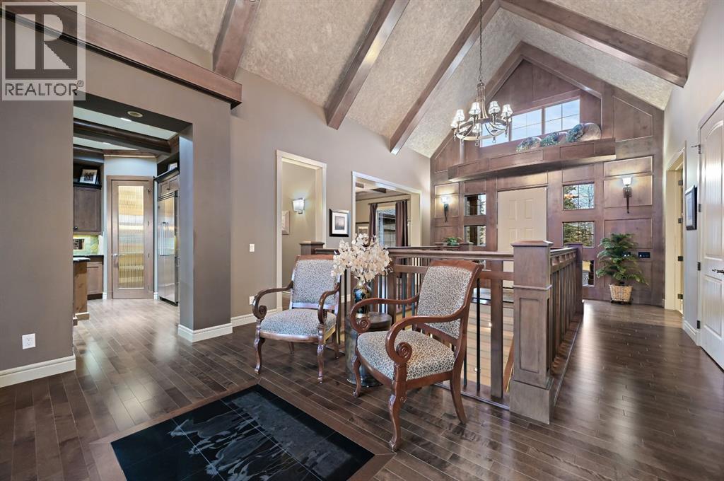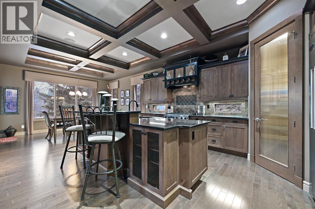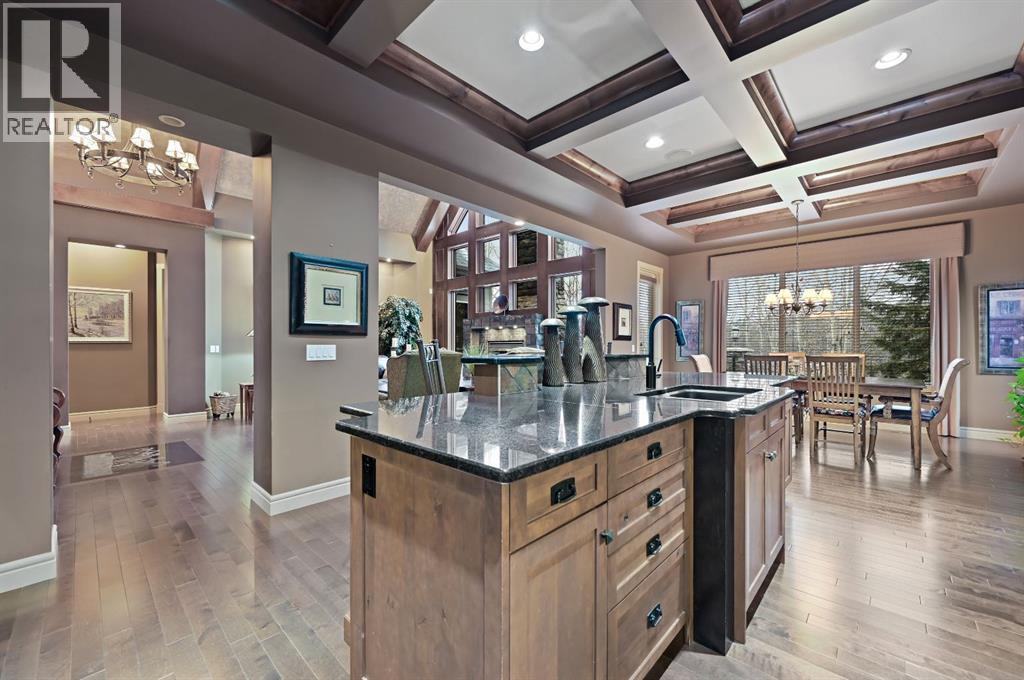 Beautiful Executive Walkout Bungalow with West Back Yard onto the prestigious Priddis Greens Golf Course! This former Show home features Extensive upgrades on the exterior with Stone Features that just say Wow! Step into a large foyer with High Vaulted ceilings accented by Beams and custom paint on the ceiling! The view to the feature back wall is amazing with decorative wood features, a warm fireplace and windows accenting this high wall and ceiling. The main floor office is a large room with extensive built ins and windows that look out over the large Front Yard. The dining room with coffered ceilings allows for family gatherings in comfort! The kitchen ( also with decorative coffered ceilings) features Knotty Alder Cabinets, upgraded Stainless Steel Appliances, 6 burner Gas Stove and a big walk in pantry. A gorgeous Island and Granite Countertops accent the large kitchen space. The large and welcoming nook offers an Exceptional Golf course view. Enjoy the Creative Tile Detail and the Rich Hardwood Flooring that warms the main floor! The Beautifully appointed large primary bedroom offers Tranquil Views and direct access to west facing deck. The luxurious ensuite has 2 vanities, a steam shower, Jet Tub and leads to a big walk-in closet. The fully finished walkout basement has the comfort of in floor heating, 3 additional bedrooms, a large wet bar with attached granite games table, Home Theatre area as well as a games room perfect for a pool table or poker area. Walk out to the covered patio and sit to enjoy nature right in your backyard. Roomy Main floor laundry and mudroom leads to the fully finished oversized triple garage offering underfloor heating and a separated stall for the special car to be away from the day to day in and out traffic! You need to see this home to fully appreciate all the extras and the fantastic location! (id:6769)