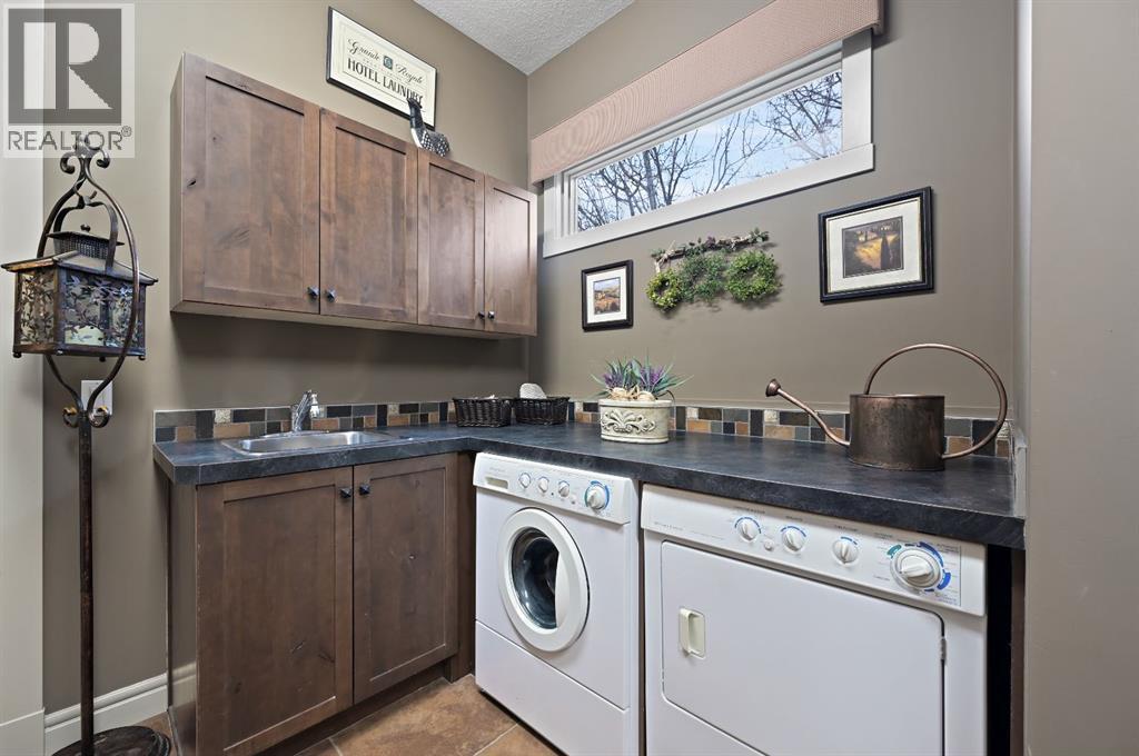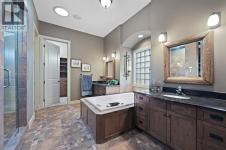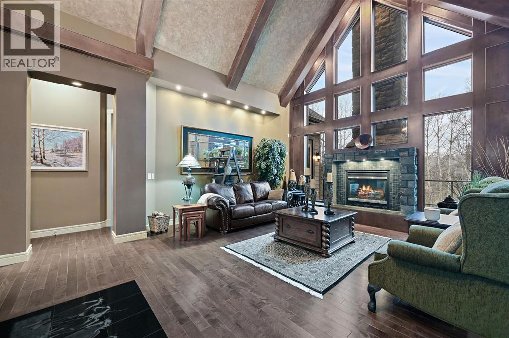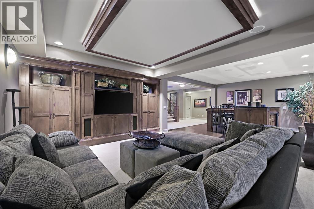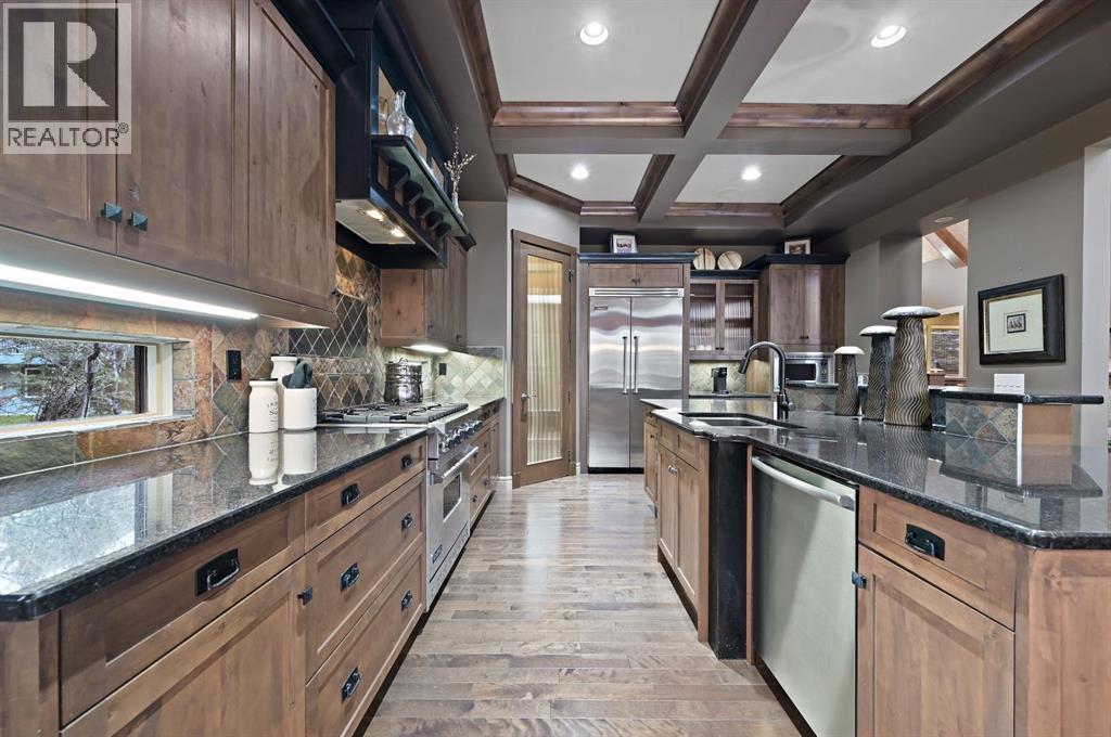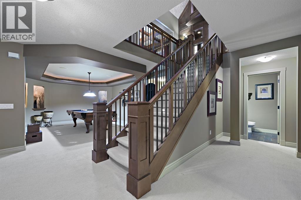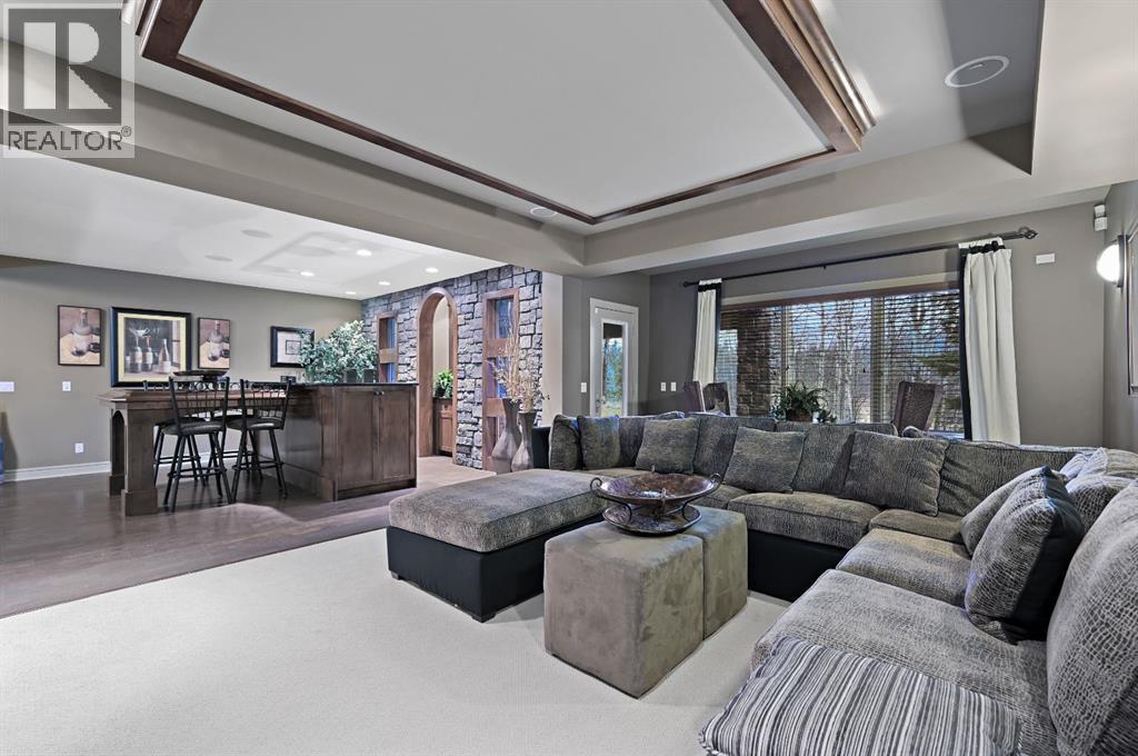 Beautiful Executive Walkout Bungalow with West Back Yard onto the prestigious Priddis Greens Golf Course! This former Show home features Extensive upgrades on the exterior with Stone Features that just say Wow! Step into a large foyer with High Vaulted ceilings accented by Beams and custom paint on the ceiling! The view to the feature back wall is amazing with decorative wood features, a warm fireplace and windows accenting this high wall and ceiling. The main floor office is a large room with extensive built ins and windows that look out over the large Front Yard. The dining room with coffered ceilings allows for family gatherings in comfort! The kitchen ( also with decorative coffered ceilings) features Knotty Alder Cabinets, upgraded Stainless Steel Appliances, 6 burner Gas Stove and a big walk in pantry. A gorgeous Island and Granite Countertops accent the large kitchen space. The large and welcoming nook offers an Exceptional Golf course view. Enjoy the Creative Tile Detail and the Rich Hardwood Flooring that warms the main floor! The Beautifully appointed large primary bedroom offers Tranquil Views and direct access to west facing deck. The luxurious ensuite has 2 vanities, a steam shower, Jet Tub and leads to a big walk-in closet. The fully finished walkout basement has the comfort of in floor heating, 3 additional bedrooms, a large wet bar with attached granite games table, Home Theatre area as well as a games room perfect for a pool table or poker area. Walk out to the covered patio and sit to enjoy nature right in your backyard. Roomy Main floor laundry and mudroom leads to the fully finished oversized triple garage offering underfloor heating and a separated stall for the special car to be away from the day to day in and out traffic! You need to see this home to fully appreciate all the extras and the fantastic location! (id:6769)