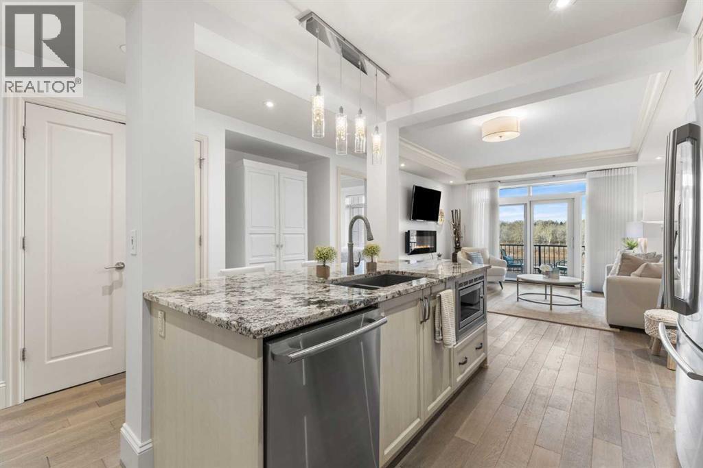 Welcome to Champagne, one of Calgary’s most architecturally striking and prestigious riverfront developments, renowned for its solid concrete construction, timeless European styling, and exceptionally quiet interiors. This beautifully updated ground-level residence with brand new patio door is one of the rare units on the open, river-facing line, offering peaceful views, unmatched privacy, and direct access to the Bow River and pathway system.Inside, the home feels calm, bright, and inviting. Large windows frame lush greenery and gentle river views, while the open-concept design creates a seamless flow between the living area, dining space, and gourmet kitchen. Outfitted with granite countertops, built-in appliances, a gas range, and an elegant island, the kitchen is perfect for cooking, hosting, or simply enjoying a quiet evening at home.Your private ground-level patio is truly special, ideal for morning coffee, stepping directly onto the pathway, or taking in the quiet beauty of this riverside setting. This level of indoor-outdoor living is exceptionally rare in luxury concrete buildings and highly coveted by those who value both convenience and nature.Thoughtful recent upgrades enhance the home’s comfort and style, including professional paint, new modern light fixtures, upgraded bedroom flooring, a brand-new full-size washer and dryer, a new built-in microwave, and tasteful bathroom updates. Every space feels refreshed, cared for, and move-in ready.The spacious bedroom offers peaceful comfort, while the oversized bathroom provides a spa-inspired retreat. Central air conditioning ensures ideal temperatures year-round.Champagne is meticulously maintained and offers an elegant lobby, secure underground titled parking (stall #103), a titled storage locker (#115), two elevators, a car wash bay, and beautifully kept common areas. The $584.97/month condo fee includes heat, professional management, reserve fund contributions, snow removal, trash, building insurance , and common-area maintenance, offering complete peace of mind.Set in the heart of Quarry Park, the location is exceptional. You’re steps from Carburn Park, Sue Higgins Off-Leash Dog Park, grocery stores, restaurants, cafés, fitness centres, the YMCA, professional services, green spaces, and, of course, the river. The community is walkable, quiet, and thoughtfully designed, with quick access to major routes for effortless commuting.This home has been a genuine sanctuary for the owner, a place of healing, comfort, and connection to nature. Letting it go is emotional, and it truly is the sale of a very special property. (id:6769)