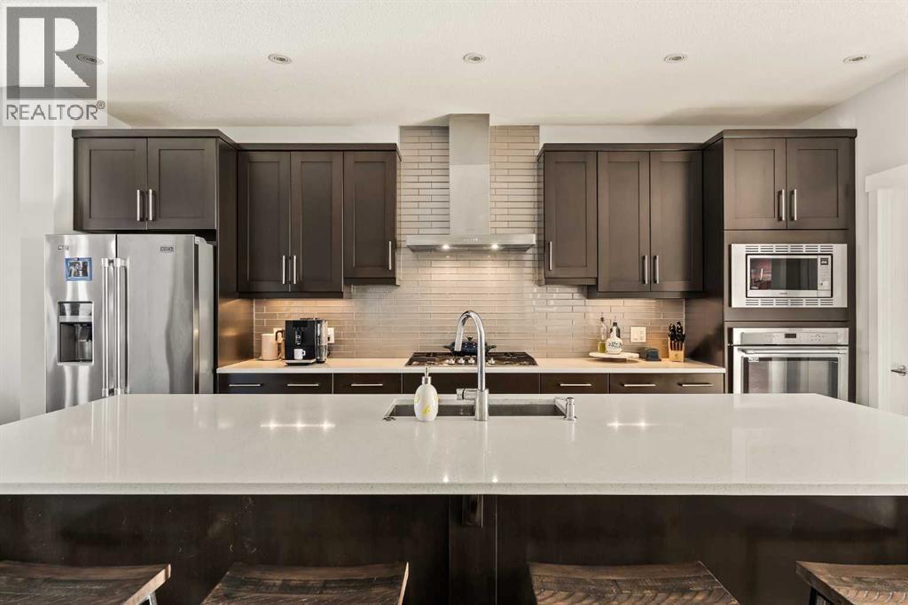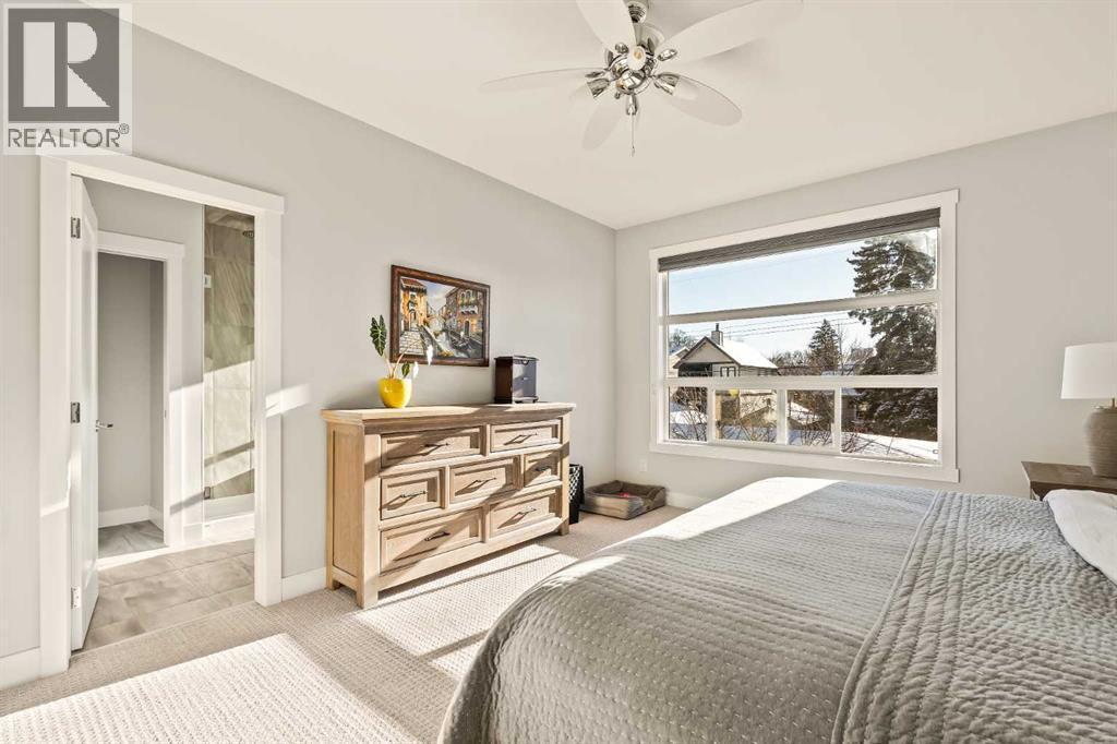 This beautifully maintained home is completely move-in ready and just minutes from Confederation Park, exceptional schools, and a quick commute to the downtown core. Ideally located in Mount Pleasant, this 4-bedroom, 3.5-bathroom home offers 2 living areas, a dedicated office, and the perfect blend of style and functionality—ideal for a young couple, growing family, or professional looking for comfort and convenience. Situated on a fully landscaped, south-facing lot, this meticulously updated property features nearly 3,000 sq. ft. of developed living space over 3 levels and modern upgrades throughout. The main level offers an open-concept layout with 9-foot ceilings and rich hardwood flooring spanning the entire living area. Expansive windows on three sides fill the home with natural light, creating a bright and inviting atmosphere from morning to evening. The timeless kitchen features shaker cabinetry, classic subway tile, and a full suite of stainless-steel appliances including a gas cooktop, chimney hood fan, built-in wall oven and microwave, and a French-door fridge. A large corner pantry and an impressive 10-foot island with seating for five - complete with a built-in beverage cooler, make this kitchen as functional as it is beautiful. The open layout connects seamlessly to both the front dining room, which accommodates a full-sized dining set, and the rear living room with a gas fireplace and custom built-in shelving overlooking the backyard. Completing the main level is a welcoming front foyer with seating and storage, a 2-piece powder room, and a rear mudroom. Upstairs, the spacious primary suite (measuring 16.5' x 13.5') overlooks the backyard and features a spa-inspired ensuite with a fully tiled shower and 10 mm glass enclosure, a deep soaker tub, dual sinks, and a walk-in closet with custom storage. Two additional bedrooms, each with ample closet space, a 4-piece bathroom, and a generous upper-level laundry room complete the second floor. The fully devel oped basement offers nearly 1,000 sq. ft. of additional living space, including a dedicated office (perfect for remote work, music, or studio use), a fourth bedroom, a full bathroom, and a bright recreation/media area thanks to a full-width window. A wet bar and flexible open space make this level ideal for a home gym, playroom, or entertainment zone. The south-facing backyard offers abundant green space, perfect for kids, pets, gardening, or entertaining. The lower patio is ideal for BBQs and summer gatherings, while the double garage keeps vehicles and valuables secure year-round. Pride of ownership is evident throughout, and the home is fully move-in ready with countless functional upgrades, including central air conditioning and custom Hunter Douglas window treatments. Located in highly sought-after Mount Pleasant, this home offers the perfect balance of quiet residential living with immediate access to parks, schools, shopping, and transit in one of Calgary’s most desirable communities. (id:6769)