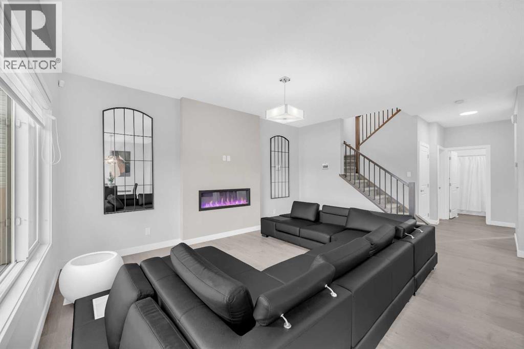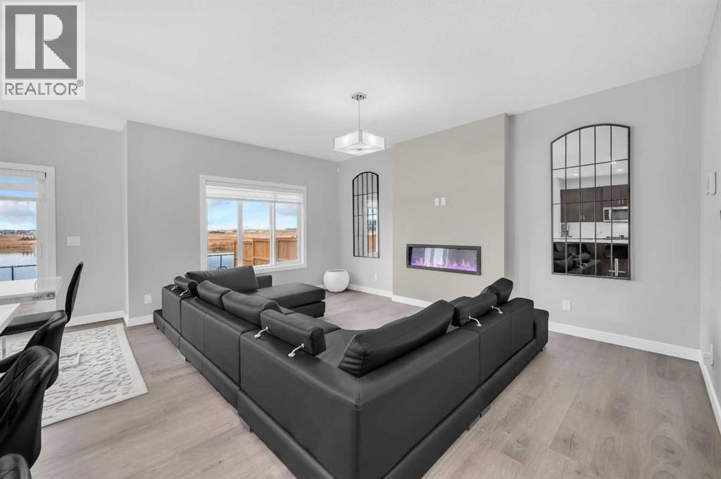 MAIN FLOOR BEDROOM & FULL BATHROOM, SPICE KITCHEN, BACKING ONTO POND. Welcome to this beautifully upgraded home set on a 34-ft wide lot backing onto a peaceful pond offering true privacy with no neighbours behind. This bright and spacious property features a main floor bedroom with a full bathroom, perfect for guests or multi-generational living. The open-concept kitchen shines with modern finishes, quartz counters, a large island, and a fully equipped SPICE KITCHEN. Large windows in the living room fill the home with natural light all day long. Fireplace also adds very elegant feature to the living area. Upstairs, you’ll find three comfortable bedrooms, including a stylish primary bedroom with 5 piece ensuite and walk-in closet, another bedroom can accommodate a king size bed with its own walk-in closet. Along with a generous bonus room and multiple windows the upper floor looks bright. The side entrance to the basement with 9ft ceiling provides perfect opportunity to develop a two-bedroom suite and adding future value. The backyard is fully landscaped and fenced, complete with a deck and patio pad overlooking the pond—ready for summer gatherings and peaceful evenings outdoors. This home offers brightness, privacy, and future income potential—perfect for families. A must-see property in a fantastic Cornerstone community. (id:6769)