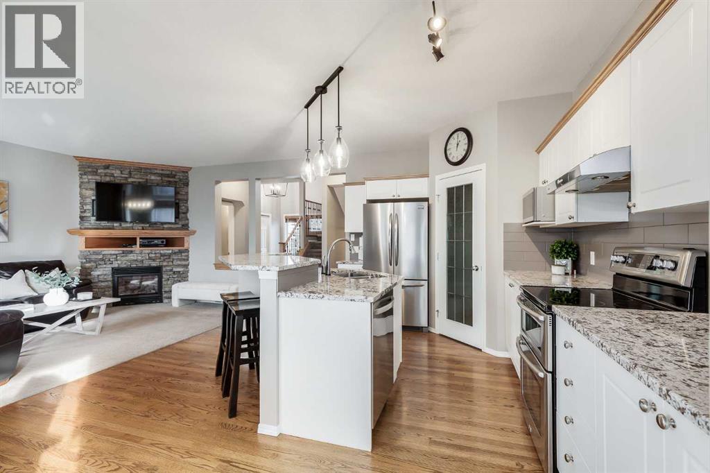 Welcome to this fully finished detached home with over 2,700 sqft of total living space, nestled in the vibrant, family-friendly community of Panorama Estates. The moment you arrive, manicured landscaping and stunning curb appeal greet you. Step into a soaring vaulted foyer filled with natural light, leading to a bright, open main floor with hardwood floors, upgraded lighting, and 9 ft ceilings that rise to 11 ft in the dining area surrounded by windows. The kitchen serves as the perfect gathering space, offering granite countertops, a large island with seating, modern fixtures, and a generous walk-through pantry. The living room is anchored by a welcoming gas fireplace with a beautiful stone accent wall. Upstairs, you’ll find three spacious bedrooms, including the primary with a newly renovated ensuite complete with a luxurious soaker tub and a spacious walk-in closet. A large bonus room with vaulted ceilings and a stone-faced gas fireplace provides the perfect space for movie nights or relaxing with loved ones, and the renovated full bathroom on this level adds a fresh, modern feel. The fully finished basement expands your living space with a large recreation room featuring the home’s third gas fireplace with a stone accent wall and built-in shelving. A custom dry bar with a mini fridge, dishwasher, and built-in cabinetry makes entertaining easy, while a flexible area serves perfectly as a home office or gym. This level also includes a convenient half bathroom. Step outside to the west-facing backyard, complete with a spacious deck with glass railing, a paved patio, generous green space with mature trees, beautiful landscaping, and a cozy fire pit ideal for great summer nights. Additional features include A/C throughout, a 50-gallon water tank, new roof and siding (2025) and a double-attached heated garage for year-round comfort. Panorama Estates is a well-planned community known for its natural beauty, parks, lakes, pathways, nearby schools, plentiful shopping, c afés, and essential services. Located directly across from Buffalo Rubbing Stone Park, this home also provides quick access to recreation centres, fitness facilities, and the impressive 36-hole Country Hills Golf Course, offering a lifestyle defined by both convenience and connection. This isn’t just a house, it’s where your family’s next chapter begins. Book your showing today! (id:6769)