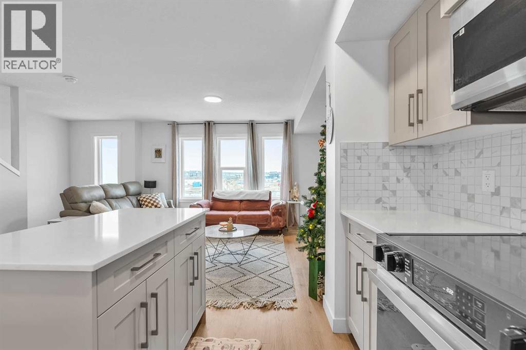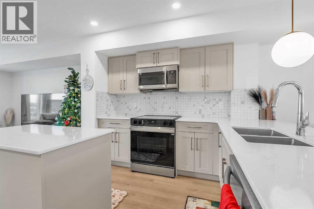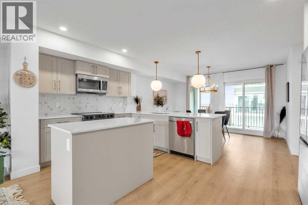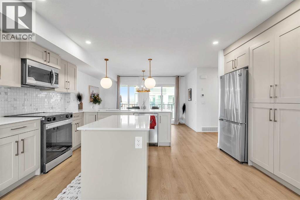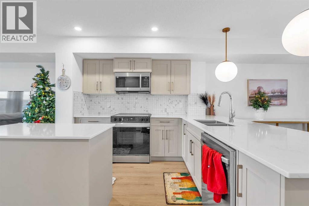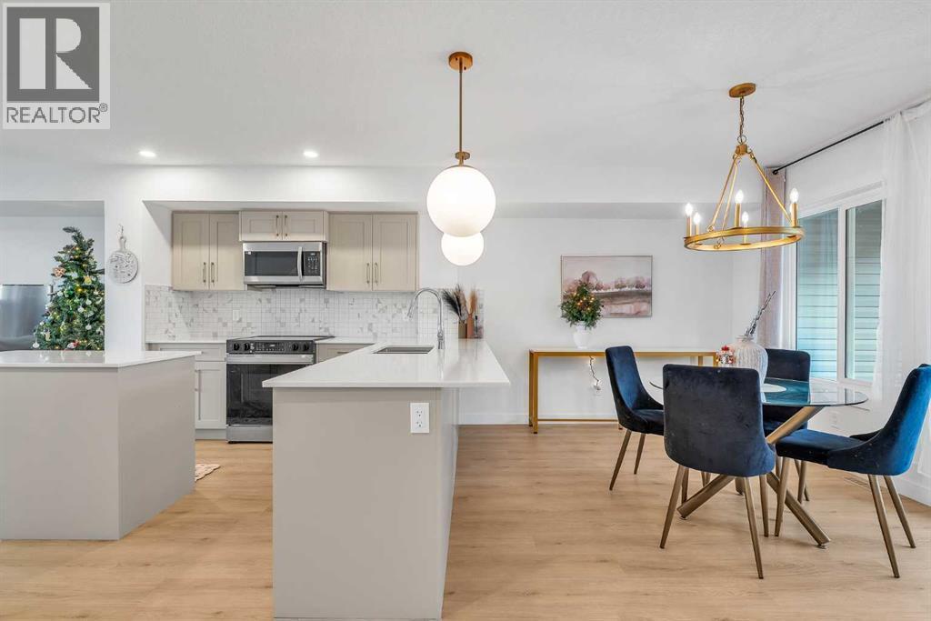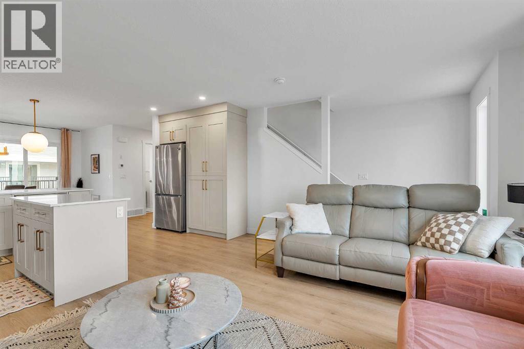 Beautiful Corner-Unit Townhouse | Extra Privacy | Pond Views | Buyer Incentive! This immaculately kept corner-unit stands out as the most private and desirable home in the complex, offering unmatched separation with no neighbor to one side and an open, airy exposure that fills the home with natural light. Positioned closest to (but not directly on) the main road, the location provides enhanced security and visibility that safeguards your home and vehicle. From the moment you step inside, you’re greeted by soft, neutral tones and an open-concept layout that feels warm, modern, and effortlessly inviting. Stunning quartz countertops are throughout the home, complemented by elegant gold hardware on freshly painted cabinetry. Stylish kitchen light fixtures and a statement chandelier in the dining area create an elevated, cohesive design. As you walk through the main living space, large windows frame serene pond views and beautiful east-facing sunrises, adding a sense of calm to your daily routine. The attached garage offers convenience year-round, while the lower-level office space provides the perfect spot for remote work or a quiet study area. Upstairs, you’ll find three spacious bedrooms, including a gorgeous primary suite with a double-sink ensuite designed for both comfort and luxury. Every detail of this home has been thoughtfully cared for, and the exterior includes durable Hardie siding with stone accents for extra protection against hail and weather. *Move in with confidence: this home was professionally inspected at possession, is backed by the Alberta New Home Warranty Program (1–10-year coverage) and will be professionally cleaned upon firm sale. As an added incentive, buyers can choose either a full reimbursement of their home inspection or two months of condo fees paid by the seller. With a brand-new retail plaza going up across the street—including a Tim Hortons—everyday convenience is right at your doorstep. This is truly the standout unit in the complex— bright, private, stylish, and exceptionally maintained. Quick possession is available due to seller relocation. Homes like this don’t come up often, and this one won’t last. (id:6769)