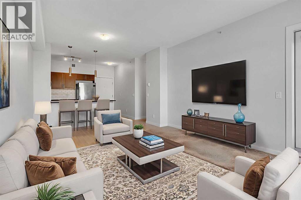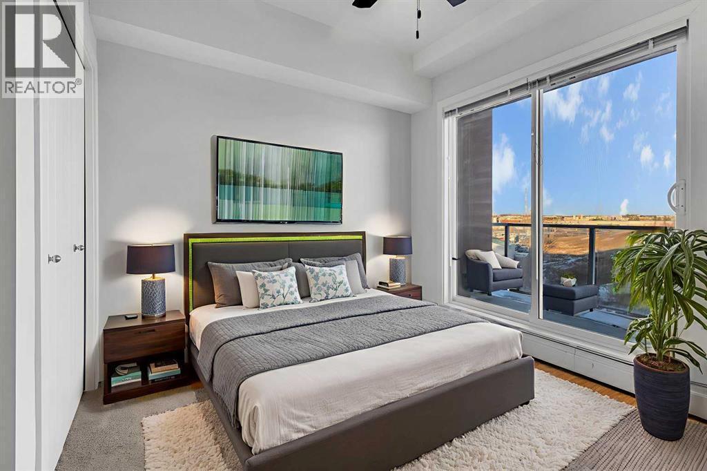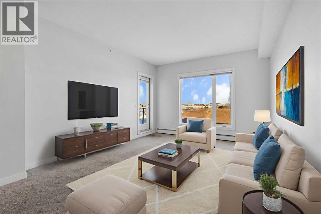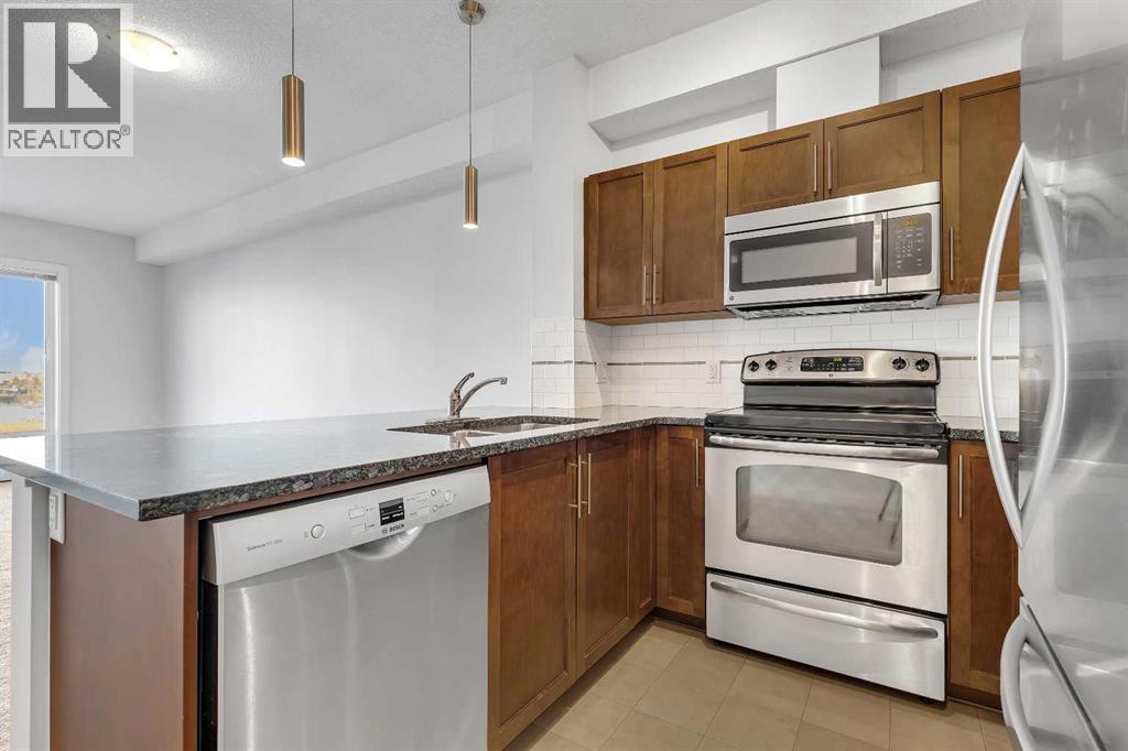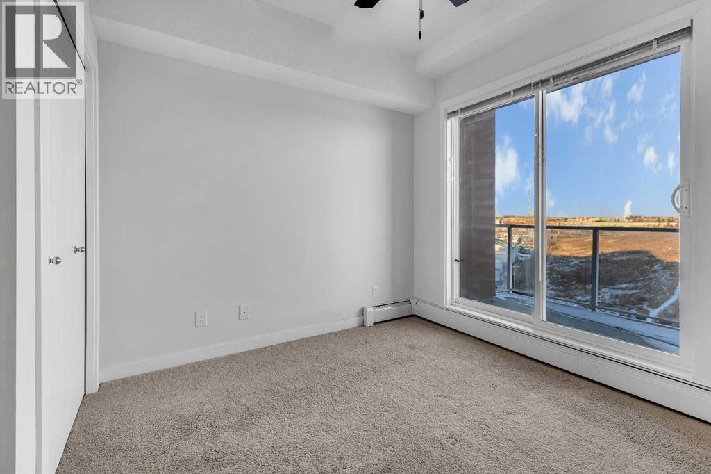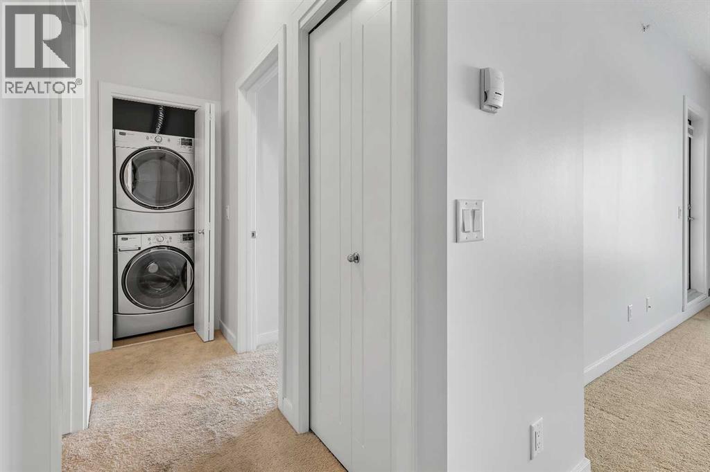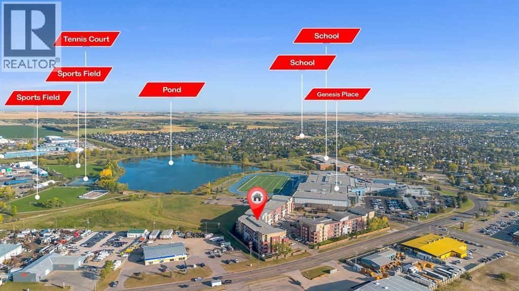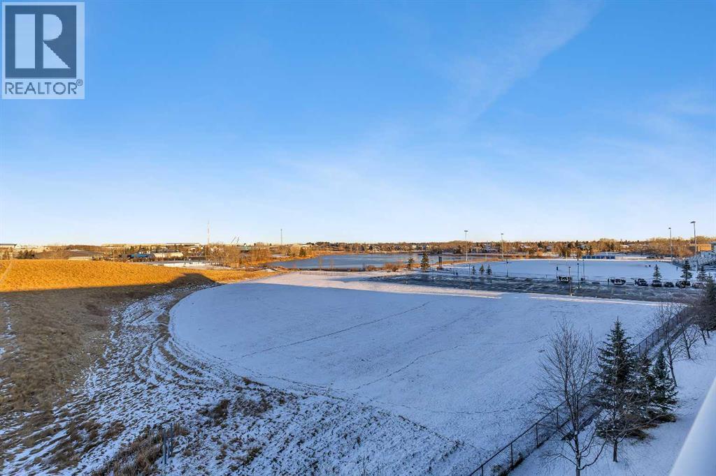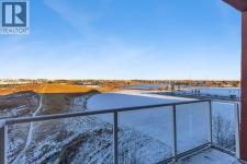 OPEN HOUSE: Sat Nov 22, 2:00pm-4:00pm. Top Floor Unit | Morning Sun | Private Balcony | 9’ Ceilings | Stainless Steel Appliances | Den/ Hobby/Storage Space | In-Suite Laundry | Titled Underground Parking **click on the virtual tour for a preliminary showing of the condo**Live life at the Edge! Freshly painted, top floor unit with morning sun reflecting off East Lake and bright spacious feeling 9’ ceilings. Easy to maintain flooring in Entry, Kitchen and Bathroom. Convenient in-suite Laundry, full-sized and stacked in a hall closet to maximize floor space for all the other things you would rather be doing than Laundry; like room to have your friends over in the open concept Kitchen, Dining and Living Room. The thoughtful floorplan provides for storage, Den space and privacy for your bedroom retreat that has its own access to the balcony. The Titled Underground Parking includes an open grid storage locker to keep the car stuff with the car stuff. Walking and biking paths are nearby, and all the amenities of Airdrie East Lake Recreation and Genesis Place are across the street. Who knew life on the edge could be comfortable and convenient. Call your favourite Agent to book your private showing today! (id:6769)