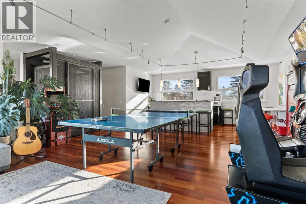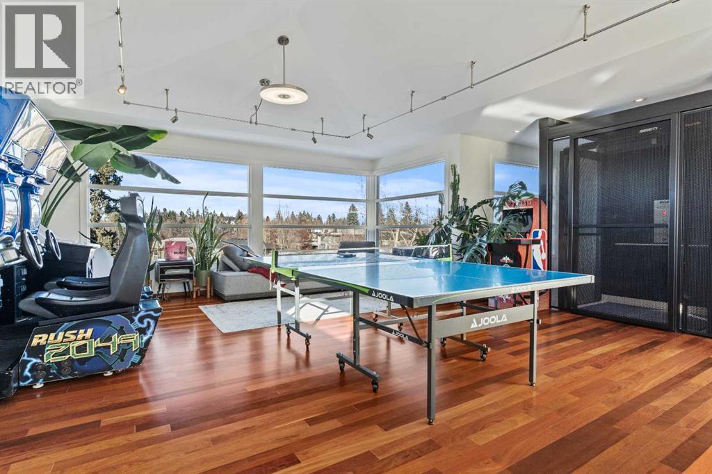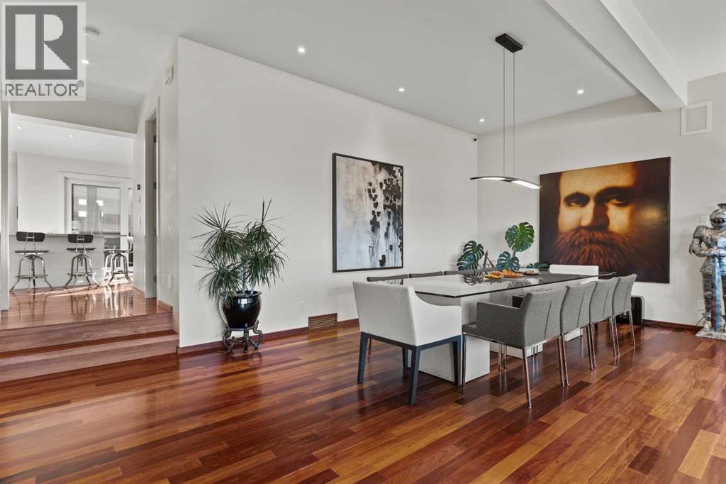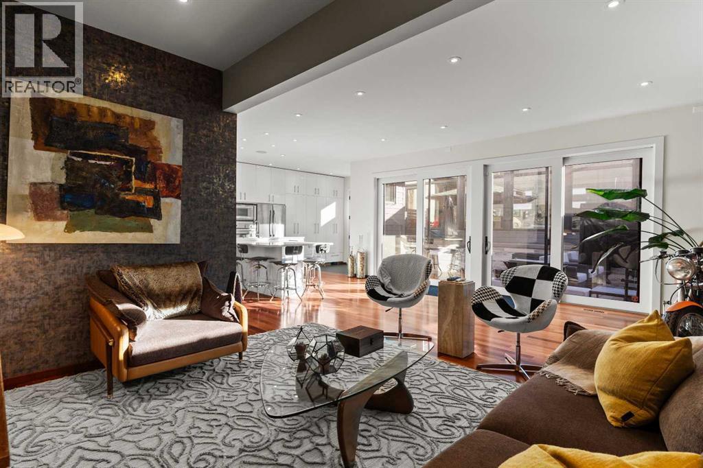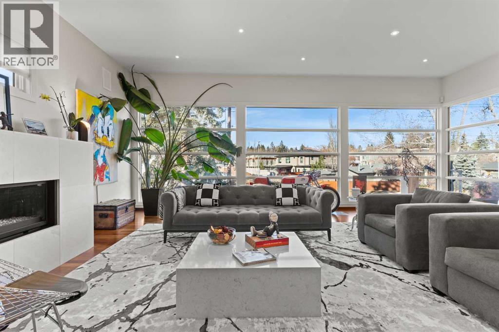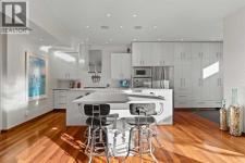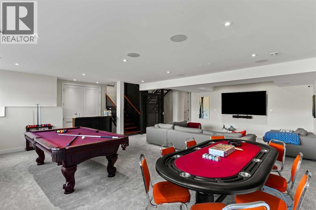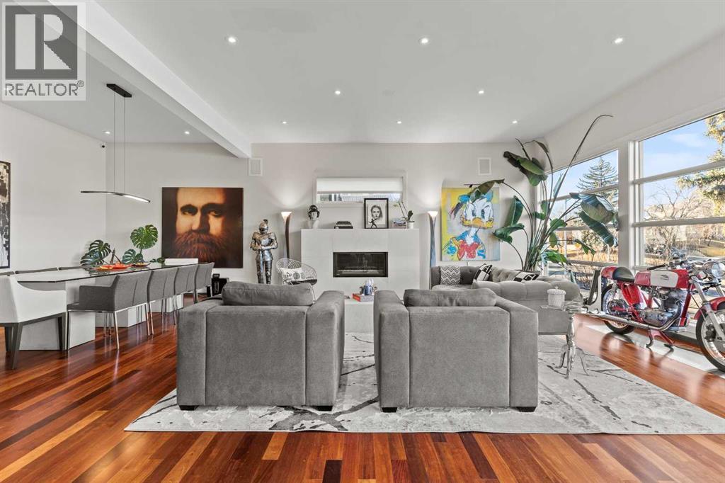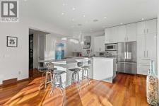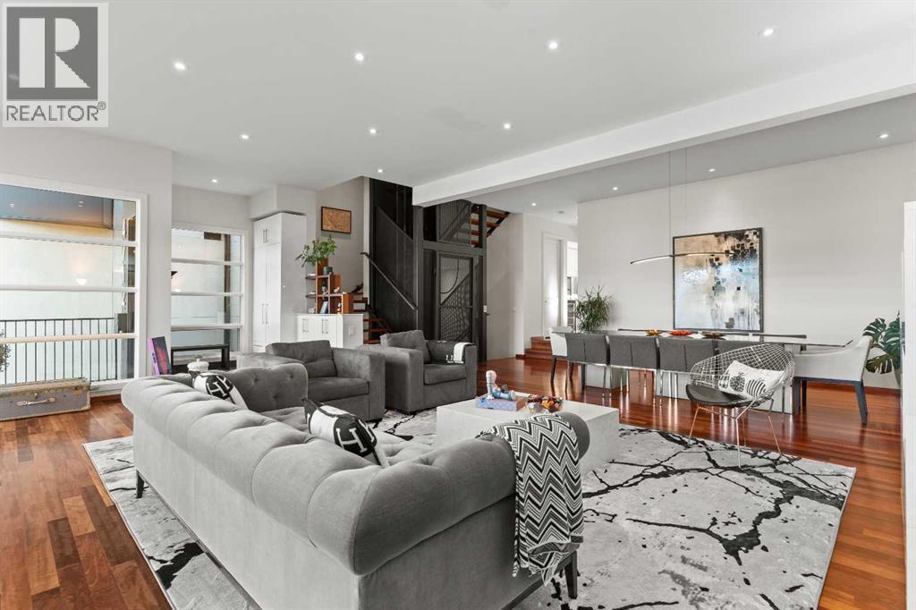 Welcome to this custom-designed 3-storey luxury home offering over 6,000 sq ft of beautifully crafted living space in the prestigious community of Elboya. Designed for large families and avid entertainers, this residence blends modern elegance, thoughtful function, and impressive downtown views, highlighted by a show stopping integrated steel elevator inspired by a New York loft, providing seamless access to every level. The bright, open-concept main floor features Brazilian cherry hardwood, soaring ceilings, and floor-to-ceiling windows allowing an abundance of light into the space and framing mature greenery. A striking marble-faced gas fireplace anchors the living room, while the spacious dining room easily hosts large gatherings. The chef-inspired kitchen offers quartz countertops, peninsula seating, custom cabinetry, and premium appliances including Fisher & Paykel oven, Thermador 5-burner cooktop, Jennair refrigerator, and Bosch dishwasher. A wood-slat feature wall elegantly defines the open concept den, and large sliding doors open onto the private backyard, creating a natural indoor/outdoor flow ideal for year round entertaining. A powder room and laundry room complete the main level. The second floor hosts an exceptional primary retreat with oversized windows, remote-controlled Hunter Douglas blinds, private balcony with downtown views, walk-in closet, and a spa-like 5-piece ensuite with steam shower, soaker tub, and smart toilet. The second bedroom includes a 4-piece ensuite and walk-in closet, while two additional bedrooms share a full bath making it an ideal layout for families. The third level is an entertainer’s dream, offering incredible city views and a rare indoor gathering space designed for hosting at scale. A full secondary kitchen features a bar-height quartz island with wine fridge, making it perfect for get togethers or evening soirees. The fully developed lower level includes a large family/recreation room with generous windows, a spacious fi fth bedroom with walk-in closet, dry bar with wine fridge, a 4-piece bath, and a dedicated wine cellar. Enjoy the fully fenced backyard designed for evening gatherings, complete with natural gas hookup, outdoor speakers, and a modern open layout showcasing the impressive showroom-style garage. Car enthusiasts will love the oversized 4-car garage with potential for six vehicles with stackers. Smart-home features include automated lighting, thermostats, security system with 10 cameras, and Sonos sound throughout. Additional features include air conditioning, irrigation system, and french drains. Situated in sought-after Elboya, this exceptional residence is mere steps from top-rated schools, Calgary Golf & Country Club, Britannia Shopping Centre, Stanley Park, Sandy Beach, numerous parks and pathways and quick access to downtown. With its rare combination of scale, craftsmanship, design, and location, this home presents a unique opportunity to own a truly extraordinary inner-city estate. (id:6769)
