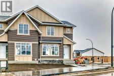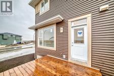 Welcome to this modern 3-bedroom corner lot duplex in the sought-after community of Glacier Ridge. The main floor offers an inviting living area with an electric fireplace, knock-down ceilings, vinyl flooring, and a stylish kitchen complete with a central island, quartz countertops, a built-in microwave, and a fridge with a water line. A half bath on this level provides added convenience for guests. Upstairs features three generous bedrooms, including a primary suite with its own 4-piece ensuite, plus a second 4-piece bathroom and a convenient laundry room. The basement includes a separate side entrance, a 9’ foundation, and rough-ins for a future suite, offering excellent potential for added living space or income generation. Outside, you’ll find a deck with a built-in gas line for your BBQ, plus a gravel parking pad providing easy off-street parking. Located in Glacier Ridge, one of Calgary’s newest and most desirable communities, this home blends modern comfort with everyday convenience. (id:6769)