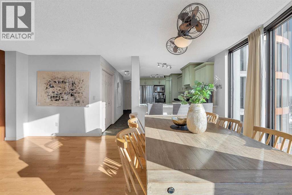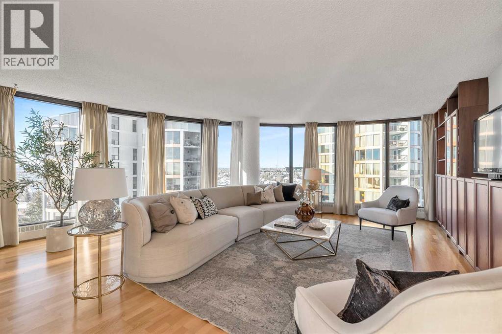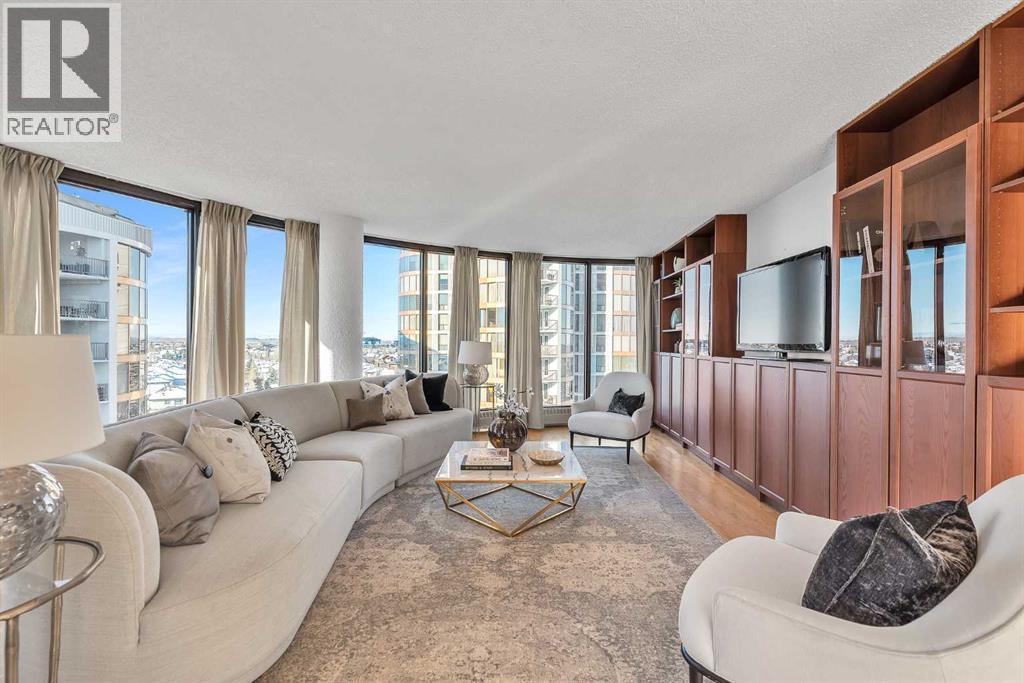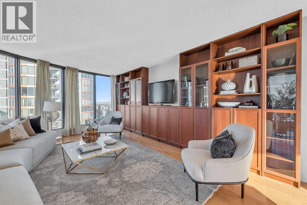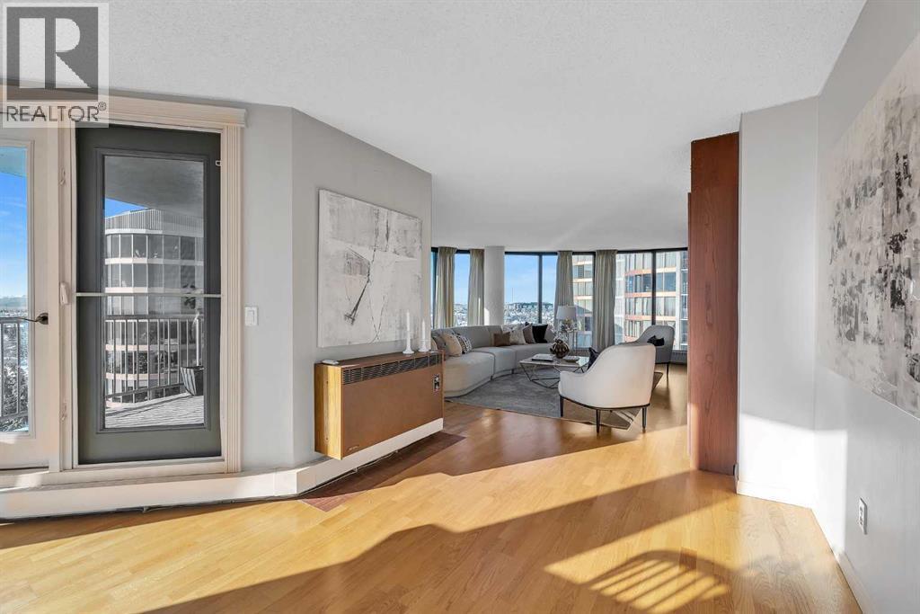 SPACIOUS 9TH FLOOR CONDO WITH 180° DEGREE VIEWS OF DOWNTOWN, CITY, AND MOUNTAINS– 1352 SQFT | 2 BEDROOMS | 2 BATHROOMS | 2 PARKING STALLS |Welcome to executive living at the iconic Odyssey Towers. This unique concrete building is designed with large floorplans that provide privacy, style and function. With wall to wall windows and open plan living space, this home is filled with natural light and provides views from every room. On the interior you will find a spacious french country inspired kitchen equipped with stainless steel appliances, granite countertops, a large corner pantry, and breakfast bar. Enjoy sitting at your dining table and watching the sun rise up behind the downtown skyline- the dining room leads out to the covered balcony where you can relax on a summmer evening and watch the sun set behind the Rocky Mountains. The adjacent nook area provides a great area for a buffet or a desk. Leading to the show- stopping living room with panoramic city and mountain views. . You’ll find both bedrooms to the front of the property and away from the living space, for comfort and privacy. The primary bedroom features a walk-in closet and and large ensuite bathroom with double vanity, and oversized shower. The second bedroom and full bathroom are perfect for guests. Additional conveniences include in-suite laundry with cabinetry and counter space, a large in-unit storage room, a linen closet, and an entry closet.Parking is convenient with two large stalls – one indoor and one outdoor (perfect for a small RV, trailer, or even a boat- permitted with board approval), and you have the benefit of an extra out of unit storage space.This adult-only (18+) no-pet building is quiet, secure, well-managed, and offers valued amenities including saunas, steam rooms, guest suites, and visitor parking. The location is unbeatable – walk to West District’s restaurants, shops, and services, explore the many walking paths in this established west-side community, or take ad vantage of the quick connections to downtown, Stoney Trail, and the mountains.Book your showing today to see why this is one of the most desirable west-side addresses for condo living. (id:6769)