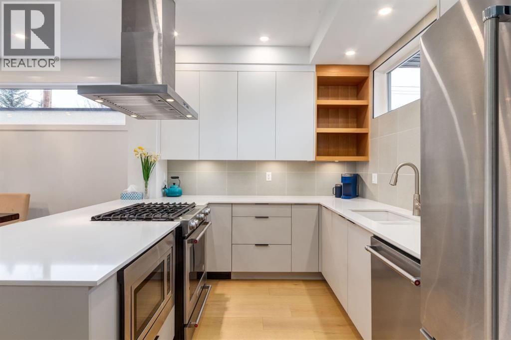 This 3-storey Townhouse by RNDSQR offers over total 2,290 sqft of well-designed, features open, bright, wide-plank hardwood, large windows, and a seamless flow from the living and dining area into a perfect kitchen with quartz counters, a gas range and high-end appliances on main level. On the second level, you'll see a comfortable primary bedroom with a 4-piece ensuite and walk-in closet, a second bedroom, a full 4-piect bathroom, and laundry area. Upstair on the 3rd level there's a bonus room which gives you the options for a home office, second living room, or converted into another bedroom. From there step out onto your private rooftop patio with views of Glenmore Athletic Park. The fully finished basement adds a third bedroom, full bathroom, and a rec space that works well as a guest area, gym, or cozy media room. You can access privately to the detached garage through your backdoor. Just steps from River Park, Sandy Beach, and Glenmore Athletic Park. (id:6769)