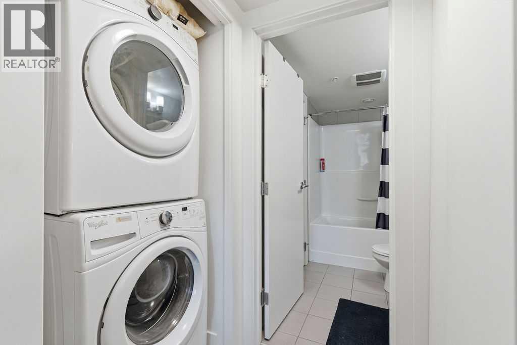Enjoy those sunny downtown views from your big 10x7 west-facing balcony on the third floor! If you’ve been wanting to walk to work and stay close to everything, this is the spot. This well-built 1-bedroom suite is right by downtown, transit, and tons of shopping.The kitchen is sleek and modern with high-end stainless appliances, a gas stove, and a big quartz peninsula that’s perfect for cooking or hosting. There’s lots of room in the dining nook for a proper table too. The living room is bright and functional with corner windows and a cozy wall-mounted electric fireplace. You also get a spacious bedroom with great closet space and a full bathroom.Flooring has a mix of laminate hardwood, carpet, and tile for a nice mix of style and comfort. Plus, you get titled heated underground parking, secure storage, a fitness room, bike storage, a stylish lobby, and visitor parking—all part of “Bridgeland Hills.” And of course, you’re just minutes from downtown, trendy shops, restaurants, and everything Bridgeland has to offer. (id:6769)