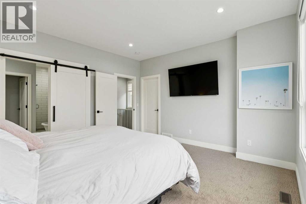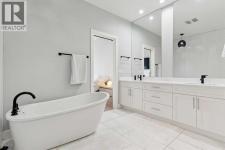 This sophisticated, contemporary semi-detached infill in Capitol Hill offers exceptional value with over 2,700 square feet of functional living space featuring 4 bedrooms, 3 and half bathrooms, premium finishes, and a south facing yard. The main floor boasts brand new engineered wide plank oak hardwood flooring, ten-foot ceilings, and generously proportioned living areas. These include a formal dining room, a living room with a sliding glass door to the rear yard, and a modern kitchen equipped with stainless steel appliances and shaker-style cabinetry. A tiled mudroom provides direct access to the double detached garage and includes built-in millwork for organized storage. A privately situated powder room completes this wonderful main floor. The upper level comprises three spacious bedrooms, two full bathrooms, and convenient second-floor laundry. The master suite features a sizable walk-in closet and a private five-piece ensuite with a freestanding soaker tub, a separate water closet, and an oversized glass shower. The fully finished basement includes a large recreation room with a wet bar, a fourth bedroom, and a fourth bathroom. Finally, the home is complete with air conditioning, charming landscaping, a very useful at-grade concrete patio, and irrigation. Book your private tour today. (id:6769)