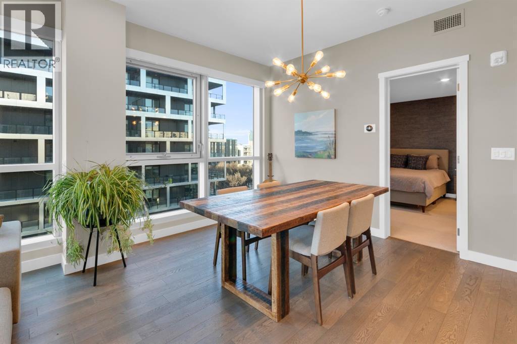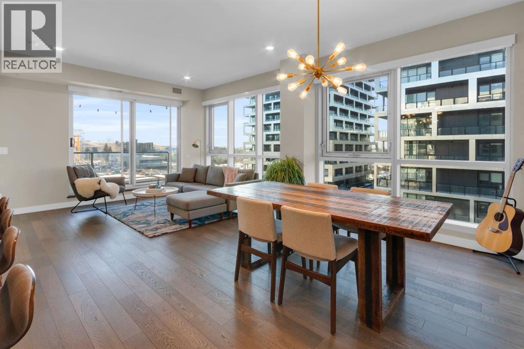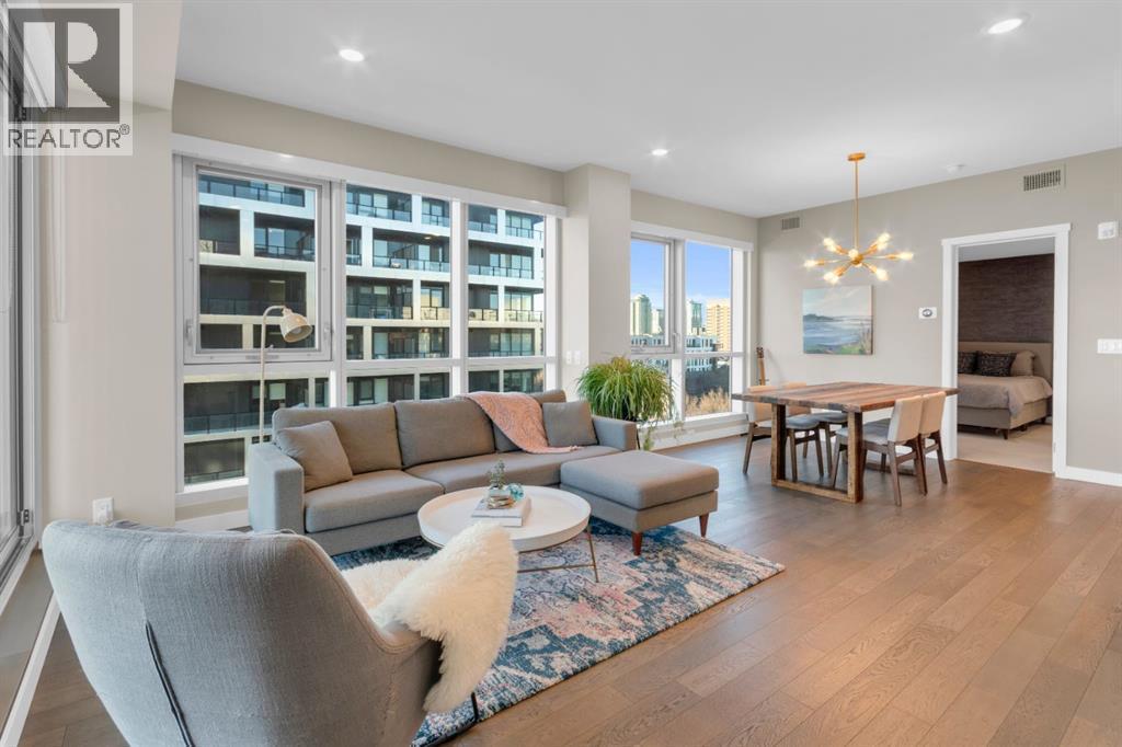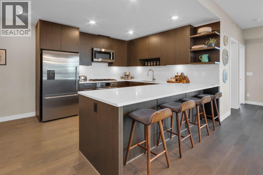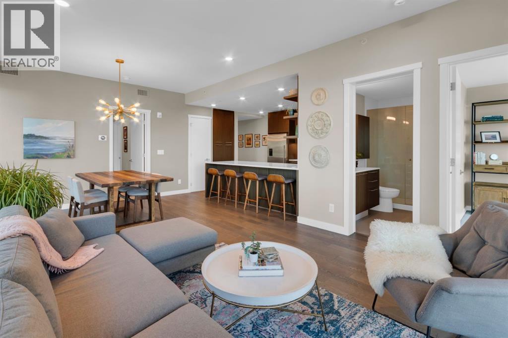 Located in Bridgeland’s award-winning Radius building by Bucci developments, this 2-bedroom, 2-bathroom unit offers refined urban living, with an emphasis on wellness and walkability. The home features a well-considered layout anchored by a modern, streamlined kitchen equipped with integrated Bosch appliances, quartz counters, a gas cooktop, under-cabinet lighting, and full-height cabinetry. Adjacent to the kitchen, the dining area comfortably accommodates a full-sized table, making the space suitable for both daily living and entertaining. The open-concept living room enjoys natural light from expansive windows and direct access to a large, south-facing balcony—ideal for enjoying views, and maximizing indoor-outdoor living. The primary suite includes a spacious walk-through closet and a 5-piece ensuite with dual sinks, soaker tub, and separate glass-enclosed shower, while the second bedroom is served by a nearby 3-piece bath. Additional features include in-suite laundry, smart thermostats, a custom storage solution at the front entrance, underground titled parking stall, and a secure storage locker (conveniently located on the same level as this unit). Radius is a LEED Platinum-certified concrete building offering concierge service, a rooftop terrace with fireplace and seating area offering downtown views, two fitness centres, a yoga studio, a spin room, pet wash, car wash, bike/ski tuning station, and secure bike storage. Located across from Murdoch Park and the Bridgeland Riverside Community Centre, and steps to local cafés, top-tier restaurants, organic markets, schools, and the C-Train, with downtown accessible in under 10 minutes. (id:6769)