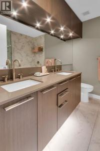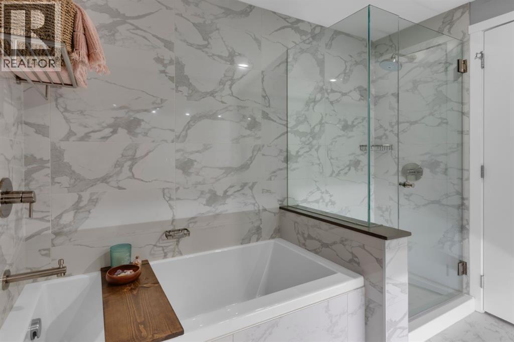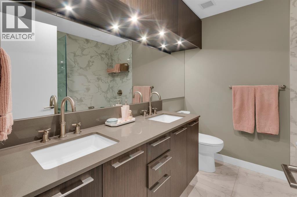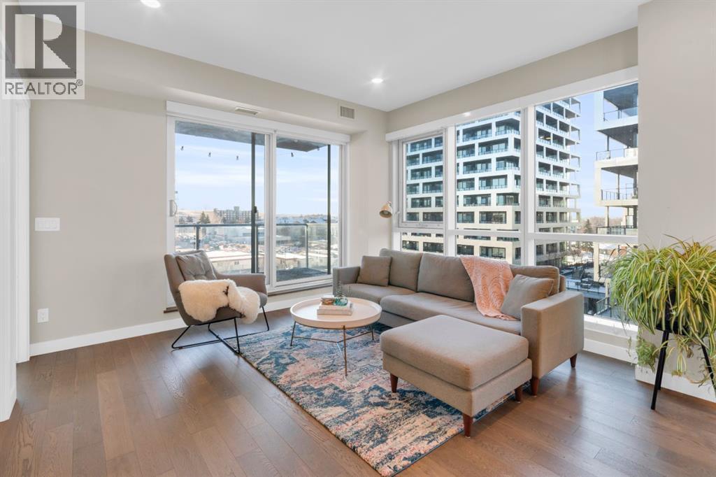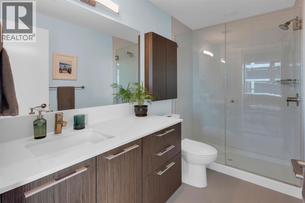 Located in Bridgeland’s award-winning Radius building by Bucci developments, this 2-bedroom, 2-bathroom unit offers refined urban living, with an emphasis on wellness and walkability. The home features a well-considered layout anchored by a modern, streamlined kitchen equipped with integrated Bosch appliances, quartz counters, a gas cooktop, under-cabinet lighting, and full-height cabinetry. Adjacent to the kitchen, the dining area comfortably accommodates a full-sized table, making the space suitable for both daily living and entertaining. The open-concept living room enjoys natural light from expansive windows and direct access to a large, south-facing balcony—ideal for enjoying views, and maximizing indoor-outdoor living. The primary suite includes a spacious walk-through closet and a 5-piece ensuite with dual sinks, soaker tub, and separate glass-enclosed shower, while the second bedroom is served by a nearby 3-piece bath. Additional features include in-suite laundry, smart thermostats, a custom storage solution at the front entrance, underground titled parking stall, and a secure storage locker (conveniently located on the same level as this unit). Radius is a LEED Platinum-certified concrete building offering concierge service, a rooftop terrace with fireplace and seating area offering downtown views, two fitness centres, a yoga studio, a spin room, pet wash, car wash, bike/ski tuning station, and secure bike storage. Located across from Murdoch Park and the Bridgeland Riverside Community Centre, and steps to local cafés, top-tier restaurants, organic markets, schools, and the C-Train, with downtown accessible in under 10 minutes. (id:6769)