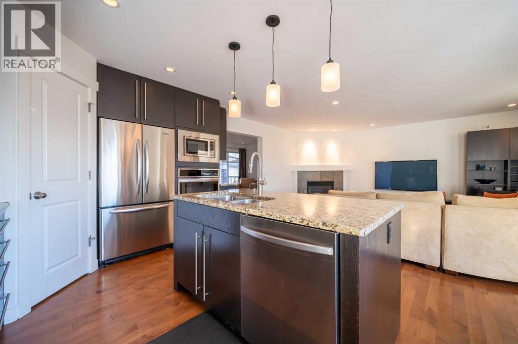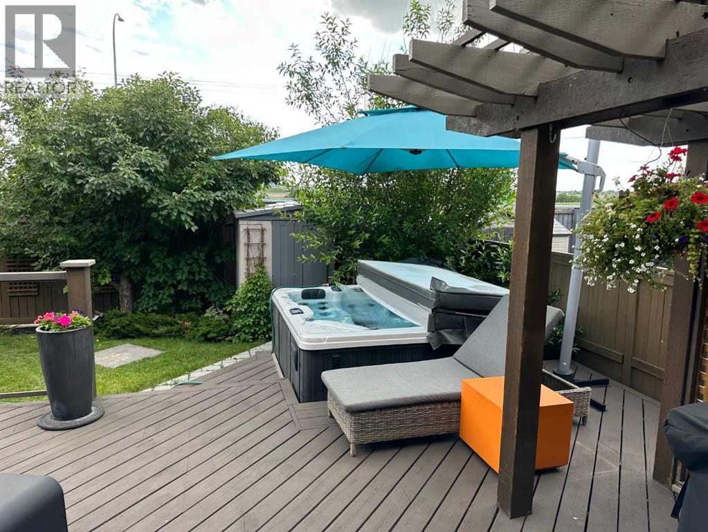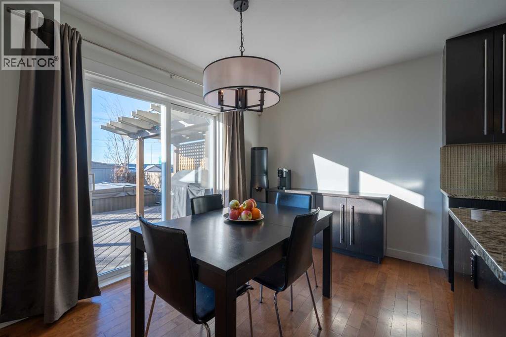 Welcome to this stunning family home in the highly desirable community of Lake Chaparral. Offering over 2,000 sq. ft. of beautifully updated living space, this property showcases a bright, modern open floor plan centered around an upgraded kitchen with a pantry, granite countertops, a large island, and clear sightlines into the cozy family room featuring a natural gas fireplace. A versatile main-floor flex room provides the ideal space for a home office or den. Upstairs, you'll find three generous bedrooms, an oversized bonus room that can easily function as a fourth bedroom, a convenient upper-level laundry room, and a fully renovated 4-piece bathroom complete with modern fixtures, impressive tile work, heated floors, and a floating vanity. The spacious primary suite includes a walk-in closet and a luxurious 5-piece ensuite. Step outside to an exceptional backyard designed for both relaxation and entertaining. Enjoy multiple outdoor living spaces, including a large deck, BBQ area with natural gas hookups, a hot tub, and unbeatable southwest exposure offering beautiful mountain views. This home is loaded with upgrades: flat ceilings, fresh paint throughout, pot lights, air conditioning, a sprinkler system, aggregate driveway, powered storage shed, newer roof (2 years old), hardwood flooring, and several updated windows and patio doors. Located within walking distance to playgrounds, sports fields, and a school, this is the perfect family home in an unbeatable location. (id:6769)